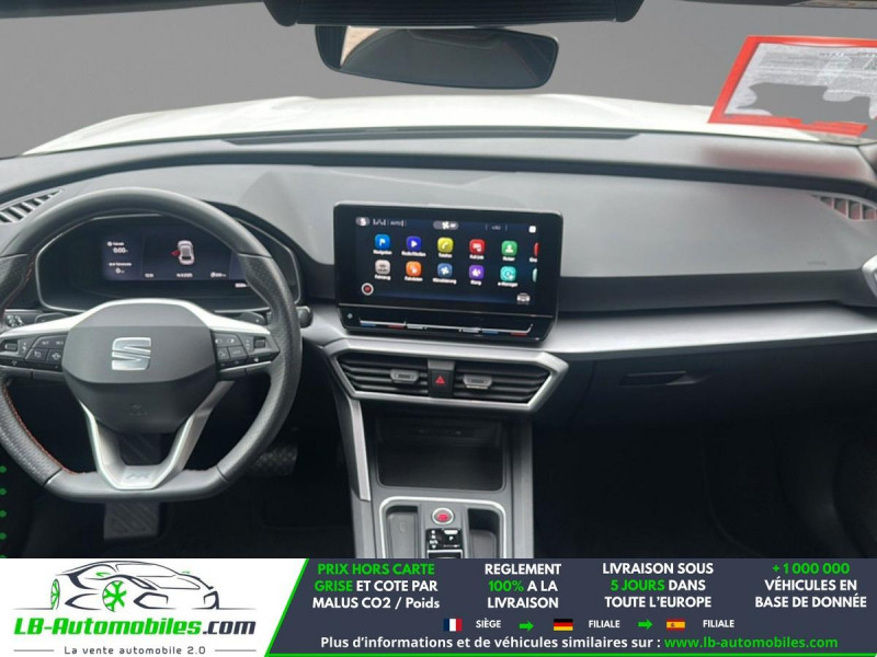 Référence : 1184386 Vos Avantages chez LB-AUTOMOBILES.com / Prix affiché TTC Livré hors carte grise / Livraison sous 10 jours dans toute la France hors 31 / Pas d?avance de frais paiement du véhicule 100% à la livraison par virement. Seat Leon Neuf remisée, Seat Leon Occasion Toulouse Beaupuy 31850, Seat Leon Véhicule sorti de réseau collaborateur, Seat Leon import, Seat Leon importateur, Seat Leon Livraison possible dans toute la France sous 5 jours, Seat Leon, Seat Leon Location Option Achat, Seat Leon LLD, Seat Leon Longue Durée, Seat Leon TVA récupérable. Possibilité d'extension de garantie 12, 24,36 mois, Pour tout autres voitures import neufs ou occasions collaborateur fortement remisée, Mandataire Audi, Mandataire BMW, Mandataire Volkswagen, Mandataire Mercedes, Mandataire Peugeot Espagne, Mandataire Renault Espagne, Porsche import, Mandataire Citroën Espagne, Mandataire Seat Espagne, n'hésitez pas à nous contacter. « Sous réserve de vente préalable et erreur de saisie » Principaux équipements : - ABS - Accoudoir - Android Auto - Antidémarrage - Apple CarPlay - Assistance au freinage d'urgence - Assistant feux de route - Avertisseur de franchissement de ligne - Bluetooth - Boîte de vitesses robotisée - Capteur de lumière - Capteur de pluie - Carnet d'entretien - Cockpit numérique - Commande vocale - Contrôle de la pression des pneus - Diesel avec filtre à particules - Direction assistée - Éclairage adaptatif de virage - Éclairage d'ambiance - Éclairage route non éblouissant - Écran tactile - ESP - Fermeture centralisée - Feux de jour LED - Garantie - GPS - Grille de protection pour coffre - Isofix - Jantes alliage - Kit de réparation d'urgence des pneus - Kit mains libres - Ordinateur de bord - Package hiver - Pack sport - Phare antibrouillard - Phares LED - Pneus été - Point Isofix siège passager - Port USB - Radio DAB - Régulateur de vitesse adaptatif - Rétroviseur extérieur électrique - Rétroviseur intérieur anti-éblouissement automatique - Rétroviseurs extérieurs rabattables électriquement - Révision complète - Sièges chauffants - Sièges sport - Support lombaire - Suspension sport - Système antipatinage - Système d'appel d'urgence - Système d'avertissement de la distance - Système de détection de la fatigue - Système de limitation de la vitesse - Système de reconnaissance des panneaux de signalisation - Système Stop & Start - Traction avant - Tuner/radio - Véhicule non-fumeur - Verrouillage centralisé sans clé - Vitres électriques - Vitres teintées - Volant chauffant - Volant en cuir - Volant multifonction - WLAN / point d'accès Wi-Fi