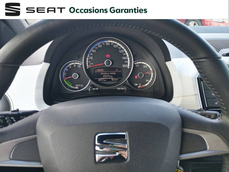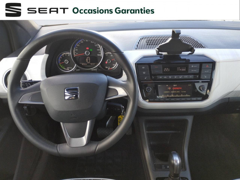 Feux de jour à LED avec fonction "coming home" / Fonctionnalités de l'application Drive Mii App : contrôle de la radio, accès aux musiques du smartphone, système de navigation, reconnaissance des panneaux de signalisation, données de conduite du véhicule et le niveau d'autonomie, fonction Ecotrainer, accès aux contacts du smartphone et à l'appel d'urgence / Frein à main en cuir / Levier de vitesse en cuir / Pommeau de levier de vitesse cuir / 6 HP / Accès à l'application mobile DriveMii App / Alerte de non-bouclage des ceintures à l'AR / Alerte de non-bouclage des ceintures à l'AV / ASR / Badges latéraux Mii electric / Batterie garantie 8 ans ou 160 000 km à 70 % de sa capacité minimum / Câble de recharge Mode 3 (type 2 - type 2) - pour une wallbox / Double Airbag frontal à l'AV / Double Airbag latéral tête/thorax à l'AV / Désactivation airbag passager / Ecran couleur de 5" / ESC / Garantie 2 ans / Inscription Mii electric sur le hayon / Pare-brise chauffant / Pneumatiques 185/50 R16 81H / Prise compatible recharge rapide / Rétroviseurs ex.chauffants réglables électriquement avec rabattement manuel / Rétroviseurs extérieurs couleur carrosserie / SEAT Connect / Sièges AR rabattables 2/3-1/3, avec isofix / Support de smartphone / Système de récuprération d'énergie en décélération / Tapis de sol