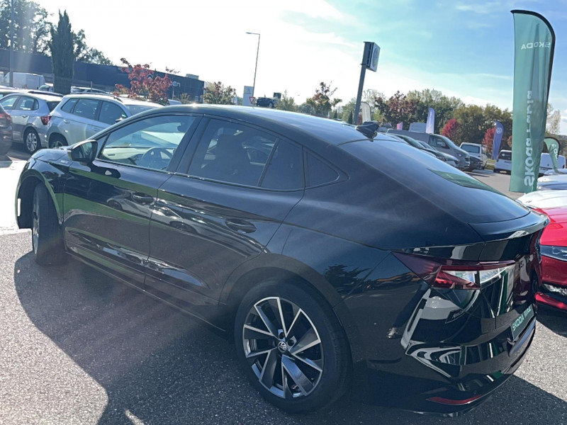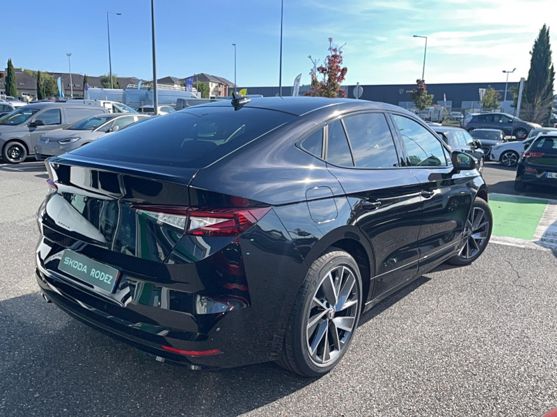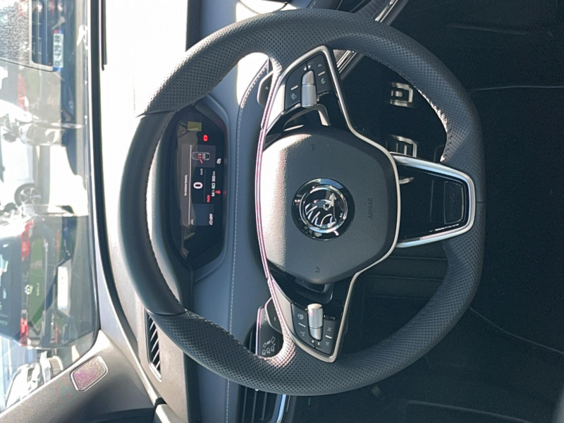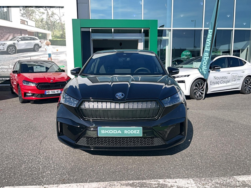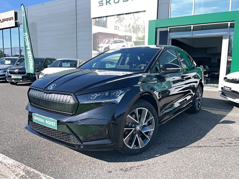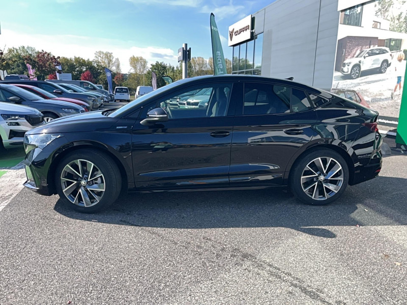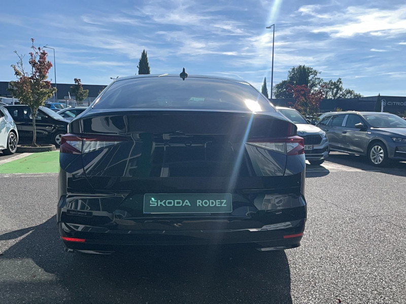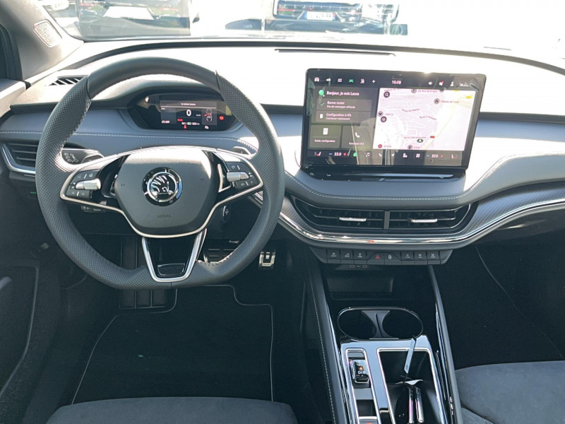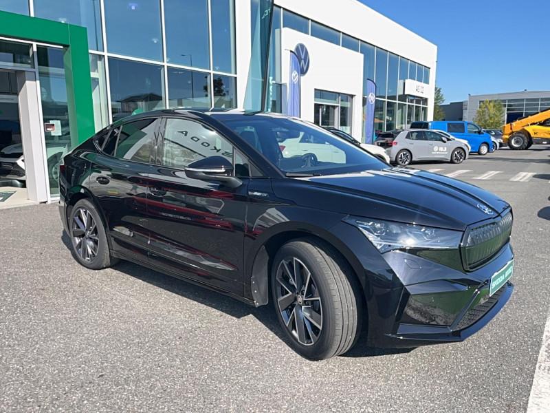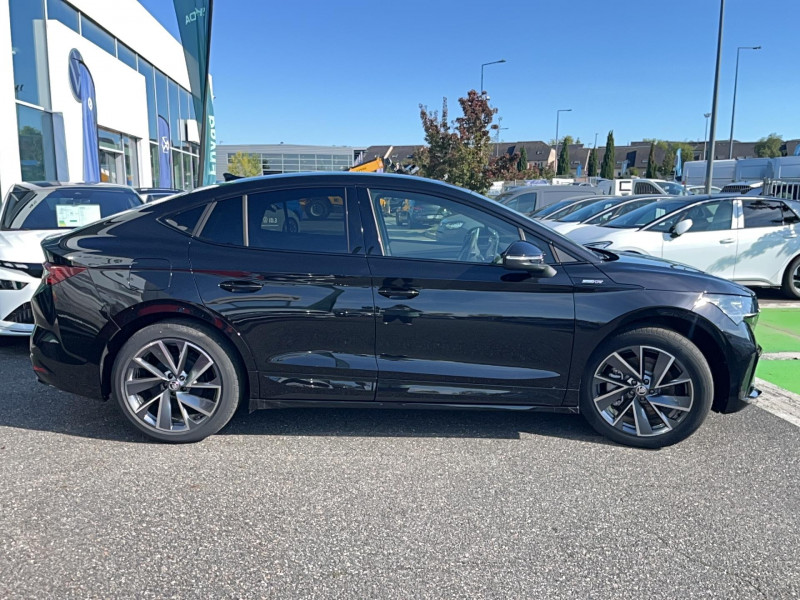 Climatisation à régulation automatique Climatronic tri-zone / Emergency Assist: fonction semi-automatique pour urgence médicale / Feux AR à LED avec clignotants à défilement (y compris sur le hayon de coffre) / Front Assist : freinage automatique d'urgence incluant la protection des piétons et des cyclistes / Intérieur SPORTLINE Sellerie Cuir/Suède avec insert effet Carbone, tableau de bord matériaux synthétiques avec surpiqûres et éclairage d?ambiance multicolore: tableau de bord,intérieurs de portes, poignées de porte et pieds AV/AR (blanc uniquement) / Jantes alliage 20" VEGA anthracite pneus: 235/50 R20 100T à l´AV et 255/45 R20 101T à l?AR / Phares AV Full Crystal LED avec technologie Matrix LED (système d'allumage et réglage dynamique des feux de route à LED) / Préparation attelage / Pédalier aluminium / Rétroviseur intérieur électrochromatique automatique / Système de navigation + Infotainment Online 3 ans SKODA Connect / Volant sport 3 branches en cuir multifonctions chauffant, avec détection des mains / 2 lumières dans le coffre / 2 ports USB Type-C à l'AR (recharge) / 2 ports USB Type-C à l'AV (données et recharge) / 4 Crochets de fixation dans le coffre / 8 HP / Accoudoir central AV et AR avec porte-gobelet et trappe pour le transport d'objets longs AR / Accoudoir rabattable avec deux porte-bouteilles de 0.5 l / Accoudoir rabattable utilisable comme table / Airbag central AV entre les 2 sièges / Airbags frontaux (conducteur et passager AV) et latéraux (dans les sièges AV) avec désactivation de l'airbag passager / Alarme antivol - protection volumétrique et anti-soulèvement / Appel d'urgence et service pro-actif / Appuie-tête AV non réglable en hauteur, sièges sport avec appuie-tête intégré / Assistance 24 /24 H pendant 7 ans / Aumônières au dos des sièges AV avec emplacement pour smartphone / Avertisseur sonore 1 ton / Bac de rangement amovible sur le plancher du siège du milieu AR / Bacs de rangement dans les portes AV (pour bouteille de 1,5 l. ) et AR (pour bouteille de 1,5 l) / Badge SPORTLINE sur le volant et sur les ailes AV / Banquette AR rabattable 2/3 - 1/3 avec accoudoir central / Bas de caisse peints couleur carrosserie / Boîte à gants inférieure côte passager fermée et éclairée avec porte stylo / Caméra de recul avec buse lavante / Capacité de puissance de recharge maximale sur prise CCS: 175 kW DC / Capacité de puissance maximale du chargeur embarqué pour prise Type 2 : 11 kW AC / Catadioptres dans les portes AV / Commande vocale / Compartiment de rangement incluant un parapluie dans la porte conducteur / Compartiments de rangement sur la console centrale / Compartiments de rangement à gauche et à droite du coffre / Compartiments de rangement à gauche sous le volant / Contours de buses de ventilation chromés / Coques de rétroviseurs extérieurs noir glossy / Câble de recharge Mode 3 -Type 2 pour borne de recharge (32 A) / Digital Cockpit: tableau de bord numérique personalisable avec écran couleur 5,3'' / Driving Mode Select : Sélection du mode de conduite / Eclairage d'ambiance / Ecran multimédia 13'' / ESC incluant ABS, EBD, MSR, ASR, EDL, HBA, DSR, RBS, ESBS, TSA, MKB et XDS+ / Frein à main électrique / Freinage anti-multicollisions / Freins à disques AV / Freins à tambours AR / Gratte-givre dans le hayon de coffre avec témoin d?usure des pneus / Génerateur de son e-noise / Hayon de coffre électrique incluant ouverture mains-libres (Virtual Pedal) / Insonorisation renforcée / Kessy Advanced: système d'accès, démarrage et arrêt du moteur sans clé (fonctionne sur les 4 portes) / Kit anti-crevaison / Lane Assist (assistant de maintien dans la voie) / Lave-phares haute pression / Logo d'accueil SKODA projeté sous les portes AV / Palettes au volant pour sélection du freinage régénératif / Pare-chocs sport AV/AR noir glossy / Pares-soleil avec miroirs de courtoisie et porte tickets / Phonebox: recharge par induction réfrigérée (15W) / Poignées de maintien / Porte bouteilles (1,5L) dans les portières AV et AR / Porte-stylo et emplacements pour ticket de parking et pièces de monnaie dans la boîte à gants et dans un vide-poche côté conducteur / Porte-ticket sur le montant A du conducteur / Prise 12 V dans le coffre / Radio numérique DAB (Digital Audio Broadcasting) / Range-parapluie dans la porte conducteur (incluant un parapluie côté conducteur) / Rétroviseurs extérieurs à réglage électrique, dégivrants, rabattables électriquement et électrochromatiques côté conducteur / Services à distance iV (à vie) / Signal acoustique et visuel d'oubli de ceinture de sécurité / Siège conducteur à réglage électrique et à mémoire avec réglage lombaire électrique / Smartlink sans fil (Mirrorlink, Carplay, Android Auto) et Bluetooth / Store pare-soleil manuel pour les vitres latérales AR / Support tablette sous l?accoudoir central / Système de récuperation d'énergie au freinage / Sécurité enfants aux portes AR (électrique) / Tapis de sol AV/AR / Vide-poches sous la console centrale