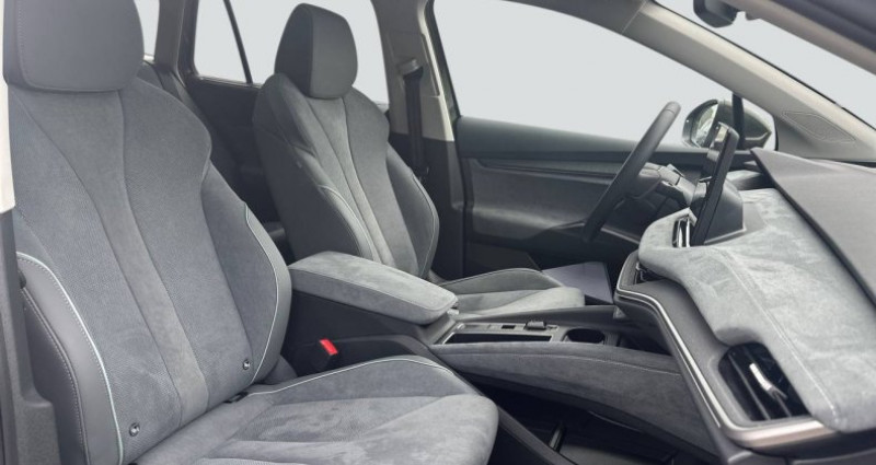Nb. Vitesse : 1 - Toit panoramique ouvrant électrique en verre - JANTES ALLIAGE 20 VEGA ARGENT - Banquette AR rabattable automatiquement depuis le coffre à bagages - Bas de caisse Unique dark chrome (rendu alu mat) - Climatisation automatique Climatronic tri-zones - Détails intérieur en Unique dark chrome (rendu alu mat) - buses de ventilation, poignées de portes, lettrage sur le volant - Entourage des vitres Unique dark chrome (rendu alu mat) - Feux AR LED avec clignotants à défilement - Feux de jour avec allumage automatique des projecteurs, fonction ''Coming Home'' et ''Leaving Home'' (temporisation de l'éclairage extérieur) - Front Assist - système de sécurité anti-collision, avertissement et aide au freinage d'urgence pour véhicules, piétons et cyclistes - Insert décoratif effet alu brossé sur planche de bord / contreportes Habillage tissu gris sur planche de bord / contreportes - Jantes alliage 19 REGULUS anthracite, Pneumatiques AV:235/55 R19 AR: 255/50 R19 - Lettrage AV et AR Unique Dark Chrome (rendu alu mat) - Pare-chocs AV/AR couleur carrosserie avec inserts Unique Dark Chrome (rendu alu mat) - Phares AV Full Matrix LED avec système d'éclairage auto-adaptatif AFS, feux antibrouillard avec fonction Corner lights, welcome effect - Préparation attelage - Radars de stationnement AV/AR avec assistance à la manoeuvre (stoppe la voiture pour eviter une collision lors d'une manoeuvre) - Rampes de pavillon Unique dark chrome (rendu alu mat) - Système de navigation - 2 prises USB-C 45W à l'AV (recharge et transfert de données) et 2 prises USB-C 45W à AR (recharge uniquement) - 3 Appuie-têtes AR - 8 HP - Accoudoir central AR avec porte-gobelets + trappe pour le transport d'objets long à l'AR - Accoudoir central AV - Airbag central AV entre les 2 sièges, airbags latéraux (thorax) dans les sièges AV et AR airbargs rideaux (tête) AV et AR - Airbags frontaux conducteur et passager AV (dont passager déconnectable) - Alarme antivol - protection volumétrique de l'habitacle et anti-remorquage - Appel d'urgence - Ecall - Appuie-têtes AV réglables en hauteur - Assistance 24 h/24 pendant 7 ans - Aumônières au dos des sièges AV avec emplacement pour smartphone - Avertisseur sonore 1 ton - Avertisseur visuel et sonore de ceinture de sécurité non-bouclée - Bacs de rangement dans les portes AV et AR (pour une bouteille de 1,5l) - Banquette AR non divisée et dossiers divisés rabattables (2/3 - 1/3) - Batterie garantie 8 ans ou 160000 km (à au moins 70 % de sa capacité d'origine) - Boîte à gants inférieure côté passager fermée et éclairée - Cable de recharge Mode 3 Type 2 (32 A) - Caméra de recul - Ceintures de sécurité AR 3 points - Ceintures de sécurité AV à 3 points, réglables en hauteur, avec prétensionneurs - Ciel de pavillon gris - Commande vocale - Compartiment de rangement amovible sur le tunnel AR - Compartiment de rangement sous la console centrale - Compartiment de rangement à gauche sous le volant - Compartiments de rangement dans l'accoudoir central AV - Console centrale AV intégrant un espace de rangement et 2 porte-gobelets - Contrôle de la pression de pneus - Coques de rétroviseurs extérieurs couleur carrosserie - Couvre-coffre coulissant - Crew protect Assist - système pro-actif de protection des passagers AV et AR, pré-tend les ceintures de sécurité en cas de danger et ferme presque complètement les vitres latérales pour éviter que des objets extérieurs n'entrent dans l'habitacle - Crochets de fixation dans le coffre - DAB (digital audio broadcasting) - Radio numerique - Digital Cockpit 5,3 : compteurs digitaux personnalisables - Direction assistée asservie à la vitesse (Servotronic) - Dispositif Phonebox : recharge par induction (jusqu'à 15 W) et ventilation active pour un téléphone avec espace de rangement pour le second téléphone - Driving Mode Select : sélection des profils de conduite - Détecteur de fatigue - Détecteur de pluie et de lumière - Eclairage au niveau des poignées de porte intérieures AV/AR et catadioptres au niveau des portes - Eclairage d'ambiance intérieur personnalisable (contre portes AV/AR et éclairages aux pieds AV/AR) - Eclairage dans le coffre (2 lampes) - Eclairage de l'espace aux pieds AV/AR - Eclairages dans le ciel de toit à AV et à AR - Ecran d'info-divertissement 13'' - Emergency Assist (inclus avec le Travel Assist): - réduit le risque d'accident, en cas de malaise du conducteur la voiture le détecte et l'assistant d'urgence s'active en faisant décélérer la voiture jusqu'à son arrêt complet, en la maintenant sur sa voie avec les feux de détresse, le klaxon et l'éclarage intérieur, tout en prévenant les secours avec le système eCall - ESC (incluant ABS, EBD, MSR, ASR, XDS+, HBA, DSR et MKB) - Essuie-glace AR incluant buse de lavage - Essuie-glace AV à intermittence incluant des buses de lavage - Face AV Tech-Deck - Feu AR antibrouillard - Filets de rangement dans le coffre et sac de rangement pour câble - Fixations ''ISOFIX'' + Top tether aux places extérieures AR pour sièges enfant - Fixations ''ISOFIX'' place passager AV pour sièges enfant - Frein à main électrique avec assistant de démarrage en côte - Freins à disques AV - Freins à tambours AR - Garantie 2 ans / kilométrage illimité - Gratte-givre dans le hayon de coffre - Génerateur de son e-noise - Hayon de coffre électrique incluant ouverture mains-libres (Virtual Pedal) - Kessy Advanced avec alarme système d'accès, de démarrage et arrêt du moteur sans clé avec fonction Walk Away Locking, la voiture se verrouille/déverrouille lorsque vous vous en approchez/éloignez - Kit anticrevaison (outils) - Lane Assist + (Travel Assist) : maintien du véhicule au centre de la voie assistant de ronds-points et virages dangereux - Logo d'accueil SKODA projeté sous les portes AV - Lunette AR dégivrante - Mesures de réduction du bruit - Pare-brise athermique - Pare-soleil pour vitres AR int