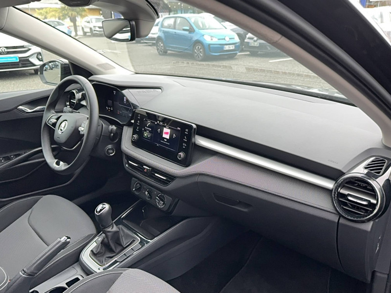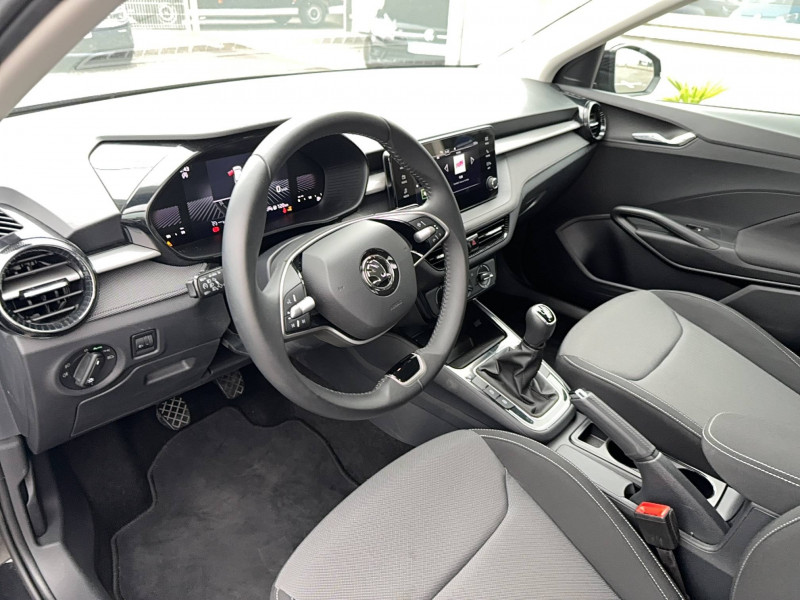 Allumage automatique des feux de détresse en cas d'accident / Eclairage des plaques d'immatriculation à LED / Jantes alliage 15'' ROTARE argent (185/65 R15) / Petit Pack Cuir / Phares AV à LED (feux de route, feux de croisement et feux de jour) / 2 lampes de lecture AV et 2 AR / 2 ports USB-C à l'AV (avec Apple Connectivity) / 3 poignées de maintien intégrées au pavillon / 3ème appuie-tête AR à la place centrale / 4 HP AV + 2 HP AR : SKODA Surround / Accoudoir central AV avec surpiqûres, portes gobelets / Assistance 24 /24 H pendant 7 ans / Augmentation du réservoir à 50 l / Aumônières au dos des sièges AV et pochettes téléphone au dos des sièges AV / Boîte à gants inférieure côté passager fermée / Boîtier de rangement sous le volant / Caméra multifonction (inclus dans le pare-brise) / Care Connect 3 ans / Ceintures de sécurité 3 points AV/AR, réglables en hauteur à l'AV / Ciel de toit gris / Compartiment de rangement dans le coffre à gauche / Contour de calandre chromé / Crochets dans le coffre / Digital Display 8" / Direction assistée électromécanique / E-Call+ / Ecran d'info-divertissement 8,25'' bluetooth, 6 HP, AM/FM, Smartlink incluant Android Auto, Carplay - sans fil pour Apple / Ecrous antivol / ESC (correcteur électronique de trajectoire) incluant ABS, MSR, ASR, EDS, HBA, XDS+, MKB / Essuie-glace pour lunette AR incluant lave-glace avec fonctionnement intermitent / Feux AV antibrouillard avec fonction corner light, éclairage des angles dans les virages / Fixations ISOFIX pour siège enfant aux places AR extérieures et sur le siège passager AV / Freins à disques AR / Garantie 2 ans / kilométrage illimité / Gratte-givre avec contrôle de l'usure des pneumatiques (trappe à carburant) / Klaxon mono-ton / Lane Assist (assistant de maintien dans la voie) / Lumière dans le coffre / Miroir de courtoisie dans les pare-soleil conducteur et passager AV / Pare-chocs AV/AR couleur carrosserie / Poignées de portes et coques de rétroviseurs couleur carrosserie / Porte-ticket dans le pare-soleil côté conducteur / Porte-ticket sur pare-brise / Prise 12 V type allume-cigare dans la console centrale / Radio numérique DAB (Digital Audio Broadcasting) / Rangement de parapluie dans la portière conducteur (parapluie inclus) / Rangement porte-lunettes / Réflecteurs sur pare-chocs AR / Réglage lombaire manuel des sièges AV / Rétroviseur intérieur électrochromatique / Rétroviseurs extérieurs électrochromatiques côté conducteur / Signal acoustique et visuel d'oubli de ceinture de sécurité / Signal sonore d'oubli d'extinction des feux / Tapis de sol AV/AR
