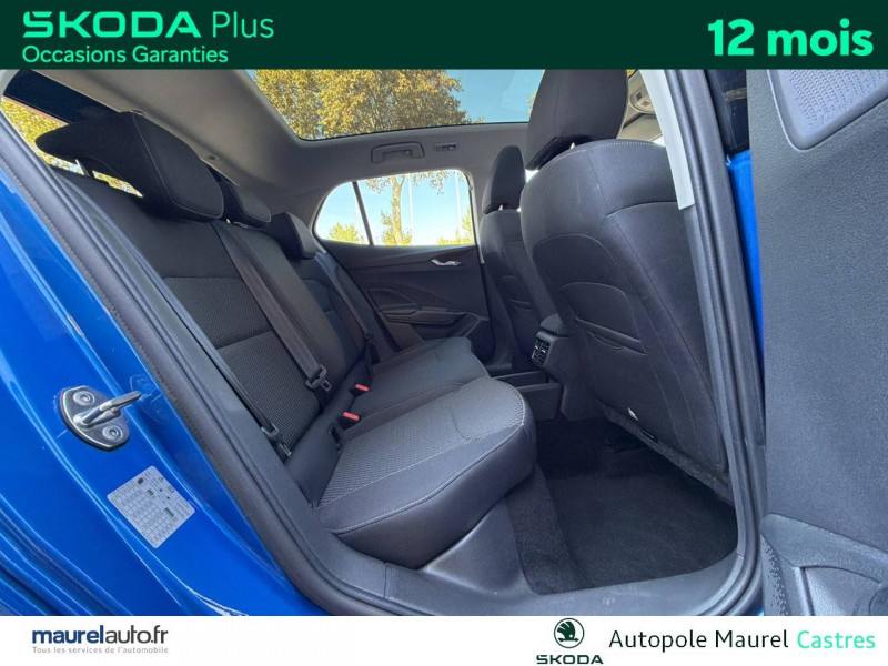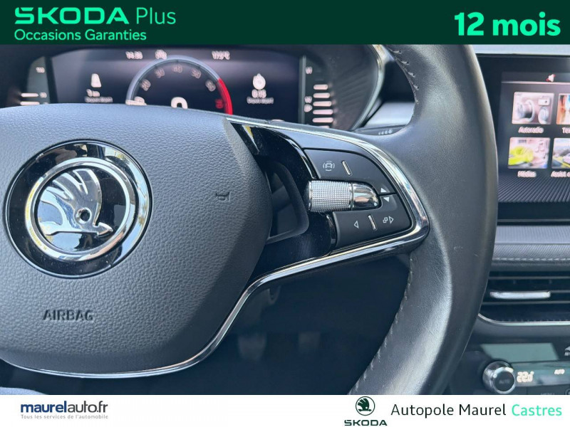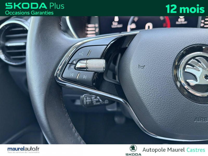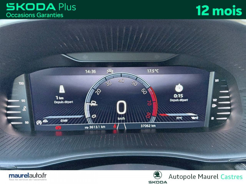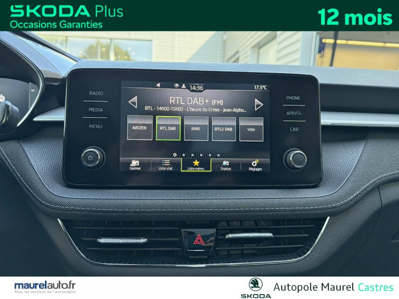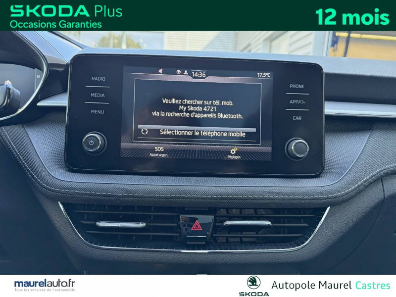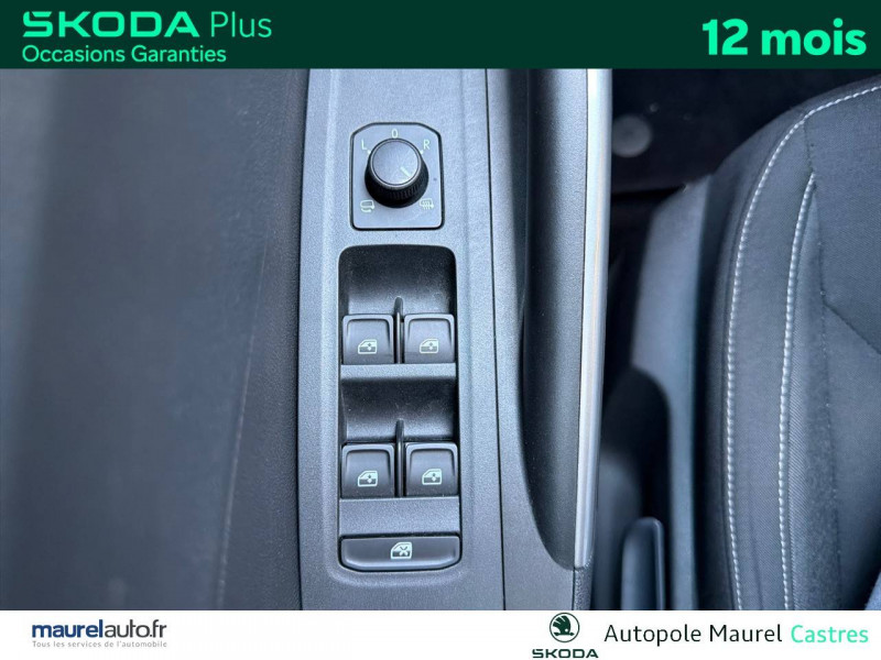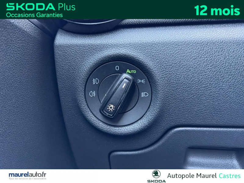 2 ports USB-C à l'AV (avec Apple Connectivity), lecteur de carte SD, MP3, WMA / 3ème appuie-tête AR à la place centrale / 4 HP AV + 2 HP AR : SKODA Surround / 4 jantes alliage 16'' PROXIMA argent avec inserts aéro noirs (195/55 R16) / 4 poignées de maintien intégrées au pavillon (2 avec crochet à cintre) / Accoudoir central AV avec surpiqures, portes gobelets, double USB AV et buses de ventilation AR. / Airbag latéraux (dans les sièges AV) / Airbags frontaux conducteur et passager AV (dont passager déconnectable) / Allumage automatique des feux de détresse en cas d'accident / Assistance 24 /24 H pendant 7 ans / "ATTENTION" - Equipements en cours de saisie / Aumônières au dos des sièges AV avec emplacement pour smartphone / Avertisseur 1 ton / Boîte à gants inférieure côté passager fermée / Boîtier de rangement sous le volant / Cache-bagages à enrouleur dans le coffre / Cache moteur / Care Connect 1 an + services pro actifs 10 ans / Ceintures de sécurité AV à 3 points réglables en hauteur / Compartiment de rangement dans le coffre à gauche / Contour de buses de ventilation chromés / Contour de calandre chromé / Crochets dans le coffre / Digital Cockpit / Direction assistée électromécanique / E-Call+ / Eclairage d'ambiance à LED (blanc/rouge) console centrale, poignées de portes intérieures, lampes de lecture AV/AR. / Eclairage des plaques d'immatriculation à LED / Ecrous antivol / Entourage des vitres latérales chromées / ESC (correcteur électronique de trajectoire) incluant ABS, MSR, ASR, EDS, HBA, XDS+, MKB / Filtre à pollen / Freins à disques AR / Freins à disques AV / Garantie 2 ans / kilométrage illimité / Gratte-givre avec contrôle de l'usure des pneumatiques (trappe à carburant) / Insert décoratif gris métallique / tissu NUBA gris / Jonc de vitres chromé / Kessy (ouverture, fermeture et démarrage sans clé) / Lane Assist (assistant de maintien dans la voie) / Lumière dans le compartiment à bagages (x1) / Lumière de lecture / Pack Visibilité+ / Pare-chocs couleur carrosserie / Petit Pack Cuir (volant + frein à main + levier de vitesse) / Phares AV Full LED / Poignées de portes et coques de rétroviseurs couleur carrosserie / Porte-ticket dans le pare-soleil côté conducteur / Porte-ticket sur côté gauche du pare-brise / Préparation pour fixation de sièges enfants (suivant norme ISOFIX) aux places AR extérieures / Prise 12 V - allume-cigare dans la console centrale / Radio Bolero 8'' (Bluetooth, Smartlink, 6 haut-parleurs, AM/FM) / Radio numérique DAB (Digital Audio Broadcasting) / Rangement de parapluie dans la portière conducteur (parapluie inclus) / Rangement porte-lunettes / Réflecteurs sur pare-chocs AR / Réglage manuel du site des phares au tableau de bord / Roue de secours à encombrement réduit pour 16, 17, 18'' / Sellerie Tissu "Style" / Seuils de portes / Sièges AV avec réglages lombaires / Signal sonore d'oubli d'extinction des feux / Signaux lumineux et sonore d'oubli de ceinture de sécurité AV/AR / Système de sécurité ISOFIX pour le siège passager AV / Tapis de sol AV/AR / Témoin de perte de pression des pneumatiques / Vitres AR électriques avec fonction auto up/down / Vitres AV électriques avec fonction auto up/down / Volant 2 branches en cuir avec molettes multifonctions chromées