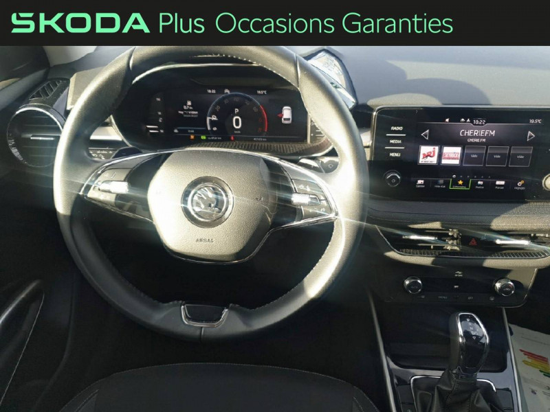 4 jantes alliage 16'' PROXIMA argent avec inserts aéro noirs (195/55 R16) / Allumage automatique des feux de détresse en cas d'accident / Eclairage d'ambiance à LED (blanc/rouge) console centrale, poignées de portes intérieures, lampes de lecture AV/AR. / Eclairage des plaques d'immatriculation à LED / Gestion automatique des plein phares (Auto Light Assist) / Petit Pack Cuir / Phares AV Full LED + feux de jour et fonction Corner-Lights à LED / Volant 2 branches en cuir avec molettes multifonctions chromées / 2 ports USB-C à l'AV (avec Apple Connectivity) / 3ème appuie-tête AR à la place centrale / 4 HP AV + 2 HP AR : SKODA Surround / 4 poignées de maintien intégrées au pavillon (2 avec crochet à cintre) / Accoudoir central AV avec surpiqûres, portes gobelets et buses de ventilation AR / Assistance 24 /24 H pendant 7 ans / Aumônières au dos des sièges AV et pochettes téléphone au dos des sièges AV / Avertisseur sonore 1 ton / Boîte à gants inférieure côté passager fermée / Boîtier de rangement sous le volant / Ceintures de sécurité 3 points AV/AR, réglables en hauteur à l'AV / Compartiment de rangement dans le coffre à gauche / Contour de calandre chromé / Contours intérieurs de buses de ventilation chromés / Crochets dans le coffre / Digital Cockpit / Direction assistée électromécanique / E-Call+ / Ecrous antivol / Entourage des vitres latérales chromées / ESC (correcteur électronique de trajectoire) incluant ABS, MSR, ASR, EDS, HBA, XDS+, MKB / Fixation ISOFIX aux places AR extérieures et sur le siège passager AV / Freins à disques AR / Garantie 2 ans / kilométrage illimité / Gratte-givre avec contrôle de l'usure des pneumatiques (trappe à carburant) / Insert décoratif gris métallique / tissu Nuba gris avec surpiqûres / Kessy (ouverture, fermeture et démarrage sans clé) / Lane Assist (assistant de maintien dans la voie) / Lumière dans le coffre / Miroir de courtoisie dans les pare-soleil conducteur et passager AV / Pare-chocs AV/AR couleur carrosserie / Poignées de portes et coques de rétroviseurs couleur carrosserie / Porte-ticket dans le pare-soleil côté conducteur / Porte-ticket sur pare-brise / Prise 12 V type allume-cigare dans la console centrale / Radio Bolero 8'' (Bluetooth, 6 HP, AM/FM, Smartlink incluant Mirrorlink, Android Auto, Carplay) / Radio numérique DAB (Digital Audio Broadcasting) / Rangement de parapluie dans la portière conducteur (parapluie inclus) / Rangement porte-lunettes / Réflecteurs sur pare-chocs AR / Rétroviseur intérieur électrochromatique / Rétroviseurs extérieurs électrochromatiques côté conducteur / Signal acoustique et visuel d'oubli de ceinture de sécurité / Signal sonore d'oubli d'extinction des feux / Sièges AV avec réglage lombaire manuel / SKODA Connect : Care Connect 1 an + services proactifs 10 ans / Tapis de sol AV/AR