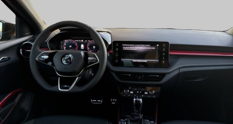 Cylindrée : 999 cm3 Nb. Vitesse : 7 - Pack Navigation Navigation Amundsen 9,2, Commande Vocale, Digital Cockpit *** Avec : Commande vocale *** Avec : Navigation Amundsen 9,2'' - Pack Parking and Go Plus Radars de stationnement AV/AR, Caméra de recul, Kessy Full: ouverture et démarrage sans clé, Driving Mode Select: sélection du mode de conduite, Park Assist: assistant aux manoeuvres de stationnement *** Avec : Park Assist - assistant aux manoeuvres de stationnement - PACK HIVER - INFOTAINMENT ONLINE 3 ANS - INTERIEUR MONTE CARLO - NOIR MAGIC NACRE - MINORANT EUROPCAR 756,38 HT - Aide au démarrage en côte - Allumage automatique des feux de détresse en cas d'accident - Allumage automatique des phares - Climatisation automatique bi-zones Climatronic - Eclairage d'ambiance (blanc/rouge) : Lumière LED à l'AV de la console centrale, lumières LED pour poignées de porte intérieures, lampes de lecture intérieures à LED AV/AR - Eclairage des plaques d'immatriculation à LED - Feux AR full LED - Front Assist : freinage automatique d'urgence - Pack Color Concept noir Rétroviseurs extérieurs peints en noir, Toit noir, Jantes alliage 17 PROCYON noires avec inserts aéro + écrous antivol - Pack Parking and Go Radars de stationnement AV/AR, Caméra de recul, Kessy Full: ouverture et démarrage sans clé, Driving Mode Select: sélection du mode de conduite - Pack Visibilité Plus Auto Light Assist: gestion automatique des feux de route/feux de croisement en conduisant, Feux AV full LED - Petit Pack Cuir - Phares AV Full LED + feux de jour et fonction Corner-Lights à LED - Pédalier aluminium - Volant 3 branches sport multifonctions en cuir avec badge Monte-Carlo - 2 lampes de lecture AV et 2 AR - 2 ports USB-C à l'AV (avec Apple Connectivity) - 3 poignées de maintien intégrées au pavillon - 3ème appuie-tête AR à la place centrale - 4 HP AV + 2 HP AR : SKODA Surround - Accoudoir central AV avec surpiqûres, portes gobelets - Airbags frontaux (conducteur, passager AV déconnectable) - Airbags latéraux AV incluant airbag de tête - Airbags rideaux AV/AR - Assistance 24 h/24 pendant 7 ans - Augmentation du réservoir à 50 l - Aumônières au dos des sièges AV et pochettes téléphone au dos des sièges AV - Badge Monte-Carlo sur l'aile AV - Boîte à gants inférieure côté passager fermée - Boîtier de rangement sous le volant - Caméra de recul avec buse lavante - Caméra multifonction (inclus dans le pare-brise) - Care Connect 3 ans - Ceintures de sécurité 3 points AV/AR, réglables en hauteur à l'AV - Ciel de toit noir - Compartiment de rangement dans le coffre à gauche - Contrôle de la pression de pneus - Crochets dans le coffre - Digital Cockpit - Direction assistée électromécanique - Dossier de banquette AR rabattable 60:40 - Détecteur de fatigue - Détecteur de pluie - Détection des panneaux de signalisation - E-Call+ - Ecran d'info-divertissement 8,25'' bluetooth, 6 haut-parleurs, AM/FM, Smartlink incluant Android Auto®, Carplay® - sans fil pour Apple - ESC (correcteur électronique de trajectoire) incluant ABS, MSR, ASR, EDS, HBA, XDS+, MKB - Essuie-glace pour lunette AR incluant lave-glace avec fonctionnement intermitent - Feu AR antibrouillard - Feux AV antibrouillard - Fixations ISOFIX pour siège enfant aux places AR extérieures et sur le siège passager AV - Freins à disques AR - Garantie 2 ans / kilométrage illimité - Gratte-givre avec contrôle de l'usure des pneumatiques (trappe à carburant) - Kit carrosserie spécifique lame AV, inserts de bas de caisse noir laqué, diffuseur AR noir laqué, grille de calandre noire, coques de rétroviseurs extérieurs noires - Klaxon mono-ton - Lane Assist (assistant de maintien dans la voie) - Lettrage noir à l'AR du véhicule - Lumière dans le coffre - Lunette AR dégivrante - Miroir de courtoisie dans les pare-soleil conducteur et passager AV - Pare-chocs AV/AR couleur carrosserie - Pare-soleil AV conducteur et passager - Porte-ticket dans le pare-soleil côté conducteur - Porte-ticket sur pare-brise - Prise 12 V type allume-cigare dans la console centrale - Radio numérique DAB (Digital Audio Broadcasting) - Rangement de parapluie dans la portière conducteur (parapluie inclus) - Rangement porte-lunettes - Roue de secours - Réflecteurs sur pare-chocs AR - Réglage lombaire manuel des sièges AV - Régulateur + Limiteur de vitesse - Rétroviseur intérieur électrochromatique - Rétroviseurs extérieurs réglables, rabattables électriquement et dégivrants - Rétroviseurs extérieurs électrochromatiques côté conducteur - Signal acoustique et visuel d'oubli de ceinture de sécurité - Signal sonore d'oubli d'extinction des feux - Siège conducteur réglable en hauteur - Siège passager réglable en hauteur - Système Start/Stop - Tapis de sol AV/AR - Verrouillage centralisé à distance (2 clés rétractables) - Vitres AR et lunette AR surteintées - Vitres AR électriques - Vitres AV électriques