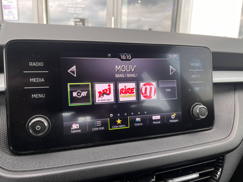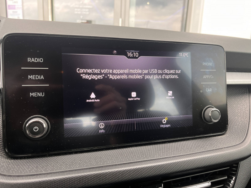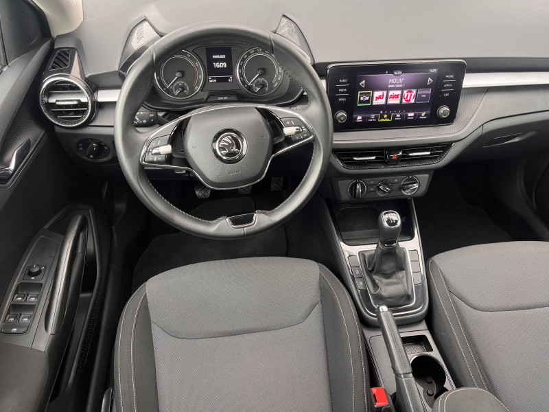 4 jantes alliage 15'' ROTARE argent (185/65 R15) / Allumage automatique des feux de détresse en cas d'accident / Eclairage des plaques d'immatriculation à LED / Petit Pack Cuir / Phares AV à LED (feux de route, feux de croisement et feux de jour) / 2 ports USB-C à l'AV (avec Apple Connectivity) / 3ème appuie-tête AR à la place centrale / 4 HP AV + 2 HP AR : SKODA Surround / 4 poignées de maintien intégrées au pavillon (2 avec crochet à cintre) / Accoudoir central AV avec surpiqûres, portes gobelets et buses de ventilation AR / Assistance 24 h/24 pendant 7 ans / Aumônières au dos des sièges AV et pochettes téléphone au dos des sièges AV / Avertisseur sonore 1 ton / Boîte à gants inférieure côté passager fermée / Boîtier de rangement sous le volant / Care Connect 1 an + services pro actifs 10 ans / Ceintures de sécurité 3 points AV/AR, réglables en hauteur à l'AV / Compartiment de rangement dans le coffre à gauche / Contour de calandre chromé / Crochets dans le coffre / Direction assistée électromécanique / E-Call+ / Ecrous antivol / Eléments couleur chrome/argent : poignées intérieurs de portes, levier de vitesse, buses de ventilation, bouton de frein à main, contour des compteurs / ESC (correcteur électronique de trajectoire) incluant ABS, MSR, ASR, EDS, HBA, XDS+, MKB / Fixations ISOFIX pour siège enfant aux places AR extérieures et sur le siège passager AV / Freins à disques AR / Garantie 2 ans / kilométrage illimité / Gratte-givre avec contrôle de l'usure des pneumatiques (trappe à carburant) / Insert décoratif gris / grain satin noir / Lane Assist (assistant de maintien dans la voie) / Lumière dans le coffre / Miroir de courtoisie dans les pare-soleil conducteur et passager AV / Ordinateur de bord grand écran à affichage Maxi-Dot / Pare-chocs AV/AR couleur carrosserie / Poignées de portes et coques de rétroviseurs couleur carrosserie / Porte-ticket dans le pare-soleil côté conducteur / Porte-ticket sur pare-brise / Prise 12 V type allume-cigare dans la console centrale / Radio Bolero 8'' (Bluetooth, 6 HP, AM/FM, Smartlink incluant Mirrorlink, Android Auto, Carplay) / Radio numérique DAB (Digital Audio Broadcasting) / Rangement de parapluie dans la portière conducteur (parapluie inclus) / Rangement porte-lunettes / Réflecteurs sur pare-chocs AR / Rétroviseur intérieur électrochromatique / Signal acoustique et visuel d'oubli de ceinture de sécurité / Signal sonore d'oubli d'extinction des feux / SKODA Connect : Care Connect 1 an + services proactifs 10 ans / Tapis de sol AV/AR