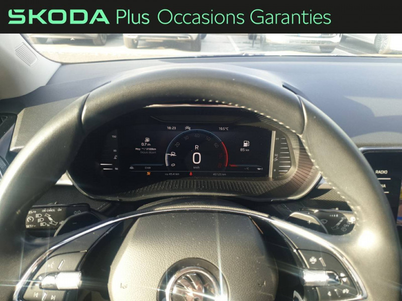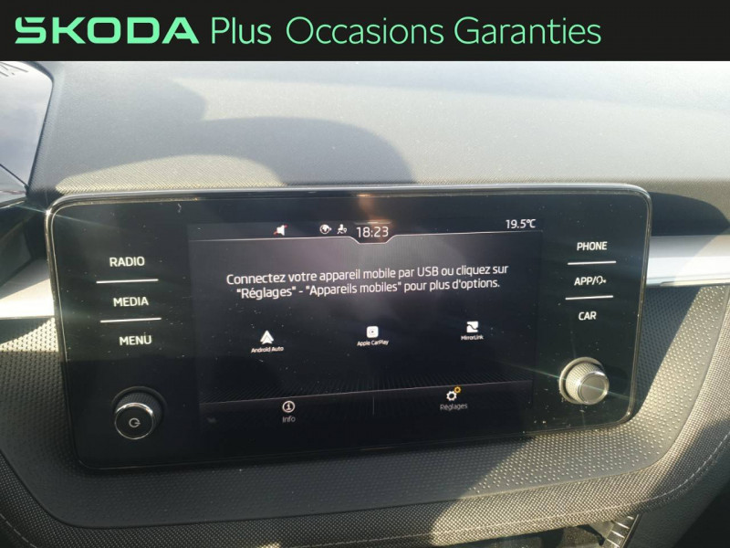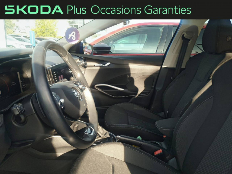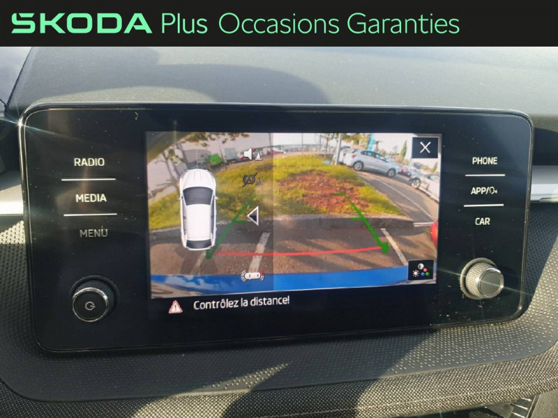 4 jantes alliage 16'' PROXIMA argent avec inserts aéro noirs (195/55 R16) / Allumage automatique des feux de détresse en cas d'accident / Eclairage d'ambiance à LED (blanc/rouge) console centrale, poignées de portes intérieures, lampes de lecture AV/AR. / Eclairage des plaques d'immatriculation à LED / Gestion automatique des plein phares (Auto Light Assist) / Petit Pack Cuir / Phares AV Full LED + feux de jour et fonction Corner-Lights à LED / Volant 2 branches en cuir avec molettes multifonctions chromées / 2 ports USB-C à l'AV (avec Apple Connectivity) / 3ème appuie-tête AR à la place centrale / 4 HP AV + 2 HP AR : SKODA Surround / 4 poignées de maintien intégrées au pavillon (2 avec crochet à cintre) / Accoudoir central AV avec surpiqûres, portes gobelets et buses de ventilation AR / Assistance 24 /24 H pendant 7 ans / Aumônières au dos des sièges AV et pochettes téléphone au dos des sièges AV / Avertisseur sonore 1 ton / Boîte à gants inférieure côté passager fermée / Boîtier de rangement sous le volant / Ceintures de sécurité 3 points AV/AR, réglables en hauteur à l'AV / Compartiment de rangement dans le coffre à gauche / Contour de calandre chromé / Contours intérieurs de buses de ventilation chromés / Crochets dans le coffre / Digital Cockpit / Direction assistée électromécanique / E-Call+ / Ecrous antivol / Entourage des vitres latérales chromées / ESC (correcteur électronique de trajectoire) incluant ABS, MSR, ASR, EDS, HBA, XDS+, MKB / Fixation ISOFIX aux places AR extérieures et sur le siège passager AV / Freins à disques AR / Garantie 2 ans / kilométrage illimité / Gratte-givre avec contrôle de l'usure des pneumatiques (trappe à carburant) / Insert décoratif gris métallique / tissu Nuba gris avec surpiqûres / Kessy (ouverture, fermeture et démarrage sans clé) / Lane Assist (assistant de maintien dans la voie) / Lumière dans le coffre / Miroir de courtoisie dans les pare-soleil conducteur et passager AV / Pare-chocs AV/AR couleur carrosserie / Poignées de portes et coques de rétroviseurs couleur carrosserie / Porte-ticket dans le pare-soleil côté conducteur / Porte-ticket sur pare-brise / Prise 12 V type allume-cigare dans la console centrale / Radio Bolero 8'' (Bluetooth, 6 HP, AM/FM, Smartlink incluant Mirrorlink, Android Auto, Carplay) / Radio numérique DAB (Digital Audio Broadcasting) / Rangement de parapluie dans la portière conducteur (parapluie inclus) / Rangement porte-lunettes / Réflecteurs sur pare-chocs AR / Rétroviseur intérieur électrochromatique / Rétroviseurs extérieurs électrochromatiques côté conducteur / Signal acoustique et visuel d'oubli de ceinture de sécurité / Signal sonore d'oubli d'extinction des feux / Sièges AV avec réglage lombaire manuel / SKODA Connect : Care Connect 1 an + services proactifs 10 ans / Tapis de sol AV/AR