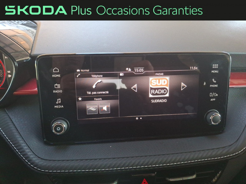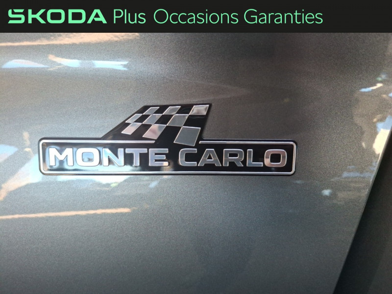 Allumage automatique des feux de détresse en cas d'accident / Eclairage d'ambiance (blanc/rouge) : Lumière LED à l'AV de la console centrale, lumières LED pour poignées de porte intérieures, lampes de lecture intérieures à LED AV/AR / Eclairage des plaques d'immatriculation à LED / Phares AV Full LED + feux de jour et fonction Corner-Lights à LED / Pédalier aluminium / Volant 3 branches sport multifonctions en cuir avec badge Monte-Carlo / 2 lampes de lecture AV et 2 AR / 2 ports USB-C à l'AV (avec Apple Connectivity) / 3 poignées de maintien intégrées au pavillon / 3ème appuie-tête AR à la place centrale / 4 HP AV + 2 HP AR : SKODA Surround / Accoudoir central AV avec surpiqûres, portes gobelets / Assistance 24 /24 H pendant 7 ans / Augmentation du réservoir à 50 l / Aumônières au dos des sièges AV et pochettes téléphone au dos des sièges AV / Badge Monte-Carlo sur l'aile AV / Boîte à gants inférieure côté passager fermée / Boîtier de rangement sous le volant / Caméra de recul avec buse lavante / Caméra multifonction (inclus dans le pare-brise) / Care Connect 3 ans / Ceintures de sécurité 3 points AV/AR, réglables en hauteur à l'AV / Ciel de toit noir / Compartiment de rangement dans le coffre à gauche / Crochets dans le coffre / Digital Cockpit / Direction assistée électromécanique / E-Call+ / Ecran d'info-divertissement 8,25'' bluetooth, 6 HP, AM/FM, Smartlink incluant Android Auto, Carplay - sans fil pour Apple / ESC (correcteur électronique de trajectoire) incluant ABS, MSR, ASR, EDS, HBA, XDS+, MKB / Essuie-glace pour lunette AR incluant lave-glace avec fonctionnement intermitent / Fixations ISOFIX pour siège enfant aux places AR extérieures et sur le siège passager AV / Freins à disques AR / Gratte-givre avec contrôle de l'usure des pneumatiques (trappe à carburant) / Kit carrosserie spécifique lame AV, inserts de bas de caisse noir laqué, diffuseur AR noir laqué, grille de calandre noire, coques de rétroviseurs extérieurs noires / Klaxon mono-ton / Lane Assist (assistant de maintien dans la voie) / Lettrage noir à l'AR du véhicule / Lumière dans le coffre / Miroir de courtoisie dans les pare-soleil conducteur et passager AV / Pare-chocs AV/AR couleur carrosserie / Porte-ticket dans le pare-soleil côté conducteur / Porte-ticket sur pare-brise / Prise 12 V type allume-cigare dans la console centrale / Radio numérique DAB (Digital Audio Broadcasting) / Rangement de parapluie dans la portière conducteur (parapluie inclus) / Rangement porte-lunettes / Réflecteurs sur pare-chocs AR / Réglage lombaire manuel des sièges AV / Rétroviseur intérieur électrochromatique / Rétroviseurs extérieurs électrochromatiques côté conducteur / Signal acoustique et visuel d'oubli de ceinture de sécurité / Signal sonore d'oubli d'extinction des feux / Tapis de sol AV/AR