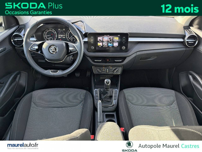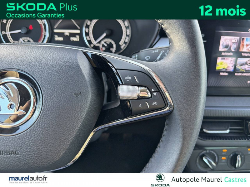 4 jantes alliage 15'' ROTARE argent (185/65 R15) / Allumage automatique des feux de détresse en cas d'accident / Eclairage des plaques d'immatriculation à LED / Petit Pack Cuir / Phares AV à LED (feux de route, feux de croisement et feux de jour) / 2 ports USB-C à l'AV (avec Apple Connectivity) / 3ème appuie-tête AR à la place centrale / 4 HP AV + 2 HP AR : SKODA Surround / 4 poignées de maintien intégrées au pavillon (2 avec crochet à cintre) / Accoudoir central AV avec surpiqûres, portes gobelets et buses de ventilation AR / Assistance 24 h/24 pendant 7 ans / Aumônières au dos des sièges AV et pochettes téléphone au dos des sièges AV / Avertisseur sonore 1 ton / Boîte à gants inférieure côté passager fermée / Boîtier de rangement sous le volant / Care Connect 1 an + services pro actifs 10 ans / Ceintures de sécurité 3 points AV/AR, réglables en hauteur à l'AV / Compartiment de rangement dans le coffre à gauche / Contour de calandre chromé / Crochets dans le coffre / Direction assistée électromécanique / E-Call+ / Ecrous antivol / Eléments couleur chrome/argent : poignées intérieurs de portes, levier de vitesse, buses de ventilation, bouton de frein à main, contour des compteurs / ESC (correcteur électronique de trajectoire) incluant ABS, MSR, ASR, EDS, HBA, XDS+, MKB / Fixations ISOFIX pour siège enfant aux places AR extérieures et sur le siège passager AV / Freins à disques AR / Garantie 2 ans / kilométrage illimité / Gratte-givre avec contrôle de l'usure des pneumatiques (trappe à carburant) / Insert décoratif gris / grain satin noir / Lane Assist (assistant de maintien dans la voie) / Lumière dans le coffre / Miroir de courtoisie dans les pare-soleil conducteur et passager AV / Ordinateur de bord grand écran à affichage Maxi-Dot / Pare-chocs AV/AR couleur carrosserie / Poignées de portes et coques de rétroviseurs couleur carrosserie / Porte-ticket dans le pare-soleil côté conducteur / Porte-ticket sur pare-brise / Prise 12 V type allume-cigare dans la console centrale / Radio Bolero 8'' (Bluetooth, 6 HP, AM/FM, Smartlink incluant Mirrorlink, Android Auto, Carplay) / Radio numérique DAB (Digital Audio Broadcasting) / Rangement de parapluie dans la portière conducteur (parapluie inclus) / Rangement porte-lunettes / Réflecteurs sur pare-chocs AR / Rétroviseur intérieur électrochromatique / Signal acoustique et visuel d'oubli de ceinture de sécurité / Signal sonore d'oubli d'extinction des feux / SKODA Connect : Care Connect 1 an + services proactifs 10 ans / Tapis de sol AV/AR