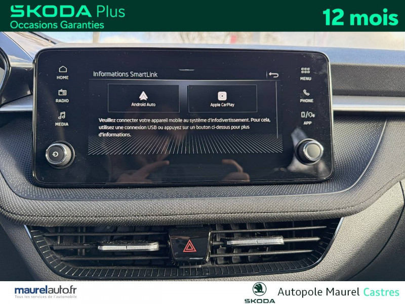 2 lampes de lecture AV et 2 AR / 2 ports USB-C à l'AV (avec Apple Connectivity) / 3ème appuie-tête AR à la place centrale / 3 poignées de maintien intégrées au pavillon / 4 HP AV + 2 HP AR : SKODA Surround / Accoudoir central AV avec surpiqûres, portes gobelets / Allumage automatique des feux de détresse en cas d'accident / Assistance 24 /24 H pendant 7 ans / Augmentation du réservoir à 50 l / Aumônières au dos des sièges AV et pochettes téléphone au dos des sièges AV / Boîte à gants inférieure côté passager fermée / Boîtier de rangement sous le volant / Caméra multifonction (inclus dans le pare-brise) / Care Connect 3 ans / Ceintures de sécurité 3 points AV/AR, réglables en hauteur à l'AV / Ciel de toit gris / Compartiment de rangement dans le coffre à gauche / Contour de calandre chromé / Crochets dans le coffre / Design intérieur Loft : sellerie tissu "Kota Grey uni" avec surpiqures "Art Grey" et insert décoratif gris métallique / Digital Display 8" / Direction assistée électromécanique / E-Call+ / Eclairage des plaques d'immatriculation à LED / Ecran d'info-divertissement 8,25'' bluetooth, 6 HP, AM/FM, Smartlink incluant Android Auto, Carplay - sans fil pour Apple / Ecrous antivol / ESC (correcteur électronique de trajectoire) incluant ABS, MSR, ASR, EDS, HBA, XDS+, MKB / Essuie-glace pour lunette AR incluant lave-glace avec fonctionnement intermitent / Feux AV antibrouillard avec fonction corner light, éclairage des angles dans les virages / Fixations ISOFIX pour siège enfant aux places AR extérieures et sur le siège passager AV / Freins à disques AR / Garantie 2 ans / kilométrage illimité / Gratte-givre avec contrôle de l'usure des pneumatiques (trappe à carburant) / Jantes alliage 15'' ROTARE argent (185/65 R15) / Klaxon mono-ton / Lane Assist (assistant de maintien dans la voie) / Lumière dans le coffre / Miroir de courtoisie dans les pare-soleil conducteur et passager AV / Pare-chocs AV/AR couleur carrosserie / Petit Pack Cuir / Phares AV à LED (feux de route, feux de croisement et feux de jour) / Poignées de portes et coques de rétroviseurs couleur carrosserie / Porte-ticket dans le pare-soleil côté conducteur / Porte-ticket sur pare-brise / Prise 12 V type allume-cigare dans la console centrale / Radio numérique DAB (Digital Audio Broadcasting) / Rangement de parapluie dans la portière conducteur (parapluie inclus) / Rangement porte-lunettes / Réflecteurs sur pare-chocs AR / Réglage lombaire manuel des sièges AV / Rétroviseur intérieur électrochromatique / Rétroviseurs extérieurs électrochromatiques côté conducteur / Signal acoustique et visuel d'oubli de ceinture de sécurité / Signal sonore d'oubli d'extinction des feux / Tapis de sol AV/AR