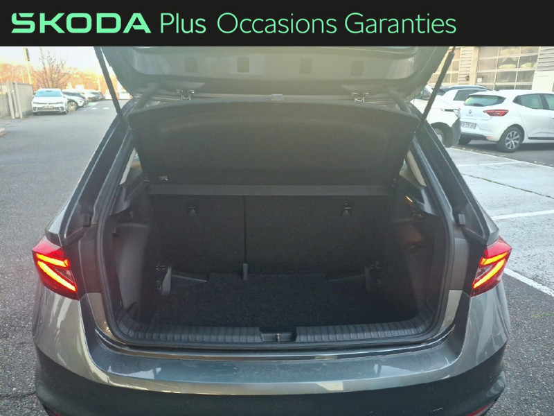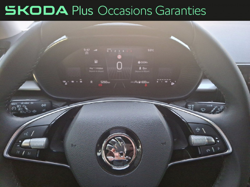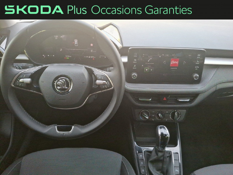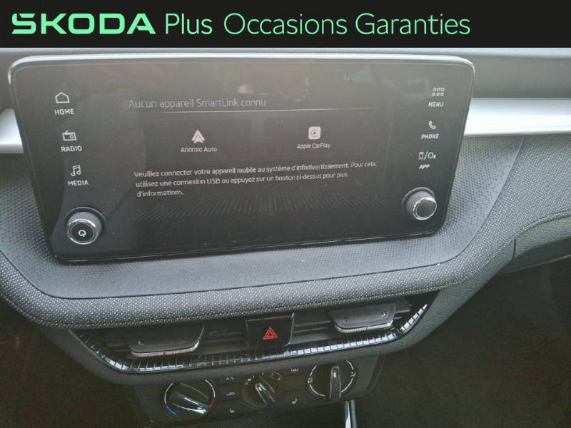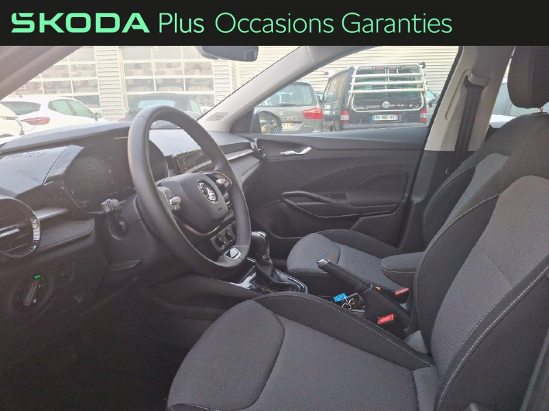 Allumage automatique des feux de détresse en cas d'accident / Boîte de vitesse automatique à 7 vitesses / Eclairage des plaques d'immatriculation à LED / Jantes alliage 15'' ROTARE argent (185/65 R15) / Petit pack cuir (volant, pommeau de levier de vitesses et manchette de frein à main) / Phares AV à LED (feux de route, feux de croisement et feux de jour) / 2 lampes de lecture AV et 2 AR / 2 ports USB-C à l'AV (avec Apple Connectivity) / 3 poignées de maintien intégrées au pavillon / 3ème appuie-tête AR à la place centrale / 4 HP AV + 2 HP AR : SKODA Surround / Accoudoir central AV avec surpiqûres, portes gobelets / Appuie-têtes AV réglables en hauteur (non réglables avec la sellerie sport) / Assistance 24 /24 H pendant 7 ans / Augmentation du réservoir à 50 l / Aumônières au dos des sièges AV et pochettes téléphone au dos des sièges AV / Boîte à gants inférieure côté passager fermée / Boîtier de rangement sous le volant / Caméra multifonction (inclus dans le pare-brise) / Care Connect 3 ans / Ceintures de sécurité 3 points AV/AR, réglables en hauteur à l'AV / Ciel de toit gris / Compartiment de rangement dans le coffre à gauche / Contour de calandre chromé / Contrôle de la traction (TCS) / Crochets dans le coffre / Digital Display 8" / Direction assistée électromécanique / E-Call+ / Ecran d'info-divertissement 8,25'' bluetooth, 6 HP, AM/FM, Smartlink incluant Android Auto, Carplay - sans fil pour Apple / Ecrous antivol / ESC (correcteur électronique de trajectoire) incluant ABS, MSR, ASR, EDS, HBA, XDS+, MKB / Essuie-glace pour lunette AR incluant lave-glace avec fonctionnement intermitent / Feux AV antibrouillard avec fonction corner light, éclairage des angles dans les virages / Fixations ISOFIX pour siège enfant aux places AR extérieures et sur le siège passager AV / Freins à disques AR / Gratte-givre avec contrôle de l'usure des pneumatiques (trappe à carburant) / Klaxon mono-ton / Lane Assist (assistant de maintien dans la voie) / Lumière dans le coffre / Miroir de courtoisie dans les pare-soleil conducteur et passager AV / Pare-chocs AV/AR couleur carrosserie / Poignées de portes et coques de rétroviseurs couleur carrosserie / Porte-ticket dans le pare-soleil côté conducteur / Porte-ticket sur pare-brise / Prise 12 V type allume-cigare dans la console centrale / Radio numérique DAB (Digital Audio Broadcasting) / Rangement de parapluie dans la portière conducteur (parapluie inclus) / Rangement porte-lunettes / Réflecteurs sur pare-chocs AR / Réglage lombaire manuel des sièges AV / Rétroviseur intérieur électrochromatique / Rétroviseurs extérieurs électrochromatiques côté conducteur / Signal acoustique et visuel d'oubli de ceinture de sécurité / Signal sonore d'oubli d'extinction des feux / Tapis de sol AV/AR