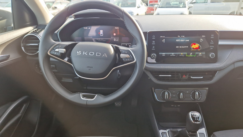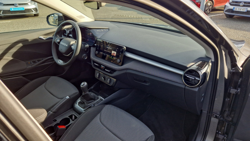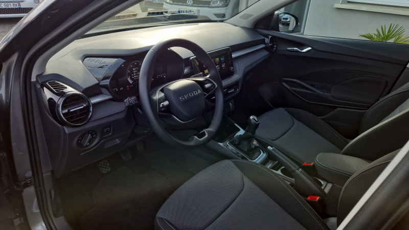 Allumage automatique des feux de détresse en cas d'accident / Eclairage des plaques d'immatriculation à LED / Jantes alliage 15'' ROTARE argent (185/65 R15) / Phares AV à LED (feux de route, feux de croisement et feux de jour) / 2 lampes de lecture AV et 2 AR / 2 ports USB-C à l'AV (avec Apple Connectivity) / 3 poignées de maintien intégrées au pavillon / 3ème appuie-tête AR à la place centrale / 4 HP AV + 2 HP AR : SKODA Surround / Accoudoir central AV avec surpiqûres, portes gobelets / Appuie-têtes AV réglables en hauteur (non réglables avec la sellerie sport) / Assistance 24 /24 H pendant 7 ans / Augmentation du réservoir à 50 l / Aumônières au dos des sièges AV et pochettes téléphone au dos des sièges AV / Boîte à gants inférieure côté passager fermée / Boîtier de rangement sous le volant / Caméra multifonction (inclus dans le pare-brise) / Care Connect 3 ans / Ceintures de sécurité 3 points AV/AR, réglables en hauteur à l'AV / Ciel de toit gris / Compartiment de rangement dans le coffre à gauche / Contour de calandre chromé / Crochets dans le coffre / Digital Display 8" / Direction assistée électromécanique / E-Call+ / Ecran d'info-divertissement 8,25'' bluetooth, 6 HP, AM/FM, Smartlink incluant Android Auto, Carplay - sans fil pour Apple / Ecrous antivol / ESC (correcteur électronique de trajectoire) incluant ABS, MSR, ASR, EDS, HBA, XDS+, MKB / Essuie-glace pour lunette AR incluant lave-glace avec fonctionnement intermitent / Feux AV antibrouillard avec fonction corner light, éclairage des angles dans les virages / Fixations ISOFIX pour siège enfant aux places AR extérieures et sur le siège passager AV / Freins à disques AR / Gratte-givre avec contrôle de l'usure des pneumatiques (trappe à carburant) / Klaxon mono-ton / Lane Assist (assistant de maintien dans la voie) / Lumière dans le coffre / Miroir de courtoisie dans les pare-soleil conducteur et passager AV / Pare-chocs AV/AR couleur carrosserie / Poignées de portes et coques de rétroviseurs couleur carrosserie / Porte-ticket dans le pare-soleil côté conducteur / Porte-ticket sur pare-brise / Prise 12 V type allume-cigare dans la console centrale / Radio numérique DAB (Digital Audio Broadcasting) / Rangement de parapluie dans la portière conducteur (parapluie inclus) / Rangement porte-lunettes / Réflecteurs sur pare-chocs AR / Réglage lombaire manuel des sièges AV / Rétroviseur intérieur électrochromatique / Rétroviseurs extérieurs électrochromatiques côté conducteur / Signal acoustique et visuel d'oubli de ceinture de sécurité / Signal sonore d'oubli d'extinction des feux / Tapis de sol AV/AR