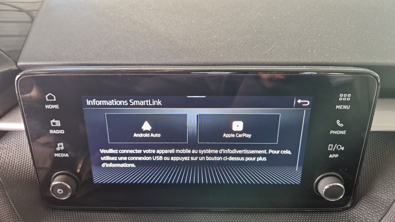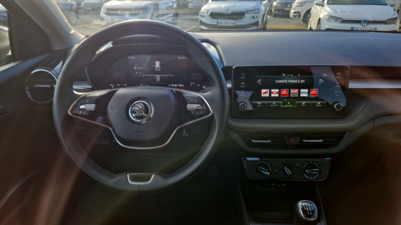 Allumage automatique des feux de détresse en cas d'accident / Eclairage des plaques d'immatriculation à LED / Jantes alliage 15'' ROTARE argent (185/65 R15) / Petit Pack Cuir / Phares AV à LED (feux de route, feux de croisement et feux de jour) / 2 lampes de lecture AV et 2 AR / 2 ports USB-C à l'AV (avec Apple Connectivity) / 3 poignées de maintien intégrées au pavillon / 3ème appuie-tête AR à la place centrale / 4 HP AV + 2 HP AR : SKODA Surround / Accoudoir central AV avec surpiqûres, portes gobelets / Assistance 24 /24 H pendant 7 ans / Augmentation du réservoir à 50 l / Aumônières au dos des sièges AV et pochettes téléphone au dos des sièges AV / Boîte à gants inférieure côté passager fermée / Boîtier de rangement sous le volant / Caméra multifonction (inclus dans le pare-brise) / Care Connect 3 ans / Ceintures de sécurité 3 points AV/AR, réglables en hauteur à l'AV / Ciel de toit gris / Compartiment de rangement dans le coffre à gauche / Contour de calandre chromé / Crochets dans le coffre / Digital Display 8" / Direction assistée électromécanique / E-Call+ / Ecran d'info-divertissement 8,25'' bluetooth, 6 HP, AM/FM, Smartlink incluant Android Auto, Carplay - sans fil pour Apple / Ecrous antivol / ESC (correcteur électronique de trajectoire) incluant ABS, MSR, ASR, EDS, HBA, XDS+, MKB / Essuie-glace pour lunette AR incluant lave-glace avec fonctionnement intermitent / Feux AV antibrouillard avec fonction corner light, éclairage des angles dans les virages / Fixations ISOFIX pour siège enfant aux places AR extérieures et sur le siège passager AV / Freins à disques AR / Garantie 2 ans / kilométrage illimité / Gratte-givre avec contrôle de l'usure des pneumatiques (trappe à carburant) / Klaxon mono-ton / Lane Assist (assistant de maintien dans la voie) / Lumière dans le coffre / Miroir de courtoisie dans les pare-soleil conducteur et passager AV / Pare-chocs AV/AR couleur carrosserie / Poignées de portes et coques de rétroviseurs couleur carrosserie / Porte-ticket dans le pare-soleil côté conducteur / Porte-ticket sur pare-brise / Prise 12 V type allume-cigare dans la console centrale / Radio numérique DAB (Digital Audio Broadcasting) / Rangement de parapluie dans la portière conducteur (parapluie inclus) / Rangement porte-lunettes / Réflecteurs sur pare-chocs AR / Réglage lombaire manuel des sièges AV / Rétroviseur intérieur électrochromatique / Rétroviseurs extérieurs électrochromatiques côté conducteur / Signal acoustique et visuel d'oubli de ceinture de sécurité / Signal sonore d'oubli d'extinction des feux / Tapis de sol AV/AR