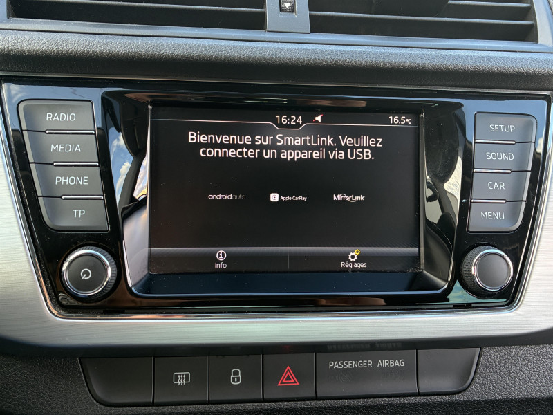 Feux de jour LED + Phares AV avec projecteurs AV sur fond de couleur noire / Insert décoratif de tableau de bord type Aluminium brossé Anthracite / Petit Pack Cuir (volant, pommeau de levier de vitesse et manchette de frein à main) / Volant cuir 3 branches multifonctions Radio/Téléphone / 3ème appuis-tête central AR / 4 poignées de maintien intégrées au pavillon (2 avec crochet à cintre) / Airbags frontaux conducteur et passager AV (dont passager déconnectable) / Assistance 24 /24 H pendant 7 ans / Aumônières au dos des sièges AV / Boîte de rangement sous les sièges conducteur et passager / Boîte à gants inférieure côté passager, fermée éclairée / Cache moteur / Cache-bagages dans le coffre / Calandre au contour chromé / Ceintures de sécurité AV à 3 points réglables en hauteur / Commande vocale / Connexions USB (avec Apple Connectivity) + Aux-in + lecteur carte SD / Console centrale noire / Direction assistée électromécanique / Eléments couleur chrome/argent : poignées intérieurs de portes, levier de vitesse, buses de ventilation, bouton de frein à main, contour des compteurs / Entourage de calandre AV chromée / ESC (correcteur électronique de trajectoire) incluant ABS, MSR, ASR, EDS, HBA, XDS+, MKB / Filets de rangement sur côté des sièges AV / Filtre à pollen / Freins à disques AR / Freins à disques AV / Front Assist + ordinateur de bord maxi dot / Miroirs de courtoisie côté conducteur et passager dans pare-soleil / Ordinateur de bord grand écran à affichage Maxi-Dot / Parapluie intégré sous le siège passager / Pare-chocs AV/AR couleur carrosserie / Phares AV avec projecteurs H7 sur fond couleur noire / Phares AV halogène avec feux du jour / Porte tickets sur le pare-brise / Porte-ticket dans le pare-soleil côté conducteur / Prise 12 V - allume-cigare dans la console centrale / Préparation pour fixation de sièges enfants (suivant norme ISOFIX) aux places AR extérieures / Radio "Bolero" / Rangement porte-lunettes / Réglage manuel du site des phares au tableau de bord / Régulateur de vitesse + Limiteur de vitesse / Rétroviseurs extérieurs couleur carrosserie / Signaux lumineux d'oubli de ceinture de sécurité aux places AV et AR / Système téléphone mobile Bluetooth / Tapis au sol AV/AR / Témoin de non bouclage de ceinture de sécurité AV/AR / Témoin de perte de pression des pneumatiques / Vide-poches dans les portes AR support pour bouteille 0,5 litres / Vide-poches dans les portes AV support pour bouteille 1,5 litres / Volant 3 branches multifonctions pilotant la radio et le téléphone