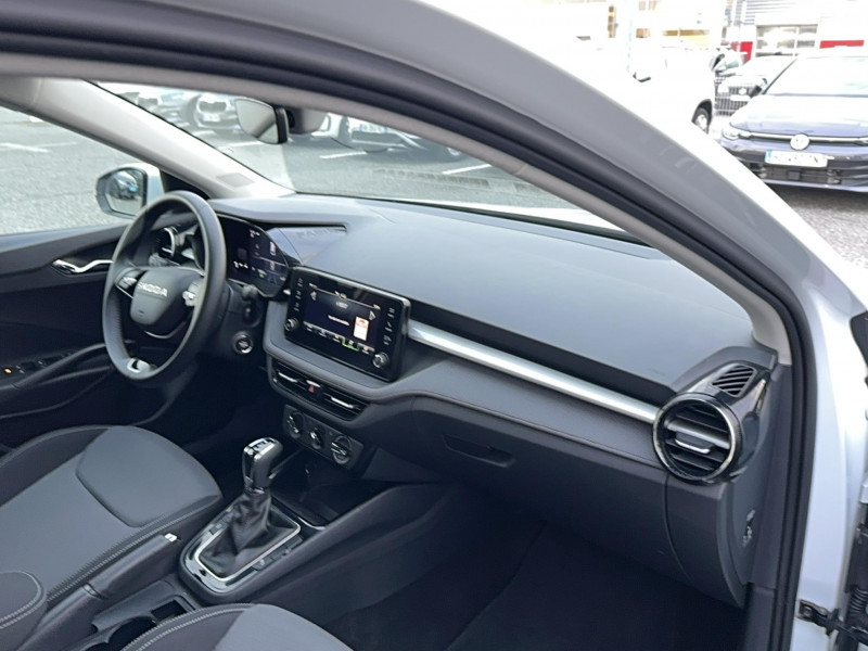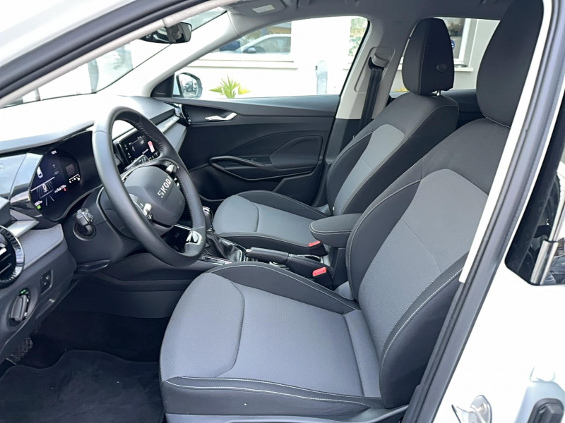 Allumage automatique des feux de détresse en cas d'accident / Eclairage des plaques d'immatriculation à LED / Jantes alliage 15'' ROTARE argent (185/65 R15) / Phares AV à LED (feux de route, feux de croisement et feux de jour) / 2 lampes de lecture AV et 2 AR / 2 ports USB-C à l'AV (avec Apple Connectivity) / 3 poignées de maintien intégrées au pavillon / 3ème appuie-tête AR à la place centrale / 4 HP AV + 2 HP AR : SKODA Surround / Accoudoir central AV avec surpiqûres, portes gobelets / Appuie-têtes AV réglables en hauteur (non réglables avec la sellerie sport) / Assistance 24 /24 H pendant 7 ans / Augmentation du réservoir à 50 l / Aumônières au dos des sièges AV et pochettes téléphone au dos des sièges AV / Boîte à gants inférieure côté passager fermée / Boîtier de rangement sous le volant / Caméra multifonction (inclus dans le pare-brise) / Care Connect 3 ans / Ceintures de sécurité 3 points AV/AR, réglables en hauteur à l'AV / Ciel de toit gris / Compartiment de rangement dans le coffre à gauche / Contour de calandre chromé / Crochets dans le coffre / Digital Display 8" / Direction assistée électromécanique / E-Call+ / Ecran d'info-divertissement 8,25'' bluetooth, 6 HP, AM/FM, Smartlink incluant Android Auto, Carplay - sans fil pour Apple / Ecrous antivol / ESC (correcteur électronique de trajectoire) incluant ABS, MSR, ASR, EDS, HBA, XDS+, MKB / Essuie-glace pour lunette AR incluant lave-glace avec fonctionnement intermitent / Feux AV antibrouillard avec fonction corner light, éclairage des angles dans les virages / Fixations ISOFIX pour siège enfant aux places AR extérieures et sur le siège passager AV / Freins à disques AR / Gratte-givre avec contrôle de l'usure des pneumatiques (trappe à carburant) / Klaxon mono-ton / Lane Assist (assistant de maintien dans la voie) / Lumière dans le coffre / Miroir de courtoisie dans les pare-soleil conducteur et passager AV / Pare-chocs AV/AR couleur carrosserie / Poignées de portes et coques de rétroviseurs couleur carrosserie / Porte-ticket dans le pare-soleil côté conducteur / Porte-ticket sur pare-brise / Prise 12 V type allume-cigare dans la console centrale / Radio numérique DAB (Digital Audio Broadcasting) / Rangement de parapluie dans la portière conducteur (parapluie inclus) / Rangement porte-lunettes / Réflecteurs sur pare-chocs AR / Réglage lombaire manuel des sièges AV / Rétroviseur intérieur électrochromatique / Rétroviseurs extérieurs électrochromatiques côté conducteur / Signal acoustique et visuel d'oubli de ceinture de sécurité / Signal sonore d'oubli d'extinction des feux / Tapis de sol AV/AR