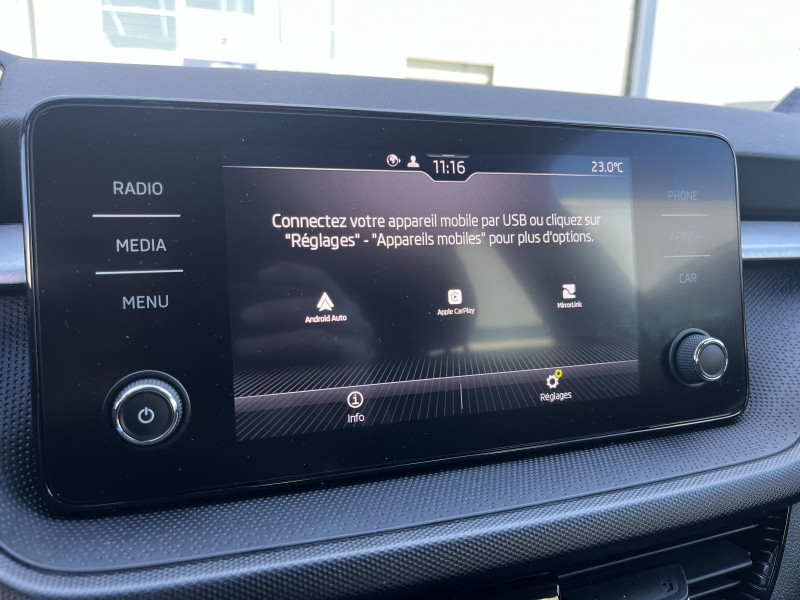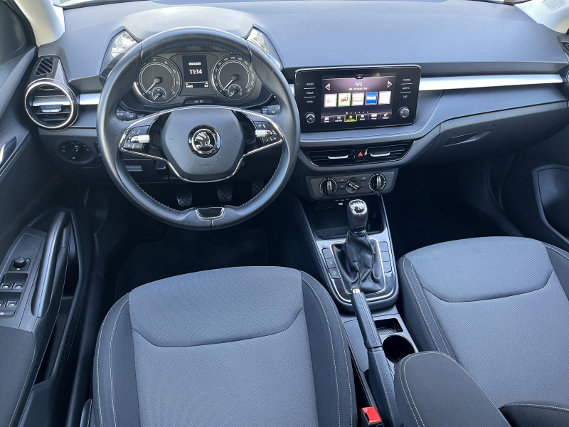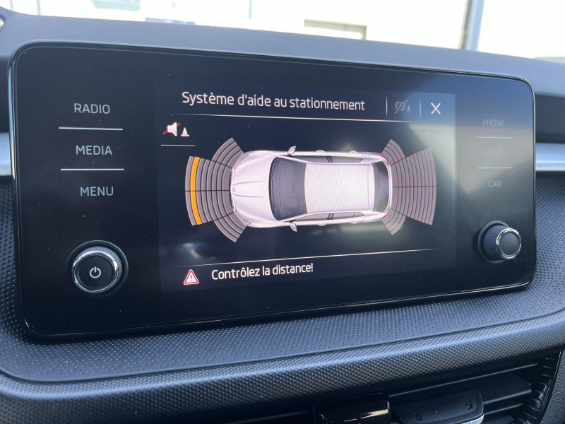 4 jantes alliage 15'' ROTARE argent (185/65 R15) / Allumage automatique des feux de détresse en cas d'accident / Eclairage des plaques d'immatriculation à LED / Petit Pack Cuir (volant + frein à main + levier de vitesse) / Phares AV à LED (feux de jour, de position, de croisement et de route) / Volant 2 branches en cuir avec molettes multifonctions chromées / 2 ports USB-C à l'AV (avec Apple Connectivity), lecteur de carte SD, MP3, WMA / 3ème appuie-tête AR à la place centrale / 4 HP AV + 2 HP AR : SKODA Surround / 4 poignées de maintien intégrées au pavillon (2 avec crochet à cintre) / Accoudoir central AV avec surpiqures, portes gobelets, double USB AV et buses de ventilation AR. / Airbag latéraux (dans les sièges AV) / Airbags frontaux conducteur et passager AV (dont passager déconnectable) / Assistance 24 /24 H pendant 7 ans / Aumônières au dos des sièges AV avec emplacement pour smartphone / Avertisseur 1 ton / Boîte à gants inférieure côté passager fermée / Boîtier de rangement sous le volant / Cache moteur / Cache-bagages à enrouleur dans le coffre / Care Connect 1 an + services pro actifs 10 ans / Ceintures de sécurité AV à 3 points réglables en hauteur / Compartiment de rangement dans le coffre à gauche / Contour de buses de ventilation chromés / Contour de calandre chromé / Crochets dans le coffre / Direction assistée électromécanique / E-Call+ / Ecrous antivol / ESC (correcteur électronique de trajectoire) incluant ABS, MSR, ASR, EDS, HBA, XDS+, MKB / Filtre à pollen / Freins à disques AV / Gratte-givre avec contrôle de l'usure des pneumatiques (trappe à carburant) / Insert décoratif gris brossé / grain satin noir / Lane Assist (assistant de maintien dans la voie) / Lumière dans le compartiment à bagages (x1) / Lumière de lecture / Pare-chocs couleur carrosserie / Poignées de portes et coques de rétroviseurs couleur carrosserie / Porte-ticket dans le pare-soleil côté conducteur / Porte-ticket sur côté gauche du pare-brise / Prise 12 V - allume-cigare dans la console centrale / Préparation pour fixation de sièges enfants (suivant norme ISOFIX) aux places AR extérieures / Radio Bolero 8'' (Bluetooth, Smartlink, 6 haut-parleurs, AM/FM) / Radio numérique DAB (Digital Audio Broadcasting) / Rangement de parapluie dans la portière conducteur (parapluie inclus) / Rangement porte-lunettes / Réflecteurs sur pare-chocs AR / Réglage manuel du site des phares au tableau de bord / Seuils de portes / Signal sonore d'oubli d'extinction des feux / Signaux lumineux et sonore d'oubli de ceinture de sécurité AV/AR / Système de sécurité ISOFIX pour le siège passager AV / Tapis de sol AV/AR / Témoin de perte de pression des pneumatiques / Vitres AV électriques avec fonction auto up/down
