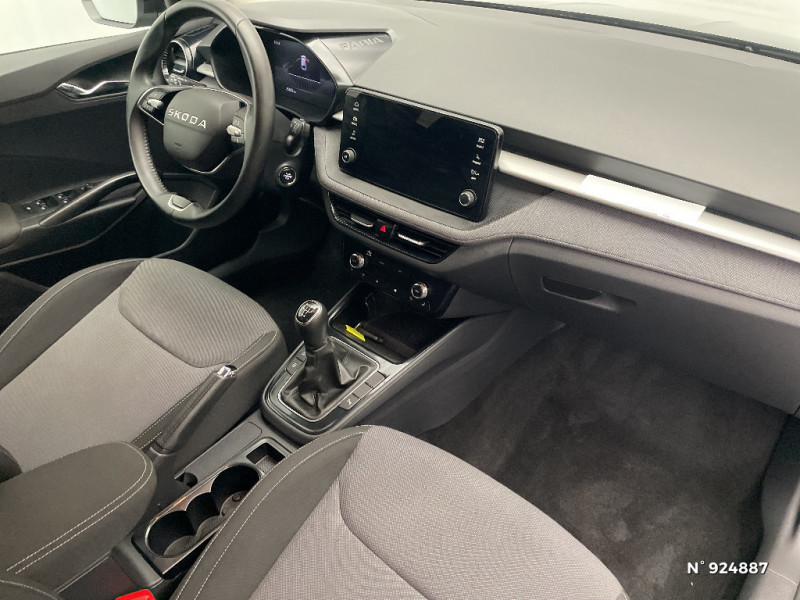 4 HP AV + 2 HP AR : SKODA Surround / 3ème appuie-tête AR à la place centrale / Gratte-givre avec contrôle de l'usure des pneumatiques (trappe à carburant) / Private eCall / Peinture unie / Appuie-têtes AV réglables en hauteur (non réglables avec la sellerie sport) / Boîte de vitesse manuelle à 5 vitesses / Contrôle de la traction (TCS) / Smartlink sans fil incluant Android Auto et Carplay / Petit pack cuir (volant, pommeau de levier de vitesses et manchette de frein à main) / SKODA Connect : accès à certaines donées du vehicule à distance 3 ans (Care connect) / Détecteur de fatigue intégrant une caméra de surveillance de l'état de fatigue du conducteur / Contour de calandre chromé / Direction assistée électromécanique / Réglage lombaire manuel des sièges AV / Poignées de portes et coques de rétroviseurs couleur carrosserie / Allumage automatique des feux de détresse en cas d'accident / ESC (correcteur électronique de trajectoire) incluant ABS, MSR, ASR, EDS, HBA, XDS+, MKB / Aumônières au dos des sièges AV et pochettes téléphone au dos des sièges AV / Ceintures de sécurité 3 points AV/AR, réglables en hauteur à l'AV / Lumière dans le coffre / Phares AV à LED (feux de route, feux de croisement et feux de jour) / Porte-ticket sur pare-brise / Prise 12 V type allume-cigare dans la console centrale / Rétroviseurs extérieurs électrochromatiques côté conducteur / 2 ports USB-C à l'AV (avec Apple Connectivity) / Fixations ISOFIX pour siège enfant aux places AR extérieures et sur le siège passager AV / Digital Display 8" / Jantes alliage 15'' ROTARE argent (185/65 R15) / Accoudoir central AV avec surpiqûres, portes gobelets / Augmentation du réservoir à 50 l / 3 poignées de maintien intégrées au pavillon / Essuie-glace pour lunette AR incluant lave-glace avec fonctionnement intermitent / Ecran d'info-divertissement 8,25'' bluetooth, 6 HP, AM/FM, Smartlink incluant Android Auto, Carplay - sans fil pour Apple / Caméra multifonction (inclus dans le pare-brise) / 2 lampes de lecture AV et 2 AR / Feux AV antibrouillard avec fonction corner light, éclairage des angles dans les virages / Design intérieur Loft : sellerie tissu "Kota Grey uni" avec surpiqures "Art Grey" et insert décoratif gris métallique / Ciel de toit gris / Réflecteurs sur pare-chocs AR / Eclairage des plaques d'immatriculation à LED / Klaxon mono-ton / Radio numérique DAB (Digital Audio Broadcasting) / Crochets dans le coffre / Lane Assist (assistant de maintien dans la voie) / Boîtier de rangement sous le volant / Rangement de parapluie dans la portière conducteur (parapluie inclus) / Compartiment de rangement dans le coffre à gauche / Boîte à gants inférieure côté passager fermée / Porte-ticket dans le pare-soleil côté conducteur / Miroir de courtoisie dans les pare-soleil conducteur et passager AV / Ecrous antivol / Tapis de sol AV/AR / Rétroviseur intérieur électrochromatique / Signal sonore d'oubli d'extinction des feux / Rangement porte-lunettes / Signal acoustique et visuel d'oubli de ceinture de sécurité / Garantie 2 ans / kilométrage illimité / Pare-chocs AV/AR couleur carrosserie / Freins à disques AR / Assistance 24 /24 H pendant 7 ans