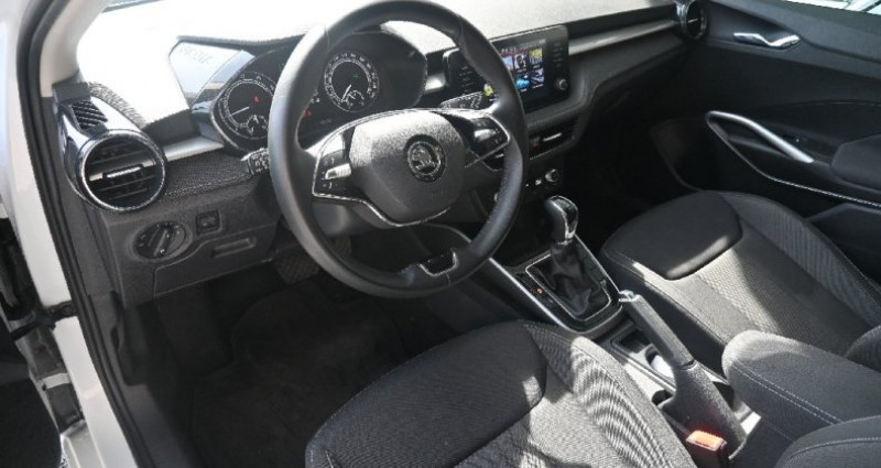 Cylindrée : 999 cm3 Nb. Vitesse : 7 - 2 ports USB-C à l'AV (avec Apple Connectivity) - 3ème appuie-tête AR à la place centrale - 4 HP AV 2 HP AR : SKODA Surround - 4 poignées de maintien intégrées au pavillon (2 avec crochet à cintre) - Accoudoir central AV avec surpiqûres, portes gobelets - Aide au démarrage en côte - Airbags frontaux (conducteur, passager AV déconnectable) - Airbags latéraux AV - Airbags rideaux AV/AR - Allumage automatique des feux de détresse en cas d'accident - Allumage automatique des phares - Appuie-têtes AV réglables en hauteur - Assistance 24 h/24 pendant 7 ans - Augmentation du réservoir à 50 l - Aumônières au dos des sièges AV et pochettes téléphone au dos des sièges AV - Avertisseur sonore 1 ton - Boîte à gants inférieure côté passager fermée - Boîtier de rangement sous le volant - Care Connect 3 ans - Ceintures de sécurité 3 points AV/AR, réglables en hauteur à l'AV - Climatisation manuelle - Compartiment de rangement dans le coffre à gauche - Contour de calandre chromé - Contrôle de la pression de pneus - Crochets dans le coffre - Détecteur de fatigue - Détecteur de pluie - Direction assistée électromécanique - Dossier de banquette AR rabattable 60:40 - E-Call - EASY START (démarrage sans clé) - Eclairage des plaques d'immatriculation à LED - Ecrous antivol - Eléments couleur chrome/argent : poignées intérieurs de portes - ESC (correcteur électronique de trajectoire) incluant ABS, MSR, ASR, EDS, HBA, XDS , MKB - Feu AR antibrouillard - Feux AR à LED - Fixations ISOFIX pour siège enfant aux places AR extérieures et sur le siège passager AV - Freins à disques AR - Front Assist : freinage automatique d'urgence - Garantie 2 ans / kilométrage illimité - Gratte-givre avec contrôle de l'usure des pneumatiques (trappe à carburant) - Insert décoratif gris / grain satin noir - Jantes alliage 15'' ROTARE argent (185/65 R15) - Lane Assist (assistant de maintien dans la voie) - Lumière dans le coffre - Lunette AR dégivrante - Miroir de courtoisie dans les pare-soleil conducteur et passager AV - Ordinateur de bord grand écran à affichage Maxi-Dot - Pare-chocs AV/AR couleur carrosserie - Pare-soleil AV conducteur et passager - Petit Pack Cuir - Phares AV à LED (feux de route, feux de croisement et feux de jour) - Phares AV antibrouillard - Poignées de portes et coques de rétroviseurs couleur carrosserie - Porte-ticket dans le pare-soleil côté conducteur - Porte-ticket sur pare-brise - Prise 12 V type allume-cigare dans la console centrale - Radars de stationnement AR - Radio Bolero 8'' (Bluetooth, 6 HP, AM/FM, Smartlink incluant Mirrorlink, Android Auto, Carplay) - Radio numérique DAB (digital audio broadcasting) - Rangement de parapluie dans la portière conducteur (parapluie inclus) - Rangement porte-lunettes - Réflecteurs sur pare-chocs AR - Régulateur Limiteur de vitesse - Rétroviseur intérieur électrochromatique - Rétroviseurs extérieurs électrochromatiques côté conducteur - Rétroviseurs extérieurs réglables, rabattables électriquement et dégivrants - Roue de secours - Sellerie Tissu ' KOTA' - Siège conducteur réglable en hauteur - Signal acoustique et visuel d'oubli de ceinture de sécurité - Signal sonore d'oubli d'extinction des feux - SKODA Connect : accès à certaines donées du vehicule à distance 3 ans (Care connect) - Système Start/Stop - Tapis de sol AV/AR - Verrouillage centralisé à distance (2 clés rétractables) - Vitres AR électriques - Vitres AV électriques - Volant 2 branches en cuir réglable en hauteur et en profondeur - Volant réglable en hauteur et en profondeur