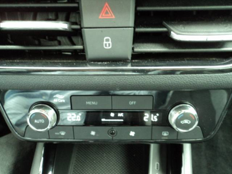 Allumage automatique des feux avec fonctions Coming Home / Leaving Home / Climatronic : climatisation automatique bi-zones + fonction Air Care / Commandes de climatisation chromées / Déblocage automatique des portes et activation des feux de détresse en cas d'accident / Eclairage de plaque AR à LED / Feux AR Full LED avec clignotants à défilement / Feux AV antibrouillard à LED avec feux de virages / Front Assist : aide au freinage d'urgence incluant détection des piétons / Insert décoratif sur la planche de bord en matériau recyclé gris Krepp recycled, liseré noir glossy et inserts de porte noir "Satin Black" / Jantes alliage 16" Cortadero Aero argent / Lane Assist : système d'aide au maintien dans la voie / Phares AV Full LED (feux de jour, feux de croisement, feux de route et clignotants à LED) / Pommeau de levier de vitesse et poignée de frein de parking en cuir / Préparation pour dispositif d'attelage / 2 prises USB-C 45W AR (recharge uniquement) / 3ème appuie-tête AR à la place centrale / Accoudoir AV Jumbobox avec surpiqûres / Airbags frontaux conducteur et passager AV (dont passager déconnectable) / Airbags latéraux AV avec airbags rideau / Antenne shark / Assistance 24h/24 pendant 2 ans / Aumônières au dos des sièges AV incluant des rangements pour téléphone / Avertisseur de ceinture de sécurité non-bouclée / Bacs de rangement dans les portes AV et AR / Blocage de l'arrivée de carburant en cas d'accident / Cache-bagages / Calandre AV chromée / Care Connect 3 ans / Ciel de toit gris perle / Console centrale avec porte-bouteille et prise 12 V / Correcteur électronique de trajectoire ESC, incl. ABS, MSR, ASR, XDS+, HBA, DSR, MKB, EBV, EDL, RBS, ESBS, TSA / Crochets dans le coffre à bagage / Diffuseur AR gris platine / Digital Display 8" : compteurs digitaux personnalisables / Disques de frein AV/AR / Eclairage du coffre à bagages / Ecran d'info-divertissement 8,25'' (8 HP, Radio AM/FM, DAB, 2 ports USB-C 45W à AV) / Essuie-glace AV aéro à intermittence,avec capteur de lumière / Fixations ISOFIX sur banquette AR incluant 2 Top-Tether / Garantie 2 ans / kilométrage illimité / Gratte-givre intégré dans la trappe à carburant / Inserts de porte noir Satin Black / Kessy Go : système démarrage sans clé / Klaxon mono-ton / Lampes de lecture supplémentaires pour conducteur et passager / Parapluie intégré dans la portière conducteur / Pare-chocs AV avec sabot gris platine / Pare-chocs couleur carrosserie / Pare-soleil AV conducteur et passager avec mirroir de courtoisie / Planche de bord en plastique moussé / Poignées de porte couleur carrosserie / Poignées de portes intérieures chromées / Poignées intérieures de maintien à l'AV et à l'AR avec crochet à l'AR / Porte bouteilles (0,5L) dans les portières AR / Porte bouteilles (1,5L) dans les portières AV / Porte gilet de sécurité / Porte lunettes intégré au plafonnier / Porte-ticket sur côté gauche du pare-brise / Radio numérique DAB (Digital Audio Broadcasting) / Rampes de pavillon noires / Rangement dans le coffre derrière les passages de roues / Réglage lombaire manuel des sièges AV / Réglage manuel du site des phares / Rétroviseur intérieur électrochromatique / Rétroviseurs extérieurs couleur carrosserie / Services Proactifs incluant e-call / Smartlink sans fil (compatible Android AutoTM, Carplay) / Tapis de sol textile / Vitres latérales et AR athermiques