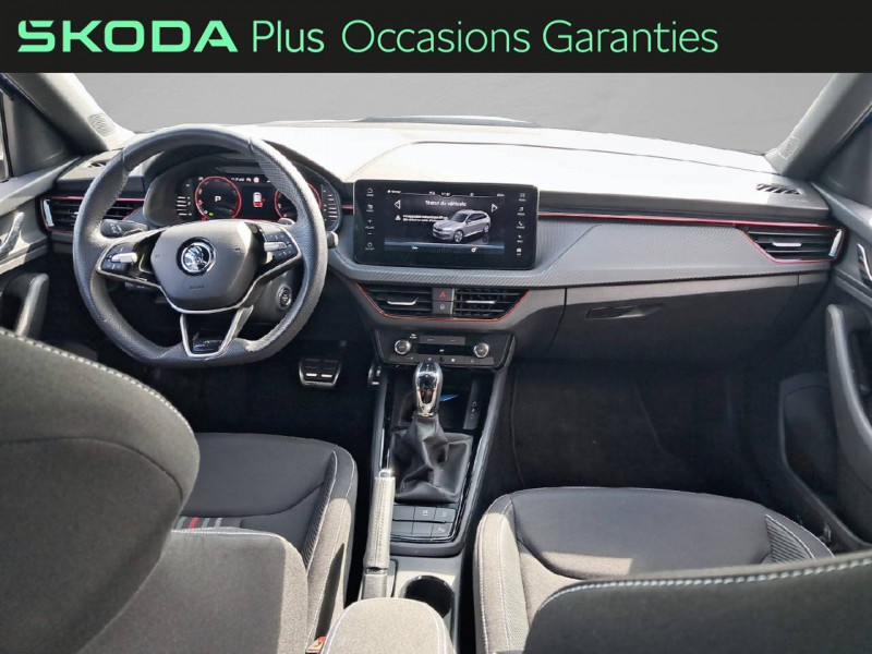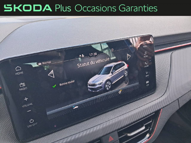 Allumage automatique des feux avec fonctions Coming Home / Leaving Home / Climatronic : climatisation automatique bi-zones + fonction Air Care / Commandes de climatisation chromées / Déblocage automatique des portes et activation des feux de détresse en cas d'accident / Eclairage d'ambiance LED 2 couleurs (blanc ou rouge) / Eclairage de plaque AR à LED / Ecran d'info-divertissement 9,2'' avec système de navigation (8 HP, Radio AM/FM,DAB,Web radio, 2 ports USB-C 45W AV) / Feux AR Full LED avec clignotants à défilement / Feux AV antibrouillard à LED avec feux de virages / Front Assist : aide au freinage d'urgence incluant détection des piétons / Jantes alliage 17" Kajam Aero noires / Lane Assist : système d'aide au maintien dans la voie / Pack Assis. de conduite Plus en combinaison avec PackTechnologie Plus ou Pack Hiver Plus Technologie Travel Assist: assistant de maintien au centre de la voie, Régulateur de vitesse adaptatif ACC (jusqu'à 210km/h) + limiteur de vitesse, Side Assist: détecteurs d'angle mort / Pack Assistance de conduite Plus Travel Assist: assistant de maintien au centre de la voie, Régulateur de vitesse adaptatif ACC (jusqu'à 210km/h) + limiteur de vitesse, Side Assist: détecteurs d'angle mort / Pack Assistance de conduite Travel Assist: assistant de maintien au centre de la voie, Régulateur de vitesse adaptatif ACC (jusqu'à 210km/h) + limiteur de vitesse / Pack Confort Caméra de recul, Kessy Full : ouverture et démarrage sans clé, Driving Mode Selct : sélection du mode de conduite, Radars de stationnement AV/AR / Pack Navigation Ecran d'info-divertissement 9,2'' avec système de navigation (AM/FM, DAB, Web radio), Commande Vocale, Digital Cockpit 10,25 / Pack Panoramique Toit vitré panoramique fixe avec store électrique, Rampes de pavillon noir glossy, Ciel de toit noir, Vitres et lunette AR surteintées / Pack Technologie 2 prises USB-C à l'AR (recharge uniquement), Accoundoir central à l'AV, 8 HP, Smartlink sans fil, Augmentation puissance délivrée des 2 prises USB-C à l´AV à 45 W / Pack Visibilité Plus en combinaison avec Pack Technologie Plus ou Pack Hiver Technologie Plus Phares AV Full Matrix LED incluant clignotants à défilement, avec système d'éclairage auto-adaptatif AFS / Pack Visibilité Plus Phares AV Full Matrix LED incluant clignotants à défilement, avec système d'éclairage auto-adaptatif AFS / Phares AV Full Matrix LED incluant clignotants à défilement, système d'éclairage auto-adaptatif AFS / Pommeau de levier de vitesse et poignée de frein de parking en cuir / Préparation pour dispositif d'attelage / Pédalier look aluminium / Volant 3 branches sport en cuir avec palettes multifonctions / 3ème appuie-tête AR à la place centrale / ACC: régulateur de vitesse adaptatif (actif jusqu'à 210 km/h) incluant limiteur de vitesse / Accoudoir AV Jumbobox avec surpiqûres / Airbags frontaux conducteur et passager AV (dont passager déconnectable) / Airbags latéraux AV avec airbags rideau / Assistance 24h/24 pendant 2 ans / Aumônières au dos des sièges AV incluant des rangements pour téléphone / Avertisseur de ceinture de sécurité non-bouclée / Bacs de rangement dans les portes AV et AR / Blocage de l'arrivée de carburant en cas d'accident / Cache-bagages / Calandre AV noire / Care Connect 3 ans / Care connect ans + Infotainment Online 3 ans / Console centrale avec porte-bouteille et prise 12 V / Correcteur électronique de trajectoire ESC, incl. ABS, MSR, ASR, XDS+, HBA, DSR, MKB, EBV, EDL, RBS, ESBS, TSA / Crochets dans le coffre à bagage / Diffuseur AR noir glossy spécifique à Monte Carlo / Disques de frein AV/AR / Eclairage du coffre à bagages / Essuie-glace AV aéro à intermittence,avec capteur de lumière / Fixations ISOFIX sur banquette AR incluant 2 Top-Tether / Garantie 2 ans / kilométrage illimité / Gratte-givre intégré dans la trappe à carburant / Infotainment Online 3 ans / Insert de bas de caisse noir glossy spécifique à Monte Carlo / Insert décoratif sur la planche de bord effet Carbone avec liseré rouge et inserts de porte matériau synthétique effet carbone / Klaxon mono-ton / Lampes de lecture supplémentaires pour conducteur et passager / Lane Assist + (Travel Assist) : maintien du véhicule au centre de la voie / Lettrage noir à l'AR du véhicule / Parapluie intégré dans la portière conducteur / Pare-chocs AV avec sabot noir glossy spécifique à Monte Carlo / Pare-chocs couleur carrosserie / Pare-soleil AV conducteur et passager avec mirroir de courtoisie / Planche de bord en plastique moussé / Poignées de porte couleur carrosserie / Poignées de portes intérieures chromées / Poignées intérieures de maintien à l'AV et à l'AR avec crochet à l'AR / Porte bouteilles (0,5L) dans les portières AR / Porte bouteilles (1,5L) dans les portières AV / Porte gilet de sécurité / Porte-ticket sur côté gauche du pare-brise / Radio numérique DAB (Digital Audio Broadcasting) / Rangement dans le coffre derrière les passages de roues / Réglage lombaire manuel des sièges AV / Rétroviseur intérieur électrochromatique / Rétroviseurs noir glossy spécifique à Monte Carlo / Services Proactifs incluant e-call / Seuils de portes KAMIQ AV / Tapis de sol textile / Vitres lattérales et AR athermiques