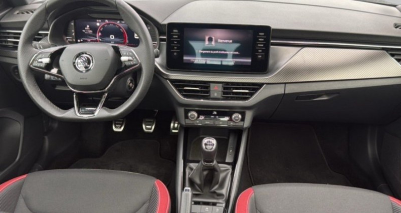 Cylindrée : 999 cm3 Nb. Vitesse : 6 - Aide au démarrage en côte - Allumage automatique des feux avec fonctions Coming Home / Leaving Home - Climatronic : climatisation automatique bi-zones + fonction Air Care - Commandes de climatisation chromées - Déblocage automatique des portes et activation des feux de détresse en cas d'accident - Eclairage d'ambiance à LED - Blanc - Eclairage de plaque AR à LED - Feux AR antibrouillard à LED - Feux AR Full LED avec clignotants à défilement - Front Assist : aide au freinage d'urgence incluant détection des piétons - Jantes alliage 17 Propus Aero noires polies - Lane Assist : système d'aide au maintien dans la voie - Lane Assist Plus Aide au maintien au centre de la voie, Traffic Jam Assist : s'arrête automatiquement et redémarre et respecte la distance avec les autres véhicules en embouteillage - Pack Assistance de conduite Plus Travel Assist: assistant de maintien au centre de la voie, Régulateur de vitesse adaptatif ACC (jusqu'à 210km/h) + limiteur de vitesse, Side Assist: détecteurs d'angle mort - Pack Assistance de conduite Travel Assist: assistant de maintien au centre de la voie, Régulateur de vitesse adaptatif ACC (jusqu'à 210km/h) + limiteur de vitesse - Pack Confort Caméra de recul, Kessy Ful: ouverture et démarrage sans clé, Driving Mode Selct: sélection du mode de conduite, Radars de stationnement AV/AR - Pack Navigation Navigation Amundsen 9,2'', Commande Vocale, Smartlink sans fil, Digital Cockpit - Pack Panoramique Toit vitré panoramique fixe avec store électrique, Rampes de pavillon noir laqué, Ciel de toit noir, Vitres et lunette AR surteintées - Pack Technologie 2 prises USB-C à l'AR (recharge uniquement), Accoundoir central à l'AV, 8 HP, Smartlink sans fil, Augmentation puissance délivrée des 2 prises USB-C à l´AV à 45 W - Pack Visibilité Plus Projecteurs AV Full LED incluant feux antibrouillard et système d'éclairage autoadaptatif AFS - Pommeau de levier de vitesse et poignée de frein de parking en cuir - Préparation pour dispositif d'attelage - Pédalier en aluminium - Rappels de clignotants à LED intégrés dans les rétroviseurs extérieurs - Réglage automatique du site des phares - Toit vitré panoramique fixe avec store électrique - Volant sport 3 branches en cuir - Accoudoir AV Jumbobox avec surpiqûres - Accoudoir central AR - Airbags frontaux conducteur et passager AV (dont passager déconnectable) - Airbags latéraux AV - Airbags rideaux - Appel d'urgence - Ecall - Appuie-têtes AR (3) - Assistance 24 h/24 pendant 7 ans - Aumônières au dos des sièges passagers AV - Avertisseur de ceinture de sécurité non-bouclée - Bacs de rangement dans les portes AV et AR - Banquette AR rabattable 2/3-1/3 - Blocage de l'arrivée de carburant en cas d'accident - Boîte à gants éclairée - Cache-bagages - Calandre AV noire - Care Connect 3 ans - Care connect 3 ans + Infotainment Online 3 ans - Ceintures AV et AR 3 points avec prétentionneurs - Ceintures AV réglables en hauteur - Commande vocale + assistant Laura pour Amundsen - Console centrale avec porte-bouteille et prise 12 V - Correcteur électronique de trajectoire ESC, incl. ABS, MSR, ASR, XDS+, HBA, DSR, MKB, EBV, EDL, RBS, ESBS, TSA - Crochets dans le coffre à bagage - Diffuseur AR noir laqué - Digital Cockpit compteurs digitaux personnalisables - Direction assistée électrique - Disques de frein AV/AR - Détecteur de fatigue - Détecteur de pluie - Eclairage du coffre à bagages - Essuie-glace AR - Essuie-glace AV type aéro avec contrôle d'intermittence - Fixation ISOFIX sur siège passager AV incluant Top-Tether - Fixations ISOFIX sur banquette AR incluant 2 Top-Tether - Frein de parking mécanique - Garantie 2 ans / kilométrage illimité - Gratte-givre intégré dans la trappe à carburant - Infotainment Online 3 ans - Insert de bas de caisse noir laqué - Inserts décoratifs sur planche de bord look Carbone avec liseré chromé et insert décoratif de bas de console centrale Noir Piano - Kit carrosserie spécifique : sabots AV et AR noir laqué, grille de calandre noire, coques de rétroviseurs noires - Klaxon mono-ton - Lampes de lecture supplémentaires pour conducteur et passager - Lettrage noir à l'AR du véhicule - Lumière de courtoisie AV/AR - Lunette AR dégivrante - Parapluie intégré dans la portière conducteur - Pare-chocs AV avec sabot noir - Pare-chocs couleur carrosserie - Pare-soleil AV conducteur et passager avec miroirs de courtoisie - Personnalisation 2.0 - Planche de bord en plastique moussé - Poignées de porte couleur carrosserie - Poignées de portes intérieures chromées - Poignées intérieures de maintien à l'AV et à l'AR avec crochet à l'AR - Porte bouteilles (0,5L) dans les portières AR - Porte bouteilles (1,5L) dans les portières AV - Porte gilet de sécurité - Porte-ticket sur côté gauche du pare-brise - Radio numérique DAB (Digital Audio Broadcasting) - Rampes de pavillon noire laqué - Rangement dans le coffre derrière les passages de roues - Roue de secours temporaire - Réglage lombaire manuel des sièges AV - Régulateur et limiteur de vitesse - Rétroviseur intérieur électrochromatique - Rétroviseurs extérieurs noirs - Rétroviseurs extérieurs rabattables électriquement et électrochromatique côté conducteur - Rétroviseurs extérieurs électriques et chauffants - Services Proactifs incluant e-call - Seuils de portes KAMIQ à l'AV - Siège conducteur réglable en hauteur - Siège passager réglable en hauteur - Sièges Sport - Smartlink avec et sans fil (compatible Android AutoTM et Carplay®) - Système de contrôle de pression des pneus - Système Start/Stop - Tapis de sol textile - Verrouillage centralisé incluant 2 clés pliantes - Vitres AR et lunette AR surteintées - Vitres AR électriques avec système à impulsion - Vitres AV électriques avec système à impulsion - Vitres teintées - Volant multifonctions - Volant réglable en hauteur et en profondeu