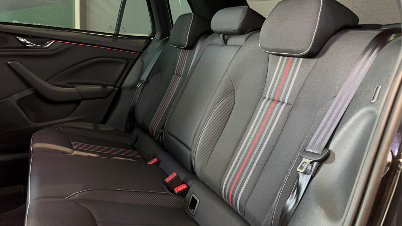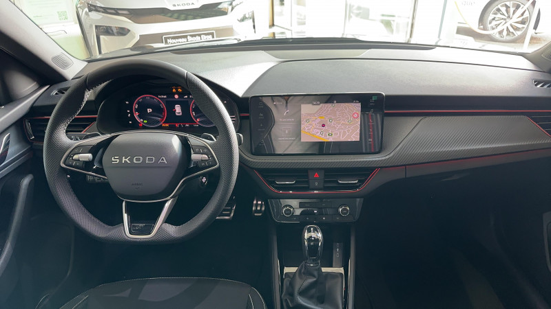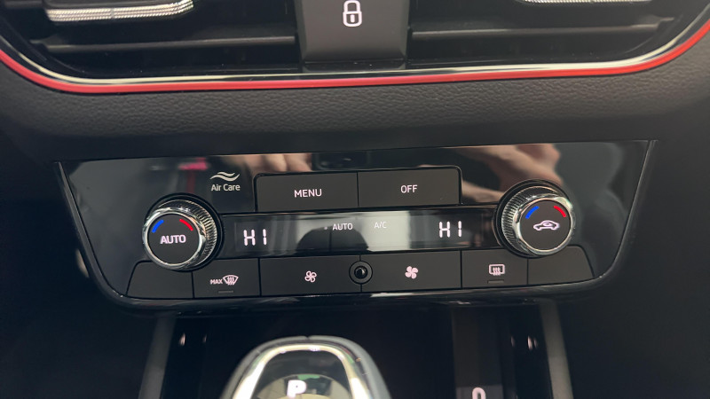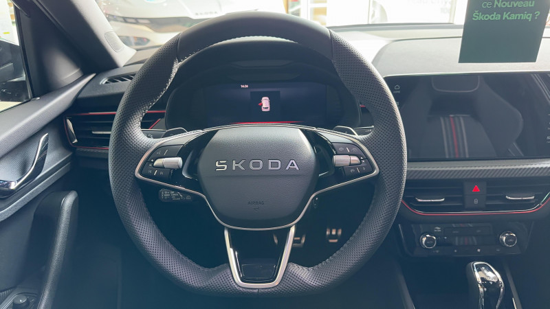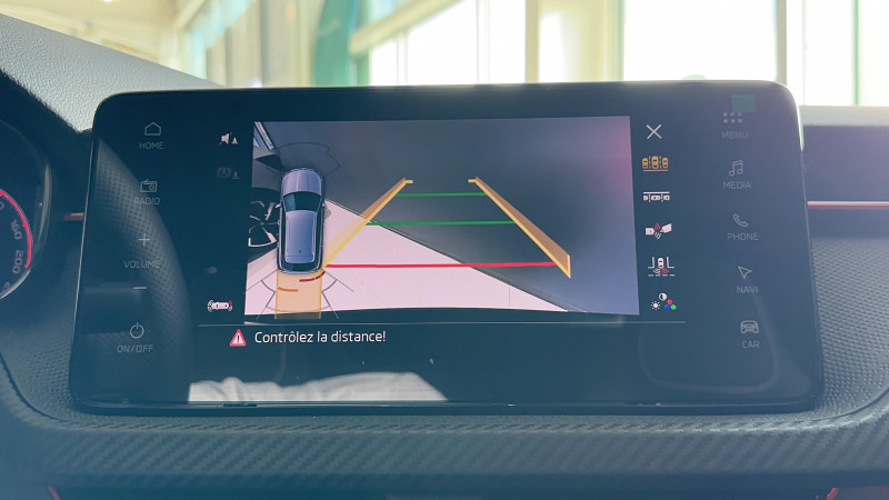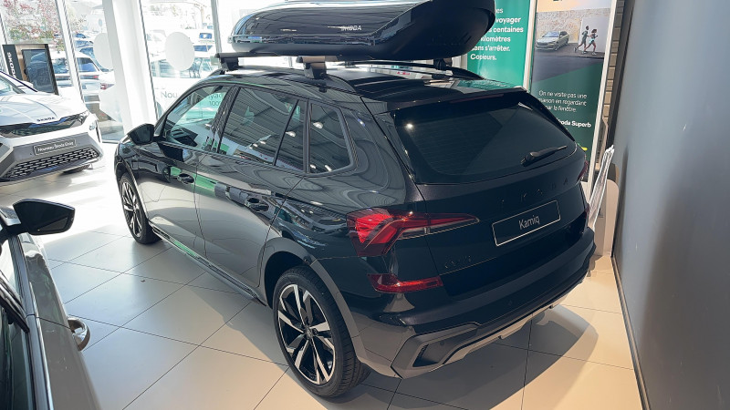 Allumage automatique des feux avec fonctions Coming Home / Leaving Home / Climatronic : climatisation automatique bi-zones + fonction Air Care / Commandes de climatisation chromées / Déblocage automatique des portes et activation des feux de détresse en cas d'accident / Eclairage d'ambiance LED 2 couleurs (blanc ou rouge) / Eclairage de plaque AR à LED / Ecran d'info-divertissement 9,2'' avec système de navigation (8 HP, Radio AM/FM,DAB,Web radio, 2 ports USB-C 45W AV) / Feux AR Full LED avec clignotants à défilement / Feux AV antibrouillard à LED avec feux de virages / Front Assist: aide au freinage d'urgence incluant détection des piétons / Jantes alliage 17" Kajam Aero noires / Lane Assist : système d'aide au maintien dans la voie / Phares AV Full Matrix LED incluant clignotants à défilement, système d'éclairage auto-adaptatif AFS / Pommeau de levier de vitesse et poignée de frein de parking en cuir / Préparation pour dispositif d'attelage / Pédalier look aluminium / Volant 3 branches sport en cuir avec palettes multifonctions / 3ème appuie-tête AR à la place centrale / ACC: régulateur de vitesse adaptatif (actif jusqu'à 210 km/h) incluant limiteur de vitesse / Accoudoir AV Jumbobox avec surpiqûres / Airbags frontaux conducteur et passager AV (dont passager déconnectable) / Airbags latéraux AV avec airbags rideau / Assistance 24h/24 pendant 2 ans / Aumônières au dos des sièges AV incluant des rangements pour téléphone / Avertisseur de ceinture de sécurité non-bouclée / Bacs de rangement dans les portes AV et AR / Blocage de l'arrivée de carburant en cas d'accident / Cache-bagages / Calandre AV noire / Care connect + Infotainment Online 3 ans / Care Connect 3 ans / Console centrale avec porte-bouteille et prise 12 V / Correcteur électronique de trajectoire ESC, incl. ABS, MSR, ASR, XDS+, HBA, DSR, MKB, EBV, EDL, RBS, ESBS, TSA / Crochets dans le coffre à bagage / Diffuseur AR noir glossy spécifique à Monte Carlo / Disques de frein AV/AR / Eclairage du coffre à bagages / Essuie-glace AV aéro à intermittence,avec capteur de lumière / Fixations ISOFIX sur banquette AR incluant 2 Top-Tether / Gratte-givre intégré dans la trappe à carburant / Infotainment Online 3 ans / Insert de bas de caisse noir glossy spécifique à Monte Carlo / Insert décoratif sur la planche de bord effet Carbone avec liseré rouge et inserts de porte matériau synthétique effet carbone / Klaxon mono-ton / Lampes de lecture supplémentaires pour conducteur et passager / Lane Assist + (Travel Assist) : maintien du véhicule au centre de la voie / Lettrage noir à l'AR du véhicule / Parapluie intégré dans la portière conducteur / Pare-chocs AV avec sabot noir glossy spécifique à Monte Carlo / Pare-chocs couleur carrosserie / Pare-soleil AV conducteur et passager avec mirroir de courtoisie / Planche de bord en plastique moussé / Poignées de porte couleur carrosserie / Poignées de portes intérieures chromées / Poignées intérieures de maintien à l'AV et à l'AR avec crochet à l'AR / Porte bouteilles (0,5L) dans les portières AR / Porte bouteilles (1,5L) dans les portières AV / Porte gilet de sécurité / Porte-ticket sur côté gauche du pare-brise / Radio numérique DAB (Digital Audio Broadcasting) / Rangement dans le coffre derrière les passages de roues / Réglage lombaire manuel des sièges AV / Rétroviseur intérieur électrochromatique / Rétroviseurs noir glossy spécifique à Monte Carlo / Services Proactifs incluant e-call / Seuils de portes KAMIQ AV / Tapis de sol textile / Vitres lattérales et AR athermiques