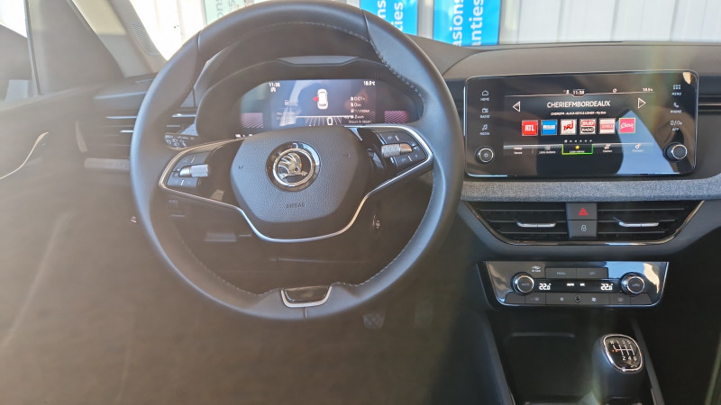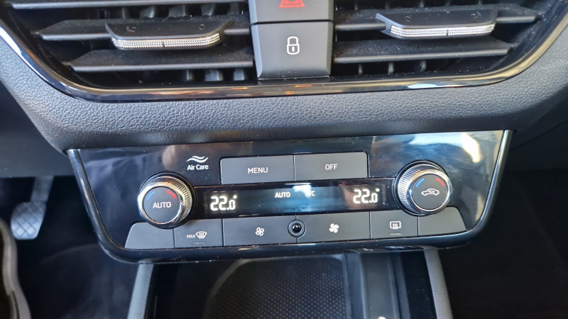 Allumage automatique des feux avec fonctions Coming Home / Leaving Home / Climatronic : climatisation automatique bi-zones + fonction Air Care / Commandes de climatisation chromées / Déblocage automatique des portes et activation des feux de détresse en cas d'accident / Eclairage de plaque AR à LED / Feux AR Full LED avec clignotants à défilement / Feux AV antibrouillard à LED avec feux de virages / Front Assist: aide au freinage d'urgence incluant détection des piétons / Insert décoratif sur la planche de bord en matériau recyclé gris Krepp recycled, liseré noir glossy et inserts de porte noir "Satin Black" / Jantes alliage 16" Cortadero Aero argent / Lane Assist : système d'aide au maintien dans la voie / Phares AV Full LED (feux de jour, feux de croisement, feux de route et clignotants à LED) / Pommeau de levier de vitesse et poignée de frein de parking en cuir / Préparation pour dispositif d'attelage / 2 prises USB-C 45W AR (recharge uniquement) / 3ème appuie-tête AR à la place centrale / Accoudoir AV Jumbobox avec surpiqûres / Airbags frontaux conducteur et passager AV (dont passager déconnectable) / Airbags latéraux AV avec airbags rideau / Antenne shark / Assistance 24h/24 pendant 2 ans / Aumônières au dos des sièges AV incluant des rangements pour téléphone / Avertisseur de ceinture de sécurité non-bouclée / Bacs de rangement dans les portes AV et AR / Blocage de l'arrivée de carburant en cas d'accident / Cache-bagages / Calandre AV chromée / Care Connect 3 ans / Ciel de toit gris perle / Console centrale avec porte-bouteille et prise 12 V / Correcteur électronique de trajectoire ESC, incl. ABS, MSR, ASR, XDS+, HBA, DSR, MKB, EBV, EDL, RBS, ESBS, TSA / Crochets dans le coffre à bagage / Diffuseur AR gris platine / Digital Display 8": compteurs digitaux personnalisables / Disques de frein AV/AR / Eclairage du coffre à bagages / Ecran d'info-divertissement 8,25'' (8 HP, Radio AM/FM, DAB, 2 ports USB-C 45W à AV) / Essuie-glace AV aéro à intermittence,avec capteur de lumière / Fixations ISOFIX sur banquette AR incluant 2 Top-Tether / Gratte-givre intégré dans la trappe à carburant / Inserts de porte noir Satin Black / Kessy Go : système démarrage sans clé / Klaxon mono-ton / Lampes de lecture supplémentaires pour conducteur et passager / Parapluie intégré dans la portière conducteur / Pare-chocs AV avec sabot gris platine / Pare-chocs couleur carrosserie / Pare-soleil AV conducteur et passager avec mirroir de courtoisie / Planche de bord en plastique moussé / Poignées de porte couleur carrosserie / Poignées de portes intérieures chromées / Poignées intérieures de maintien à l'AV et à l'AR avec crochet à l'AR / Porte bouteilles (0,5L) dans les portières AR / Porte bouteilles (1,5L) dans les portières AV / Porte gilet de sécurité / Porte lunettes intégré au plafonnier / Porte-ticket sur côté gauche du pare-brise / Radio numérique DAB (Digital Audio Broadcasting) / Rampes de pavillon noires / Rangement dans le coffre derrière les passages de roues / Réglage lombaire manuel des sièges AV / Réglage manuel du site des phares / Rétroviseur intérieur électrochromatique / Rétroviseurs extérieurs couleur carrosserie / Services Proactifs incluant e-call / Smartlink sans fil (compatible Android AutoTM, Carplay) / Tapis de sol textile / Vitres lattérales et AR athermiques