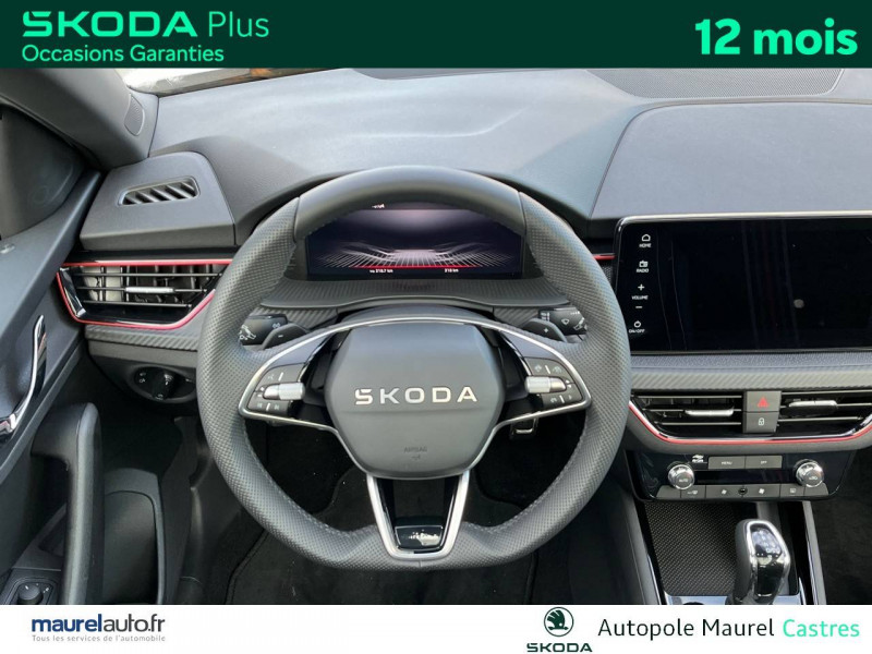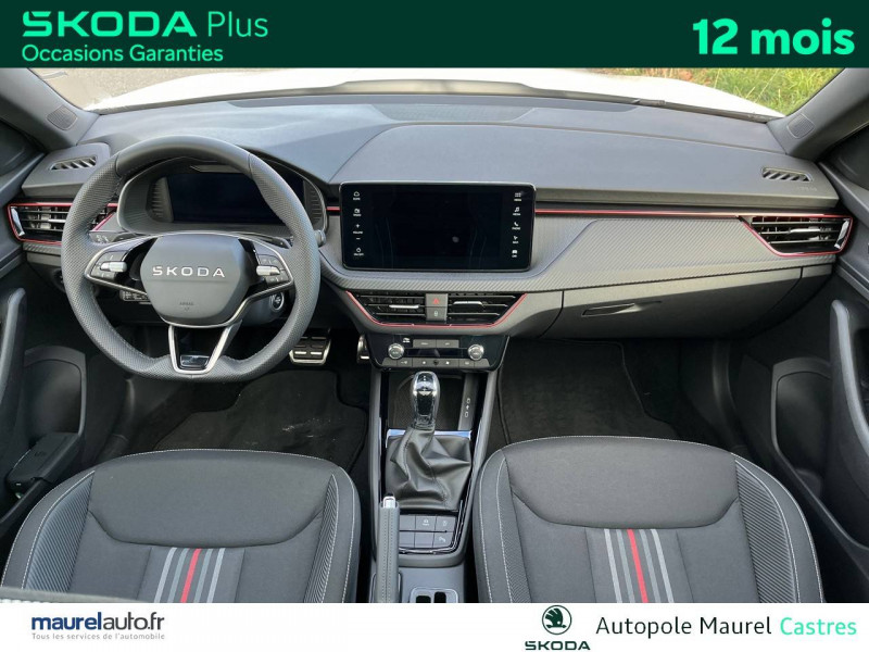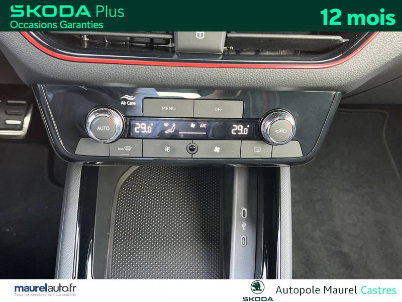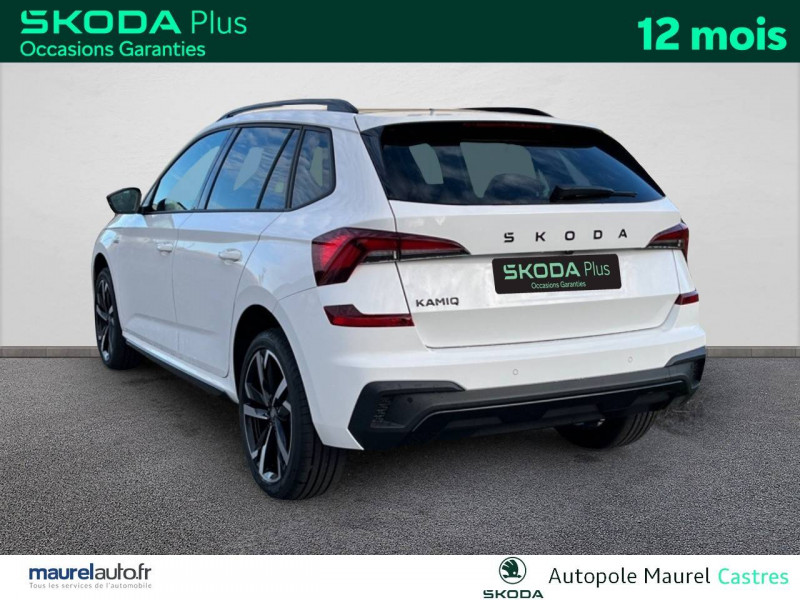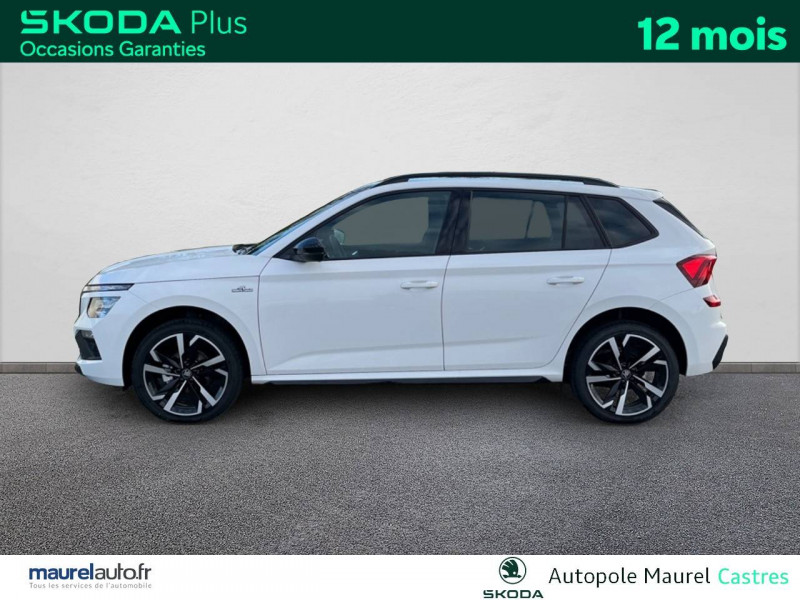 Allumage automatique des feux avec fonctions Coming Home / Leaving Home / Climatronic : climatisation automatique bi-zones + fonction Air Care / Commandes de climatisation chromées / Déblocage automatique des portes et activation des feux de détresse en cas d'accident / Eclairage d'ambiance LED 2 couleurs (blanc ou rouge) / Eclairage de plaque AR à LED / Feux AR Full LED avec clignotants à défilement / Feux AV antibrouillard à LED avec feux de virages / Front Assist : aide au freinage d'urgence incluant détection des piétons / Jantes alliage 17" Kajam Aero noires 205/55 R17 / Lane Assist : système d'aide au maintien dans la voie / Pack Assis. de conduite Plus en combinaison avec PackTechnologie Plus ou Pack Hiver Plus Technologie Travel Assist: assistant de maintien au centre de la voie, Régulateur de vitesse adaptatif ACC (jusqu'à 210km/h) + limiteur de vitesse, Side Assist: détecteurs d'angle mort, Recharge par induction, Prise USB-C à côté du rétroviseur intérieur pour dashcam par exemple, Sièges AV chauffants, Buses de lave-glace chauffantes, Capteur de niveau de lave-glace, Volant cuir multifonction chauffant / Pack Assistance de conduite Plus Travel Assist: assistant de maintien au centre de la voie, Régulateur de vitesse adaptatif ACC (jusqu'à 210km/h) + limiteur de vitesse, Side Assist: détecteurs d'angle mort / Pack Assistance de conduite Travel Assist: assistant de maintien au centre de la voie, Régulateur de vitesse adaptatif ACC (jusqu'à 210km/h) + limiteur de vitesse / Pack Confort Caméra de recul, Kessy Full : ouverture et démarrage sans clé, Driving Mode Selct : sélection du mode de conduite, Radars de stationnement AV/AR / Pack Navigation Ecran d'info-divertissement 9,2'' avec système de navigation (AM/FM, DAB, Web radio), Commande Vocale, Digital Cockpit 10,25 / Pack Panoramique Toit vitré panoramique fixe avec store électrique, Rampes de pavillon noir glossy, Ciel de toit noir, Vitres et lunette AR surteintées / Pack Technologie 2 prises USB-C à l'AR (recharge uniquement), Accoundoir central à l'AV, 8 HP, Smartlink sans fil, Augmentation puissance délivrée des 2 prises USB-C à l´AV à 45 W / Pack Visibilité Plus en combinaison avec Pack Technologie Plus ou Pack Hiver Technologie Plus Phares AV Full Matrix LED incluant clignotants à défilement, avec système d'éclairage auto-adaptatif AFS, Sièges AV chauffants, Buses de lave-glace chauffantes, Capteur de niveau de lave-glace, Volant cuir multifonction chauffant, Recharge par induction, Prise USB-C à côté du rétroviseur intérieur pour dashcam par exemple / Pack Visibilité Plus Phares AV Full Matrix LED incluant clignotants à défilement, avec système d'éclairage auto-adaptatif AFS / Phares AV Full Matrix LED incluant clignotants à défilement, système d'éclairage auto-adaptatif AFS / Pommeau de levier de vitesse et poignée de frein de parking en cuir / Préparation pour dispositif d'attelage / Pédalier look aluminium / Volant 3 branches sport en cuir avec palettes multifonctions / 3ème appuie-tête AR à la place centrale / ACC: régulateur de vitesse adaptatif (actif jusqu'à 210 km/h) incluant limiteur de vitesse / Accoudoir AV Jumbobox avec surpiqûres / Airbags frontaux conducteur et passager AV (dont passager déconnectable) / Airbags latéraux AV avec airbags rideau / Assistance 24h/24 pendant 2 ans / Aumônières au dos des sièges AV incluant des rangements pour téléphone / Avertisseur de ceinture de sécurité non-bouclée / Bacs de rangement dans les portes AV et AR / Blocage de l'arrivée de carburant en cas d'accident / Cache-bagages / Calandre AV noire / Care Connect 3 ans / Care connect 3 ans + Infotainment Online 3 ans / Commande vocale + assistant "Laura" / Console centrale avec porte-bouteille et prise 12 V / Correcteur électronique de trajectoire ESC, incl. ABS, MSR, ASR, XDS+, HBA, DSR, MKB, EBV, EDL, RBS, ESBS, TSA / Crochets dans le coffre à bagage / Diffuseur AR noir glossy spécifique à Monte Carlo / Disques de frein AV/AR / Eclairage du coffre à bagages / Essuie-glace AV aéro à intermittence,avec capteur de lumière / Fixations ISOFIX sur banquette AR incluant 2 Top-Tether / Garantie 2 ans / kilométrage illimité / Gratte-givre intégré dans la trappe à carburant / Infotainment Online 3 ans / Insert de bas de caisse noir glossy spécifique à Monte Carlo / Insert décoratif sur la planche de bord effet Carbone avec liseré rouge et inserts de porte matériau synthétique effet carbone / Klaxon mono-ton / Lampes de lecture supplémentaires pour conducteur et passager / Lettrage noir à l'AR du véhicule / Look intérieur sportif / Parapluie intégré dans la portière conducteur / Pare-chocs AV avec sabot noir glossy spécifique à Monte Carlo / Pare-chocs couleur carrosserie / Pare-soleil AV conducteur et passager avec mirroir de courtoisie / Planche de bord en plastique moussé / Poignées de porte couleur carrosserie / Poignées de portes intérieures chromées / Poignées intérieures de maintien à l'AV et à l'AR avec crochet à l'AR / Porte bouteilles (0,5L) dans les portières AR / Porte bouteilles (1,5L) dans les portières AV / Porte gilet de sécurité / Porte-ticket sur côté gauche du pare-brise / Radio numérique DAB (Digital Audio Broadcasting) / Rampes de pavillon noires Glossy / Rangement dans le coffre derrière les passages de roues / Réglage lombaire manuel des sièges AV / Rétroviseur intérieur électrochromatique / Rétroviseurs noir glossy spécifique à Monte Carlo / Services Proactifs incluant e-call / Seuils de portes KAMIQ AV / Tapis de sol textile / Vitres latérales et AR athermiques