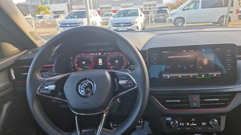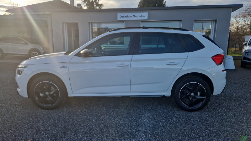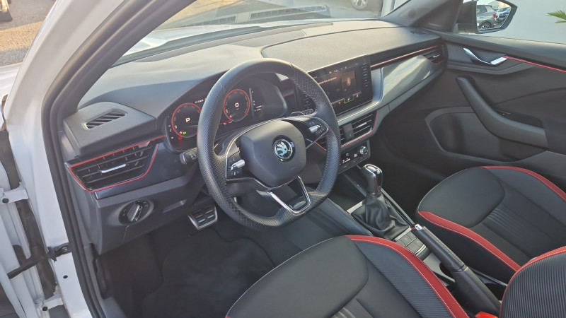 Allumage automatique des feux avec fonctions Coming Home / Leaving Home / Climatronic : climatisation automatique bi-zones + fonction Air Care / Commandes de climatisation chromées / Déblocage automatique des portes et activation des feux de détresse en cas d'accident / Eclairage d'ambiance à LED - Blanc / Eclairage de plaque AR à LED / Feux AR Full LED avec clignotants à défilement / Front Assist: aide au freinage d'urgence incluant détection des piétons / Jantes alliage 17" Propus Aero noires polies / Lane Assist : système d'aide au maintien dans la voie / Pommeau de levier de vitesse et poignée de frein de parking en cuir / Projecteurs AR Full LED avec clignotants à défilement / Projecteurs AV Full LED incluant feux antibrouillard et système d'éclairage autoadaptatif AFS / Préparation pour dispositif d'attelage / Pédalier en aluminium / Smartlink avec et sans fil (compatible Apple Car Play, Androïd Auto & MirrorLink) / Système de navigation Amundsen avec écran couleur tactile 9,2" et Web Radio incluant Digital Cockpit / Toit vitré panoramique fixe avec store électrique incluant rampes de pavillon noir laqué et ciel de toit noir / Volant sport 3 branches en cuir avec palettes / Airbags frontaux conducteur et passager AV (dont passager déconnectable) / Assistance 24 /24 H pendant 7 ans / Aumônières au dos des sièges passagers AV / Avertisseur de ceinture de sécurité non-bouclée / Bacs de rangement dans les portes AV et AR / Blocage de l'arrivée de carburant en cas d'accident / Cache-bagages / Calandre AV noire / Care Connect 1 an / Ciel de toit noir / Commande vocale + assistant "Laura" pour Amundsen / Console centrale avec porte-bouteille et prise 12 V / Correcteur électronique de trajectoire ESC, incl. ABS, MSR, ASR, XDS+, HBA, DSR, MKB, EBV, EDL, RBS, ESBS, TSA / Crochets dans le coffre à bagage / Diffuseur AR noir laqué / Digital Cockpit compteurs digitaux personnalisables / Disques de frein AV/AR / Driving Mode Select : sélection des profils de conduite / Eclairage du coffre à bagages / Entourage de vitres chromé / Essuie-glace AV type "aéro" avec contrôle d'intermittence / Fixations ISOFIX sur banquette AR incluant 2 Top-Tether / Garantie 2 ans / kilométrage illimité / Gratte-givre intégré dans la trappe à carburant / Infotainment Online 1 an / Insert de bas de caisse noir laqué / Inserts décoratifs sur planche de bord look Carbone avec liseré chromé et insert décoratif de bas de console centrale Noir Piano / Kessy Full : système d'ouverture et de démarrage sans clé / Kit carrosserie spécifique : sabots AV et AR noir laqué, grille de calandre noire, coques de rétroviseurs noires / Klaxon mono-ton / Lampes de lecture supplémentaires pour conducteur et passager / Lettrage noir à l'AR du véhicule / Parapluie intégré dans la portière conducteur / Pare-chocs AV avec sabot noir / Pare-chocs couleur carrosserie / Pare-soleil AV conducteur et passager avec miroirs de courtoisie / Personnalisation 2.0 / Planche de bord en plastique moussé / Poignées de porte couleur carrosserie / Poignées de portes intérieures chromées / Poignées intérieures de maintien à l'AV et à l'AR avec crochet à l'AR / Porte bouteilles (0,5L) dans les portières AR / Porte bouteilles (1,5L) dans les portières AV / Porte gilet de sécurité / Porte-ticket sur côté gauche du pare-brise / Radio numérique DAB (Digital Audio Broadcasting) / Rangement dans le coffre derrière les passages de roues / Réglage lombaire manuel des sièges AV / Rétroviseur intérieur électrochromatique / Services Proactifs incluant e-call / Seuils de portes KAMIQ à l'AV / Système téléphone mobile Bluetooth / Tapis de sol textile