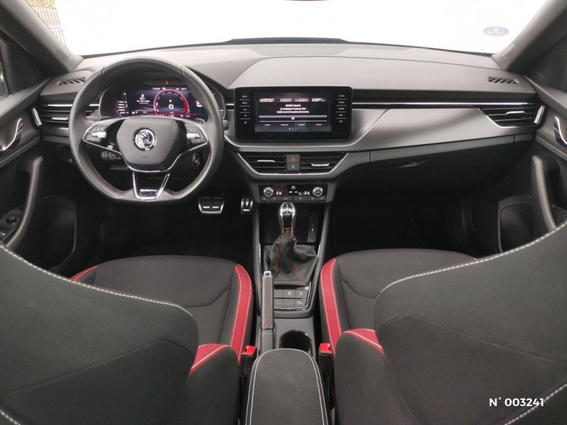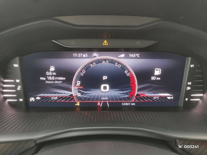 Allumage automatique des feux avec fonctions Coming Home / Leaving Home / Airbags frontaux conducteur et passager AV (dont passager déconnectable) / Klaxon mono-ton / Lampes de lecture supplémentaires pour conducteur et passager / Correcteur électronique de trajectoire ESC, incl. ABS, MSR, ASR, XDS+, HBA, DSR, MKB, EBV, EDL, RBS, ESBS, TSA / Déblocage automatique des portes et activation des feux de détresse en cas d'accident / Commandes de climatisation chromées / Console centrale avec porte-bouteille et prise 12 V / Cache-bagages / Care Connect 1 an / Calandre AV noire / Avertisseur de ceinture de sécurité non-bouclée / Bacs de rangement dans les portes AV et AR / Blocage de l'arrivée de carburant en cas d'accident / Assistance 24 /24 H pendant 7 ans / Aumônières au dos des sièges passagers AV / Infotainment Online 1 an / Gratte-givre intégré dans la trappe à carburant / Front Assist: aide au freinage d'urgence incluant détection des piétons / Garantie 2 ans / kilométrage illimité / Insert de bas de caisse noir laqué / Essuie-glace AV type "aéro" avec contrôle d'intermittence / Fixations ISOFIX sur banquette AR incluant 2 Top-Tether / Eclairage du coffre à bagages / Eclairage de plaque AR à LED / Driving Mode Select : sélection des profils de conduite / Eclairage d'ambiance à LED - Blanc / Digital Cockpit 10" compteurs digitaux personnalisables / Disques de frein AV/AR / Diffuseur AR noir laqué / Crochets dans le coffre à bagage / Projecteurs AV Full LED incluant feux antibrouillard avec système d'éclairage auto-adaptatif AFS / Radio numérique DAB (Digital Audio Broadcasting) / Rangement dans le coffre derrière les passages de roues / Rampes de pavillon noire laqué / Rétroviseur intérieur électrochromatique / Préparation pour dispositif d'attelage / Porte bouteilles (1,5L) dans les portières AV / Porte bouteilles (0,5L) dans les portières AR / Porte gilet de sécurité / Porte-ticket sur côté gauche du pare-brise / Poignées de porte couleur carrosserie / Poignées intérieures de maintien à l'AV et à l'AR avec crochet à l'AR / Pommeau de levier de vitesse et poignée de frein de parking en cuir / Poignées de portes intérieures chromées / Personnalisation 2.0 / Pédalier en aluminium / Peinture opaque Bleu Energie / Pare-soleil AV conducteur et passager avec miroirs de courtoisie / Pare-chocs couleur carrosserie / Pare-chocs AV avec sabot noir / Planche de bord en plastique moussé / Lettrage noir à l'AR du véhicule / Lane Assist : système d'aide au maintien dans la voie / Parapluie intégré dans la portière conducteur / Inserts décoratifs sur planche de bord look Carbone avec liseré chromé et insert décoratif de bas de console centrale Noir Piano / Jantes alliage 17" Volans noires cerclées de chrome / Kessy Full : système d'ouverture et de démarrage sans clé / Kit carrosserie spécifique : sabots AV et AR noir laqué, inserts de bas de caisse noir laqué, grille de calandre noire, coques de rétroviseurs noires / Système de navigation Amundsen avec écran couleur tactile 9,2" et Web Radio incluant Digital Cockpit / Système téléphone mobile Bluetooth / Services Proactifs incluant e-call / Système de navigation Amundsen avec écran couleur tactile 9,2" incluant Digital Cockpit avec Pack Travel Assist / Tapis de sol textile AV, AR / Volant sport 3 branches en cuir avec palettes / Toit vitré panoramique fixe avec store électrique incluant rampes de pavillon noir laqué / Smartlink + avec fil (compatible Apple Car Play, Androïd Auto & MirrorLink) et sans fil avec la navigation / Seuils de portes KAMIQ à l'AV / Tapis de sol AV/AR / Rappels de clignotants à LED intégrés dans les rétroviseurs extérieurs / Réglage lombaire manuel des sièges AV / Sellerie tissu/simili-cuir carbone Monte-Carlo