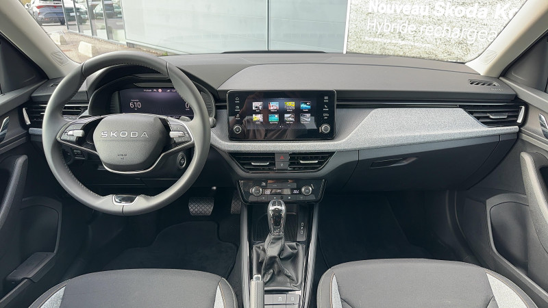 Allumage automatique des feux avec fonctions Coming Home / Leaving Home / Climatronic : climatisation automatique bi-zones + fonction Air Care / Commandes de climatisation chromées / Déblocage automatique des portes et activation des feux de détresse en cas d'accident / Eclairage de plaque AR à LED / Feux AR Full LED avec clignotants à défilement / Feux AV antibrouillard à LED avec feux de virages / Front Assist : aide au freinage d'urgence incluant détection des piétons / Insert décoratif sur la planche de bord en matériau recyclé gris Krepp recycled, liseré noir glossy et inserts de porte noir "Satin Black" / Jantes alliage 17" Stratos 205/55 R17 / Lane Assist : système d'aide au maintien dans la voie / Pack Chrome Vitres et lunette AR surteintées, Baguettes de vitre chromées, Rampes de pavillon argent / Pack Confort Plus Caméra de recul, Kessy Full: ouverture et démarrage sans clé, Driving Mode Selct: sélection du mode de conduite, Radars de stationnement AV/AR, Hayon de coffre électrique, Digital Cockpit / Pack Simply Clever Plus Bac de rangement sur le tunnel AR, Cargo Elément: élement qui se scratch dans le coffre pour maintenir des éléments type sac lors du transport, Jeu de filets de rangement dans le coffre, Protection des arêtes de portes, Poubelle amovible, Support de tablette au dos du siège AV, Prise 12V dans le coffre, Tapis de coffre réversible, Rangement sous les sièges AV / Pack Technologie 2 prises USB-C à l'AR (recharge uniquement), Accoundoir central à l'AV, 8 HP, Smartlink sans fil, Augmentation puissance délivrée des 2 prises USB-C à l´AV à 45 W / Phares AV Full LED (feux de jour, feux de croisement, feux de route et clignotants à LED) / Pommeau de levier de vitesse et poignée de frein de parking en cuir / Préparation pour dispositif d'attelage / Volant 2 branches en cuir avec palettes multifonctions / 3ème appuie-tête AR à la place centrale / Accoudoir AV Jumbobox avec surpiqûres / Airbags frontaux conducteur et passager AV (dont passager déconnectable) / Airbags latéraux AV avec airbags rideau / Antenne shark / Assistance 24 /24 H pendant 7 ans / Aumônières au dos des sièges AV incluant des rangements pour téléphone / Avertisseur de ceinture de sécurité non-bouclée / Bacs de rangement dans les portes AV et AR / Blocage de l'arrivée de carburant en cas d'accident / Cache-bagages / Calandre AV chromée / Care Connect 3 ans / Ciel de toit gris perle / Console centrale avec porte-bouteille et prise 12 V / Correcteur électronique de trajectoire ESC, incl. ABS, MSR, ASR, XDS+, HBA, DSR, MKB, EBV, EDL, RBS, ESBS, TSA / Crochets dans le coffre à bagage / Diffuseur AR gris platine / Disques de frein AV/AR / Eclairage du coffre à bagages / Ecran d'info-divertissement 8,25'' (8 HP, Radio AM/FM, DAB, 2 ports USB-C 45W à AV) / Essuie-glace AV aéro à intermittence,avec capteur de lumière / Fixations ISOFIX sur banquette AR incluant 2 Top-Tether / Garantie 2 ans / kilométrage illimité / Gratte-givre intégré dans la trappe à carburant / Klaxon mono-ton / Lampes de lecture supplémentaires pour conducteur et passager / Parapluie intégré dans la portière conducteur / Pare-chocs AV avec sabot gris platine / Pare-chocs couleur carrosserie / Pare-soleil AV conducteur et passager avec mirroir de courtoisie / Planche de bord en plastique moussé / Poignées de porte couleur carrosserie / Poignées de portes intérieures chromées / Poignées intérieures de maintien à l'AV et à l'AR avec crochet à l'AR / Porte bouteilles (0,5L) dans les portières AR / Porte bouteilles (1,5L) dans les portières AV / Porte gilet de sécurité / Porte lunettes intégré au plafonnier / Porte-ticket sur côté gauche du pare-brise / Radio numérique DAB (Digital Audio Broadcasting) / Rangement dans le coffre derrière les passages de roues / Réglage lombaire manuel des sièges AV / Réglage manuel du site des phares / Rétroviseur intérieur électrochromatique / Rétroviseurs extérieurs couleur carrosserie / Services Proactifs incluant e-call / Tapis de sol textile / Vitres lattérales et AR athermiques