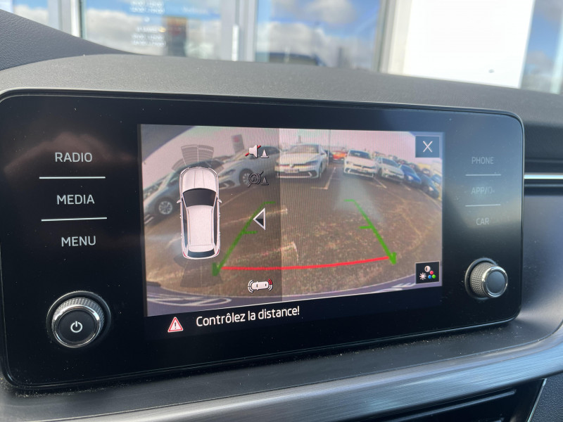 Allumage automatique des feux avec fonctions Coming Home / Leaving Home / Commandes de climatisation chromées / Déblocage automatique des portes et activation des feux de détresse en cas d'accident / Eclairage d'ambiance à LED - Copper / Eclairage de plaque AR à LED / Feux AR Full LED avec clignotants à défilement / Front Assist: aide au freinage d'urgence incluant détection des piétons / Inserts décoratifs sur planche de bord look Bois de Frêne avec liseré chromé et insert décoratif de bas de console centrale Noir Piano / Jantes alliage 17" Braga anthracites / Lane Assist : système d'aide au maintien dans la voie / Pommeau de levier de vitesse et poignée de frein de parking en cuir / Préparation pour dispositif d'attelage / Pédalier en aluminium / Smartlink + avec fil (compatible Apple Car Play, Androïd Auto & MirrorLink) et sans fil avec la navigation / Volant 2 branches en cuir / Airbags frontaux conducteur et passager AV (dont passager déconnectable) / Antenne shark / Assistance 24 /24 H pendant 7 ans / Aumônières au dos des sièges passagers AV / Avertisseur de ceinture de sécurité non-bouclée / Bacs de rangement dans les portes AV et AR / Blocage de l'arrivée de carburant en cas d'accident / Cache-bagages / Calandre AV chromée / Compteurs avec cerclage chromé / Console centrale avec porte-bouteille et prise 12 V / Correcteur électronique de trajectoire ESC, incl. ABS, MSR, ASR, XDS+, HBA, DSR, MKB, EBV, EDL, RBS, ESBS, TSA / Crochets dans le coffre à bagage / Diffuseur AR gris argent / Disques de frein AV/AR / Eclairage du coffre à bagages / Entourage des passages de roues et des bas de caisse en plastique / Essuie-glace AV type "aéro" avec contrôle d'intermittence / Fixations ISOFIX sur banquette AR incluant 2 Top-Tether / Gratte-givre intégré dans la trappe à carburant / Jonc de vitres chromé / Kit carrosserie spécifique : sabots AV et AR argent, entourage des passages de roues et des bas de caisse en plastique noir, coques de rétroviseurs argent / Klaxon mono-ton / Lampes de lecture supplémentaires pour conducteur et passager / Ordinateur de bord Maxi-Dot monochrome / Parapluie intégré dans la portière conducteur / Pare-chocs AV avec sabot gris argent / Pare-chocs couleur carrosserie / Pare-soleil AV conducteur et passager avec miroirs de courtoisie / Planche de bord en plastique moussé / Poignées de porte couleur carrosserie / Poignées de portes intérieures chromées / Poignées intérieures de maintien à l'AV et à l'AR avec crochet à l'AR / Porte bouteilles (0,5L) dans les portières AR / Porte bouteilles (1,5L) dans les portières AV / Porte gilet de sécurité / Porte lunettes intégré au plafonnier / Porte-ticket sur côté gauche du pare-brise / Projecteurs AV avec clignotants halogène / Radio Bolero glass design écran capacitif couleur tactile 8" (800 x 480), réception FM, 8 HP, 2 ports USB compatibles Apple / Radio numérique DAB (Digital Audio Broadcasting) / Rampes de pavillon argent / Rangement dans le coffre derrière les passages de roues / Réglage lombaire manuel des sièges AV / Réglage manuel du site des phares / Rétroviseur intérieur électrochromatique / Services Proactifs incluant eCall / Seuils de portes KAMIQ à l'AV / Système téléphone mobile Bluetooth / Tapis de sol AV/AR / Tapis de sol textile AV, AR