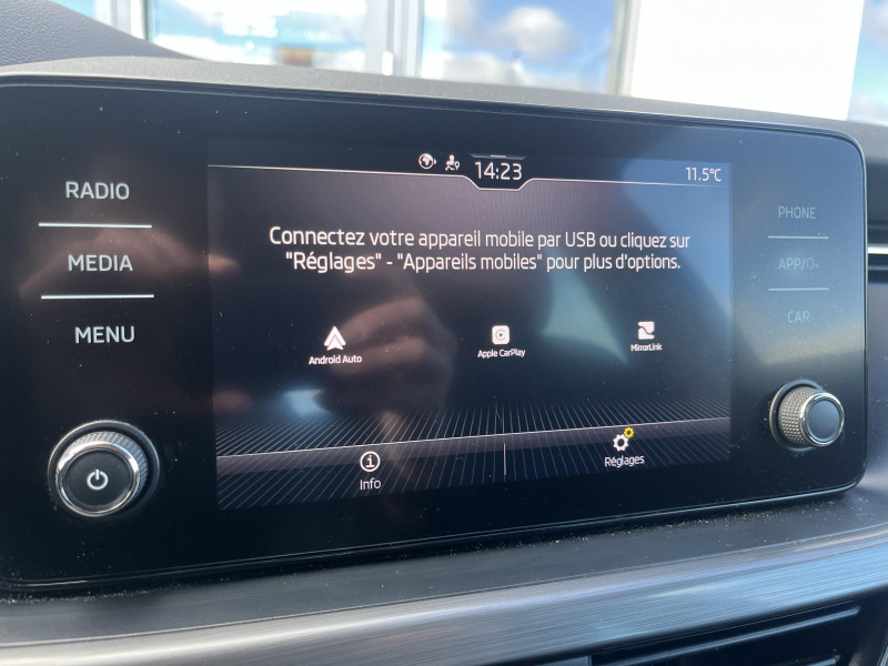 Allumage automatique des feux avec fonctions Coming Home / Leaving Home / Commandes de climatisation chromées / Déblocage automatique des portes et activation des feux de détresse en cas d'accident / Eclairage d'ambiance à LED - Copper / Eclairage de plaque AR à LED / Feux AR Full LED avec clignotants à défilement / Front Assist: aide au freinage d'urgence incluant détection des piétons / Inserts décoratifs sur planche de bord look Bois de Frêne avec liseré chromé et insert décoratif de bas de console centrale Noir Piano / Jantes alliage 17" Braga anthracites / Lane Assist : système d'aide au maintien dans la voie / Pommeau de levier de vitesse et poignée de frein de parking en cuir / Préparation pour dispositif d'attelage / Pédalier en aluminium / Smartlink + avec fil (compatible Apple Car Play, Androïd Auto & MirrorLink) et sans fil avec la navigation / Volant 2 branches en cuir / Airbags frontaux conducteur et passager AV (dont passager déconnectable) / Antenne shark / Assistance 24 /24 H pendant 7 ans / Aumônières au dos des sièges passagers AV / Avertisseur de ceinture de sécurité non-bouclée / Bacs de rangement dans les portes AV et AR / Blocage de l'arrivée de carburant en cas d'accident / Cache-bagages / Calandre AV chromée / Compteurs avec cerclage chromé / Console centrale avec porte-bouteille et prise 12 V / Correcteur électronique de trajectoire ESC, incl. ABS, MSR, ASR, XDS+, HBA, DSR, MKB, EBV, EDL, RBS, ESBS, TSA / Crochets dans le coffre à bagage / Diffuseur AR gris argent / Disques de frein AV/AR / Eclairage du coffre à bagages / Entourage des passages de roues et des bas de caisse en plastique / Essuie-glace AV type "aéro" avec contrôle d'intermittence / Fixations ISOFIX sur banquette AR incluant 2 Top-Tether / Gratte-givre intégré dans la trappe à carburant / Jonc de vitres chromé / Kit carrosserie spécifique : sabots AV et AR argent, entourage des passages de roues et des bas de caisse en plastique noir, coques de rétroviseurs argent / Klaxon mono-ton / Lampes de lecture supplémentaires pour conducteur et passager / Ordinateur de bord Maxi-Dot monochrome / Parapluie intégré dans la portière conducteur / Pare-chocs AV avec sabot gris argent / Pare-chocs couleur carrosserie / Pare-soleil AV conducteur et passager avec miroirs de courtoisie / Planche de bord en plastique moussé / Poignées de porte couleur carrosserie / Poignées de portes intérieures chromées / Poignées intérieures de maintien à l'AV et à l'AR avec crochet à l'AR / Porte bouteilles (0,5L) dans les portières AR / Porte bouteilles (1,5L) dans les portières AV / Porte gilet de sécurité / Porte lunettes intégré au plafonnier / Porte-ticket sur côté gauche du pare-brise / Projecteurs AV avec clignotants halogène / Radio Bolero glass design écran capacitif couleur tactile 8" (800 x 480), réception FM, 8 HP, 2 ports USB compatibles Apple / Radio numérique DAB (Digital Audio Broadcasting) / Rampes de pavillon argent / Rangement dans le coffre derrière les passages de roues / Réglage lombaire manuel des sièges AV / Réglage manuel du site des phares / Rétroviseur intérieur électrochromatique / Services Proactifs incluant eCall / Seuils de portes KAMIQ à l'AV / Système téléphone mobile Bluetooth / Tapis de sol AV/AR / Tapis de sol textile AV, AR
