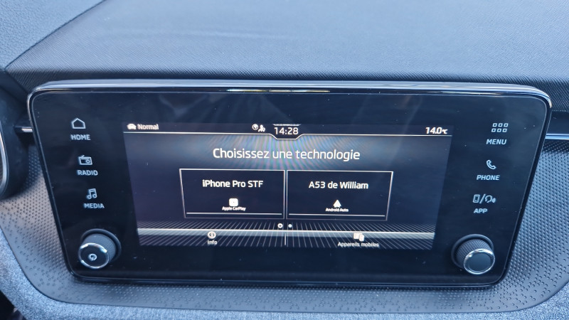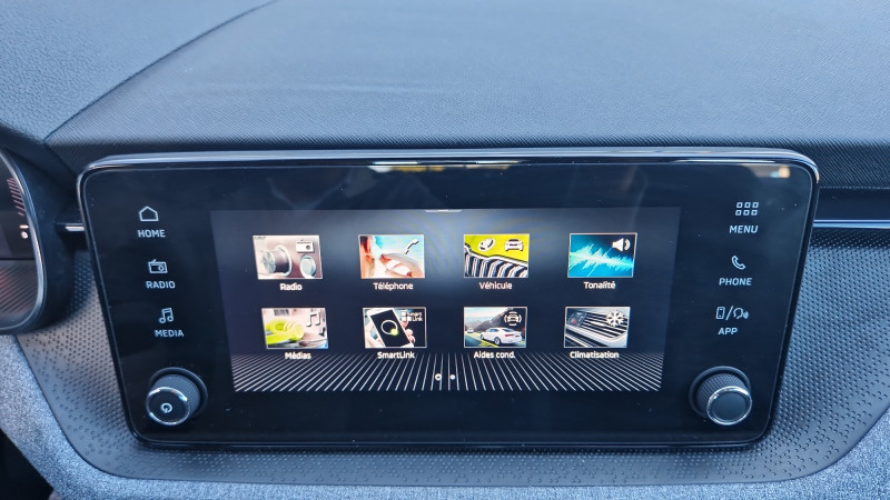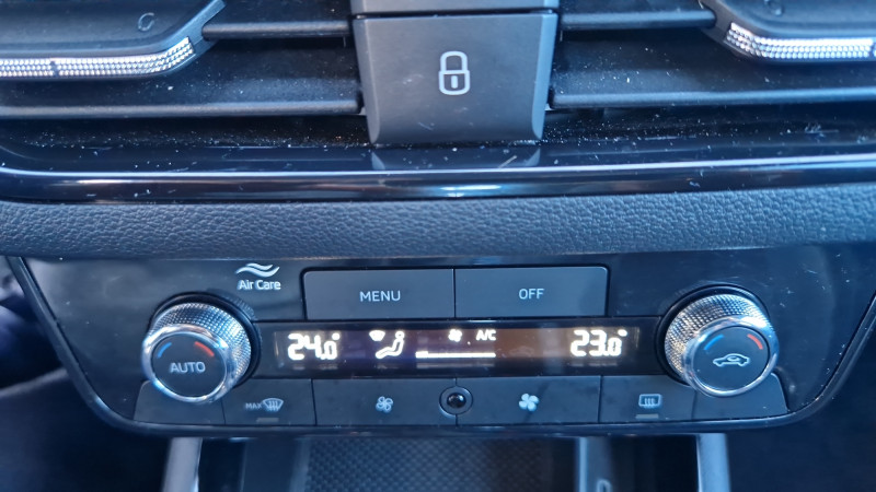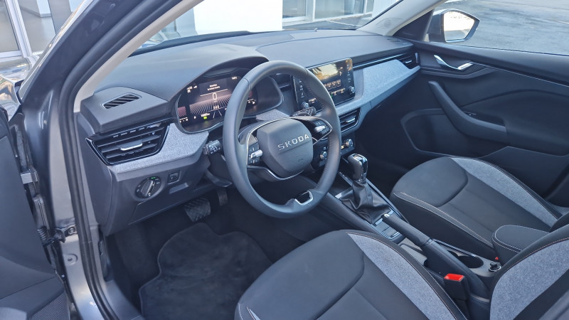 Allumage automatique des feux avec fonctions Coming Home / Leaving Home / Climatronic : climatisation automatique bi-zones + fonction Air Care / Commandes de climatisation chromées / Déblocage automatique des portes et activation des feux de détresse en cas d'accident / Eclairage de plaque AR à LED / Feux AR Full LED avec clignotants à défilement / Feux AV antibrouillard à LED avec feux de virages / Front Assist: aide au freinage d'urgence incluant détection des piétons / Insert décoratif sur la planche de bord en matériau recyclé gris Krepp recycled, liseré noir glossy et inserts de porte noir "Satin Black" / Jantes alliage 16" Cortadero Aero argent 205/60 R16 / Lane Assist : système d'aide au maintien dans la voie / Phares AV Full LED (feux de jour, feux de croisement, feux de route et clignotants à LED) / Pommeau de levier de vitesse et poignée de frein de parking en cuir / Préparation pour dispositif d'attelage / Volant 2 branches en cuir avec palettes multifonctions / 2 prises USB-C 45W AR (recharge uniquement) / 3ème appuie-tête AR à la place centrale / Accoudoir AV Jumbobox avec surpiqûres / Airbags frontaux conducteur et passager AV (dont passager déconnectable) / Airbags latéraux AV avec airbags rideau / Antenne shark / Assistance 24h/24 pendant 2 ans / Aumônières au dos des sièges AV incluant des rangements pour téléphone / Avertisseur de ceinture de sécurité non-bouclée / Bacs de rangement dans les portes AV et AR / Blocage de l'arrivée de carburant en cas d'accident / Cache-bagages / Calandre AV chromée / Care Connect 3 ans / Ciel de toit gris perle / Console centrale avec porte-bouteille et prise 12 V / Correcteur électronique de trajectoire ESC, incl. ABS, MSR, ASR, XDS+, HBA, DSR, MKB, EBV, EDL, RBS, ESBS, TSA / Crochets dans le coffre à bagage / Diffuseur AR gris platine / Digital Display 8": compteurs digitaux personnalisables / Disques de frein AV/AR / Eclairage du coffre à bagages / Ecran d'info-divertissement 8,25'' (8 HP, Radio AM/FM, DAB, 2 ports USB-C 45W à AV) / Essuie-glace AV aéro à intermittence,avec capteur de lumière / Fixations ISOFIX sur banquette AR incluant 2 Top-Tether / Gratte-givre intégré dans la trappe à carburant / Inserts de porte noir Satin Black / Kessy Go : système démarrage sans clé / Klaxon mono-ton / Lampes de lecture supplémentaires pour conducteur et passager / Parapluie intégré dans la portière conducteur / Pare-chocs AV avec sabot gris platine / Pare-chocs couleur carrosserie / Pare-soleil AV conducteur et passager avec mirroir de courtoisie / Planche de bord en plastique moussé / Poignées de porte couleur carrosserie / Poignées de portes intérieures chromées / Poignées intérieures de maintien à l'AV et à l'AR avec crochet à l'AR / Porte bouteilles (0,5L) dans les portières AR / Porte bouteilles (1,5L) dans les portières AV / Porte gilet de sécurité / Porte lunettes intégré au plafonnier / Porte-ticket sur côté gauche du pare-brise / Radio numérique DAB (Digital Audio Broadcasting) / Rampes de pavillon noires / Rangement dans le coffre derrière les passages de roues / Réglage lombaire manuel des sièges AV / Réglage manuel du site des phares / Rétroviseur intérieur électrochromatique / Rétroviseurs extérieurs couleur carrosserie / Services Proactifs incluant eCall / Smartlink sans fil (compatible Android Auto et Apple Carplay) / Tapis de sol textile / Vitres lattérales et AR athermiques