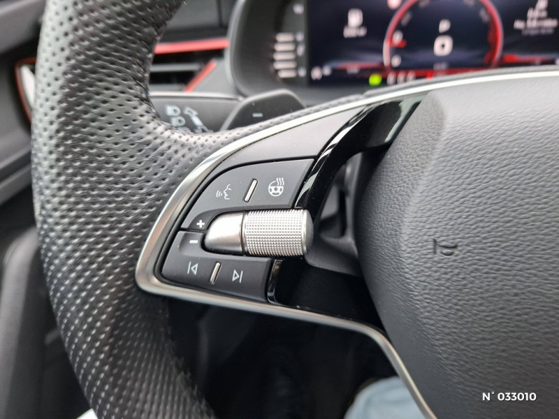 Essuie-glace AV type "aéro" avec contrôle d'intermittence / Feux AR à LED (clignotants et feux de recul halogène) / Porte bouteilles (1,5L) dans les portières AV / Porte lunettes intégré au plafonnier / Pare-chocs AV avec sabot gris platine / Réglage manuel du site des phares / Blocage de l'arrivée de carburant en cas d'accident / Disques de frein AV/AR / Commandes de climatisation chromées / Fixations ISOFIX sur banquette AR incluant 2 Top-Tether / Klaxon mono-ton / Préparation pour dispositif d'attelage / Porte bouteilles (0,5L) dans les portières AR / Antenne shark / Système de navigation Amundsen avec écran couleur tactile 9,2" et Web Radio incluant Digital Cockpit / Système téléphone mobile Bluetooth / Avertisseur de ceinture de sécurité non-bouclée / Calandre AV chromée / Rangement dans le coffre derrière les passages de roues / Sabots AV et AR Gris Platine / Commande vocale + assistant "Laura" pour Amundsen / Sellerie Tissu Ambition/Business / Sièges avant réglables en hauteur et à réglage lombaire / Pare-chocs couleur carrosserie / Crochets dans le coffre à bagage / Poignées intérieures de maintien à l'AV et à l'AR avec crochet à l'AR / Allumage automatique des feux avec fonctions Coming Home / Leaving Home / Console centrale avec porte-bouteille et prise 12 V / Care Connect 1 an / Projecteurs AV avec feux de jour, feux de position, feux de croisement et feux de route à LED (EcoLED) / Rétroviseurs couleur carrosserie / Projecteurs AV avec clignotants halogène / Jantes alliage 16" Sargas Aero argent / Rétroviseur intérieur électrochromatique / Airbags frontaux conducteur et passager AV (dont passager déconnectable) / Réglage lombaire manuel des sièges AV / Peinture opaque Bleu Energie / Lane Assist : système d'aide au maintien dans la voie / Gratte-givre intégré dans la trappe à carburant / Porte-ticket sur côté gauche du pare-brise / Eclairage de plaque AR à LED / Jantes alliage 16" Castor argent / Inserts décoratifs sur planche de bord Argent Graphique avec liseré noir et insert décoratif de bas de console centrale Noir Piano / Climatronic : climatisation automatique bi-zones + fonction Air Care / Digital Cockpit compteurs digitaux personnalisables / Smartlink avec fil (compatible Apple Car Play, Androïd Auto & MirrorLink) et sans fil / Smartlink avec et sans fil (compatible Apple Car Play, Androïd Auto & MirrorLink) / Cache-bagages / Garantie 2 ans / kilométrage illimité / Assistance 24 /24 H pendant 7 ans / Déblocage automatique des portes et activation des feux de détresse en cas d'accident / Infotainment Online 1 an / Planche de bord en plastique moussé / Radio numérique DAB (Digital Audio Broadcasting) / ACC: régulateur de vitesse adaptatif (actif jusqu'à 210 km/h) incluant limiteur de vitesse / Rampes de pavillon noires / Tapis de sol textile / Poignées de porte couleur carrosserie / Pommeau de levier de vitesse et poignée de frein de parking en cuir / Lampes de lecture supplémentaires pour conducteur et passager / Volant 2 branches en cuir / Peinture opaque / Bacs de rangement dans les portes AV et AR / Poignées de portes intérieures chromées / Pare-soleil AV conducteur et passager avec miroirs de courtoisie / Correcteur électronique de trajectoire ESC, incl. ABS, MSR, ASR, XDS+, HBA, DSR, MKB, EBV, EDL, RBS, ESBS, TSA / Front Assist: aide au freinage d'urgence incluant détection des piétons / Parapluie intégré dans la portière conducteur / Aumônières au dos des sièges passagers AV / Porte gilet de sécurité / Diffuseur AR gris platine / Eclairage du coffre à bagages / Services Proactifs incluant eCall / Personnalisation 2.0