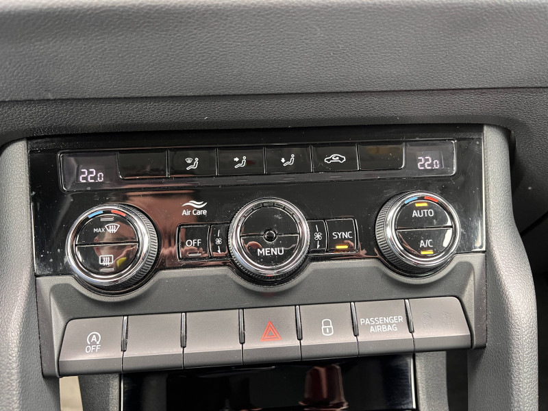 Banquette AR rabattable automatiquement depuis le coffre à bagages / Déblocage automatique des portes et activation des feux de détresse en cas d'accident / Feux AR full LED SBBR et éclairage de la plaque minéralogique à LED / HHC : Hill Hold Control (aide au démarrage en côte) / Jantes alliage 17" " RATIKON" / Pack Simply Clever / Petit Pack Cuir (volant, levier de vitesse et fourreau de frein à main) / Phares AV halogène avec feux du jour à LED / Préparation attelage / Système de navigation AMUNDSEN 8" couleur tactile avec cartographie Europe de l'Ouest. SD, USB, AUX in, Bluetooth, WLAN hotspot (Affichage 2,5D. Smartlink+ (Mirrorlink, Android Auto, Carplay, Smartgate) / 2 éclairages à l'AV, 1 central à l'AR / 3ème feu de stop intégré dans le spoiler AR / 4 HP / Accoudoir central AV avec rangement JUMBO BOX, porte-gobelets et prise 12V / Airbags frontaux conducteur et passager AV (dont passager déconnectable) / Airbags latéraux (thorax) dans les sièges AV / Assistance 24 h/24 pendant 7 ans / Aumônières au dos des sièges AV / Avertisseur de ceinture de sécurité non-bouclée / Aérateurs cerclés de chrome / Blocage de l'arrivée de carburant en cas d'accident / Commutateur de phares noir glossy / Compartiments latéraux droite et gauche derrière les passages de roues / Compartiments sur le passage de roue gauche / Couvre-coffre rigide / Direction assistée asservie à la vitesse / Eclairage du coffre à bagages (1 lampe fixe sur les côtés) / Eclairage du sol intégré aux rétroviseurs extérieurs / ESC incluant ABS+MSR+ASR+EDS+HBA+DSR+RBS+MKB ESC : correcteur électronique de trajectoire / ABS : système antiblocage des roues / EBV : Répartiteur électronique de freinage / MSR : régulateur de couple d'inertie / ASR : anti-patinage électronique / EDS : blocage électronique du différentiel / HBA : assistance hydraulique de freinage / DSR : contrebraquage assisté / MKB : freinage anti-multicollisions / Essuie-glace AR incluant des buses de lavage / Essuie-glace AV AERO à intermittence incluant des buses de lavage / Filtre à pollen / Frein à main électrique avec fonction autohold / Garantie 2 ans / kilométrage illimité / Gratte-givre dans la trappe à essence / Grille de calandre noire avec contour chromé / Hayon de coffre à ouverture et fermeture électrique + Virtual Pedal / Indicateur de température extérieure / Infotainment Online 1 an + Care Connect 1 an / Inserts décoratifs de portes gris + Inserts décoratifs tableau de bord noirs / Jeu de filets dans le coffre (1x horizontal / 2x vertical) / KESSY : système d'autorisation d'accès, de démarrage et arrêt du moteur main-libre / Kit anti-crevaison / Klaxon 2 tons / Lane Assistant : assistant de maintien dans la voie / Lumières de sécurité dans portières AV / Miroir de courtoisie éclairé dans pare-soleil AV / Ordinateur de bord Maxi-Dot couleur / Pare-chocs couleur carrosserie / Poignées de maintien AV/AR / Poignées de portes intérieures chromées / Porte-bouteilles dans les portes AV (1,5l) et AR (1l) / Prise 12 V dans le coffre / Prise 230V et Port USB / Protection contre les erreurs de carburant / Rampes de pavillon noires mat / Rangement porte-lunettes intégré au pavillon / Rangement sous le siège passager incluant un parapluie / Réflecteur de sécurité dans les portes AV et AR / Régulateur de vitesse adaptatif (actif jusqu'à 160 km/h) (incluant la fonction limiteur) / Rétroviseur intérieur électrochromatique / Rétroviseurs extérieurs et poignées de portes couleur carrosserie / Rétroviseurs extérieurs électriques dégivrants rabattables+Rappel de clignotants et éclairage du sol / Support de gilet de sécurité dans le panneau de porte / Support-ticket sur le montant A / Supports lombaires à réglage manuel pour les sièges AV / Système "Coming Home" et "Leaving Home" (temporisation de l'éclairage extérieur) / Système "Start-Stop" et récupération d'énergie au freinage / Système Smartlink: Mirrorlink, Android Auto, Carplay / Système téléphone mobile Bluetooth / Tapis de sol textile AV/AR / Vitres AV/AR électriques avec fonction confort et sécurité enfants / Volant sport avec surpiqûres argent 3 branches Multifonctions réglable en hauteur et en profondeur + palettes