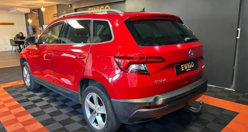 Skoda Karoq 1.0 TSI 115 AMBITION DSG + HAYON ÉLECTRIQUE + ANDROID AUTO/APPLE CARPLAY + ATTELAGE crossover, suv, rouge, 6 cv, 5 portes, première mise en circulation le 29/01/2019, garantie 6 mois. - NOS SERVICES ET PRESTATIONS COMPLÉMENTAIRES - - Visite virtuelle : avant de vous déplacer, visualisez votre futur véhicule sous toutes ses coutures . Contactez-nous pour en voir plus ! - Extension de garantie jusqu'à 60 mois. - Solutions de Financement de 12 à 84 mois. - Livraison dans toute la France métropolitaine (sur devis). - Reprise possible de votre ancien véhicule. - Les informations délivrées par cette annonce sont non contractuelles et données à titre indicatif. Packs disponibles (véhicules éligibles au Label) - Pack Clés en Main - 691 € TTC(¹)(²) Démarches (hors carte grise) | 1/4 de carburant | Nettoyage First | Garantie 6 mois | Label inclus? - Pack Sérénité - 891 € TTC(¹)(²) Démarches (hors carte grise) | 1/2 de carburant | Nettoyage Confort | Garantie 12 mois | Label inclus? - Pack Prestige - 1.091 € TTC(¹)(²) Démarches (hors carte grise) | Plein complet | Nettoyage Prestige | Garantie 12 mois | Label inclus? + Surprise du chef - (¹) Les véhicules non éligibles au Label bénéficient de tarifs préférentiels. Veuillez contacter votre conseiller pour obtenir les conditions tarifaires applicables. (²) Tarif pour les véhicules deux roues motrices dont la valeur de vente est inférieure à 60 000 € TTC. - Véhicule visible sur rendez vous 5 places OPTIONS ET ÉQUIPEMENTS : Audio - Télécommunications : - Android auto - Apple CARPLAY - Reconnaissance vocale - Bluetooth - GPS - Prise audio usb - commandes vocales - radio numérique - système de navigation Conduite : - Essuies glaces automatiques - Frein de parking électrique - Accès main libre - Stop & Start - clé mains-libres - démarrage sans clé - limiteur de vitesse Extérieur : - Capteurs d'aide au stationnement arrière - Hayon électrique - Phares AV de jour à LED - Rétroviseurs latéraux électriques - attelage - jantes : aluminium - jantes alliage - rétroviseurs rabattables - rétroviseurs électriques - système d'aide au stationnement Intérieur : - Porte gobelet avant - accoudoir central - climatisation : automatique - climatisation multi zone - direction assistée - fermeture centralisée - vitres surteintées - vitres électriques - volant réglable hauteur - volant réglable profondeur Pack : - Attache remorque - Boîte de vitesse automatique - Intérieur tissu - Sièges arrières 1/3 - 2/3 - GPS couleur - détecteur de lumière - volant multifonctions - volant réglable - Écran multifonction Sécurité : - ESP - airbag coté passager - anti-patinage - fixations ISOFIX - kit de dépannage pneumatique - phares antibrouillard Autres équipements et informations : - Factures d'entretien - Classe Crit'air : 1 - GPS tactile - Puissance kilowatt : 85 kw - USB - dimension des jantes : 17 pouces - nombre de rapports : 7 vitesses - puissance réelle : 116 ch - émission CO2 : 118 g/km Référence annonce : d148643