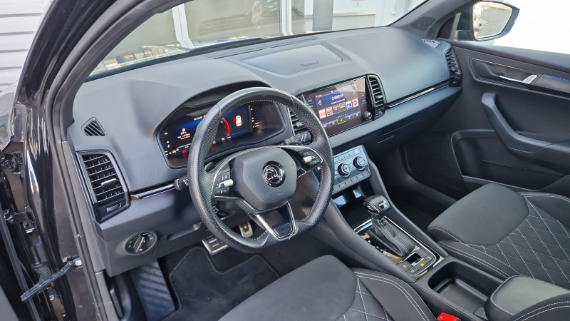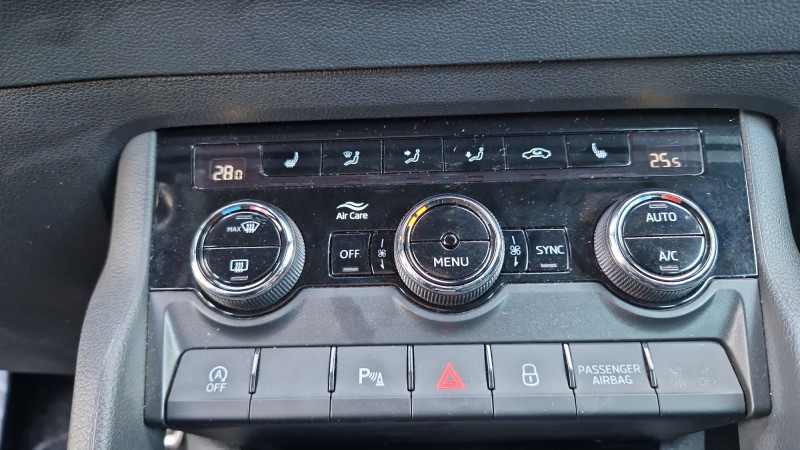 Banquette AR rabattable automatiquement depuis le coffre à bagages / Déblocage automatique des portes et activation des feux de détresse en cas d'accident / Feux AR full LED et éclairage de la plaque minéralogique à LED (incluant clignotants à défilement et fonction Welcome effect) / HHC : Hill Hold Control (aide au démarrage en côte) / Jantes alliage 18" "PROCYON" noires + enjoliveurs Aéro noires mat / Pack d'Ambiance Intérieur à LED Logo Skoda d'accueil projeté sous les portes AV / Phares AV Full Matrix LED avec système d'éclairage auto-adaptatif AFS, feux antibrouillard avec fonction Corner lights, welcome effect / Préparation attelage / Pédalier aluminium / Système de navigation AMUNDSEN 8" couleur tactile. Affichage 2,5D. Cartographie Europe de l'Ouest Smartlink (compatible Android AutoTM et Carplay) sans fil pour Apple, et Web Radio. / Volant sport cuir multifonctions 3 branches chauffant avec palettes au volant / 2 éclairages à l'AV, 1 central à l'AR / 3ème feu de stop intégré dans le spoiler AR / 8 HP / Accoudoir central AV avec ''Jumbobox'', porte-gobelets et prise 12V / Airbags frontaux conducteur et passager AV (dont passager déconnectable) / Airbags latéraux (thorax) dans les sièges AV / Assistance 24 /24 H pendant 7 ans / Aumônières au dos des sièges AV / Automatic Light Assist: Gestion intelligente des feux de route / Avertisseur de ceinture de sécurité non-bouclée / Aérateurs cerclés de noir / Blocage de l'arrivée de carburant en cas d'accident / Ciel de pavillon Noir / Commutateur de phares noir glossy / Compartiments latéraux droite et gauche derrière les passages de roues / Compartiments sur le passage de roue gauche / Couvre-coffre rigide / Direction assistée asservie à la vitesse / Driving Mode Select / Eclairage de l'espace aux pieds AV/AR / Eclairage du coffre à bagages (1 lampe fixe) / Entourage des vitres noir glossy / ESC incluant ABS+MSR+ASR+EDS+HBA+DSR+RBS+MKB ESC : correcteur électronique de trajectoire / ABS : système antiblocage des roues / EBV : Répartiteur électronique de freinage / MSR : régulateur de couple d'inertie / ASR : anti-patinage électronique / EDS : blocage électronique du différentiel / HBA : assistance hydraulique de freinage / DSR : contrebraquage assisté / MKB : freinage anti-multicollisions / Essuie-glace AR incluant des buses de lavage / Essuie-glace AV AERO à intermittence incluant des buses de lavage / Filtre à pollen / Frein à main électrique avec fonction autohold / Gratte-givre dans la trappe à essence / Grille de calandre noire / Indicateur de température extérieure / Infotainment Online 1 an + Care Connect 1 an / Inserts décoratifs de portes "Carbone" + Inserts décoratifs tableau de bord "Noir Piano" / Interface multimédia USB-C, Apple connectivity / Jupes AV/AR spécifiques / KESSY FULL : système d'autorisation d'accès, de démarrage et arrêt du moteur main-libre / Kit anti-crevaison / Klaxon bi-ton / Logo spécifique sur les ailes AV / Lumières de sécurité dans portières AV / Miroir de courtoisie éclairé dans pare-soleil AV / Pare-chocs couleur carrosserie / Poignées de maintien AV/AR / Poignées de portes intérieures chromées / Porte-bouteilles dans les portes AV (1,5l) et AR (1l) / Prise 12 V dans le coffre / Protection contre les erreurs de carburant / Rampes de pavillon noires glossy / Rangement porte-lunettes intégré au pavillon / Rangement sous le siège passager incluant un parapluie / Réflecteurs de sécurité dans les portes AV / Régulateur de vitesse adaptatif (actif jusqu'à 210 km/h) (incluant la fonction limiteur) / Rétroviseurs extérieurs électriques, dégivrants, rabattables, électrochromatique côté conducteur et rappel de clignotants / Rétroviseurs noirs et poignées de portes couleur carrosserie / Seuils de portes AV / Support de gilet de sécurité dans le panneau de porte / Support-ticket sur le montant A / Supports lombaires à réglage manuel pour les sièges AV / Système Coming Home et Leaving Home (temporisation de l'éclairage extérieur) / Système Smartlink (compatible Android Auto, Carplay)(sans fil pour APPLE) / Système Start & Stop avec récupération d'énergie au freinage / Système téléphone mobile Bluetooth / Tapis de sol textile / Verrouillage enfant manuel / Vitres AV/AR électriques avec fonction confort et sécurité enfants