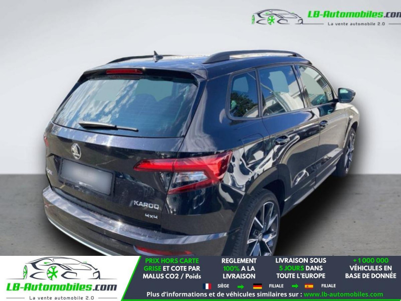 Référence : 1206671 Vos Avantages chez LB-AUTOMOBILES.com / Prix affiché TTC Livré hors carte grise / Livraison sous 10 jours dans toute la France hors 31 / Pas d?avance de frais paiement du véhicule 100% à la livraison par virement. Skoda Karoq Neuf remisée, Skoda Karoq Occasion Toulouse Beaupuy 31850, Skoda Karoq Véhicule sorti de réseau collaborateur, Skoda Karoq import, Skoda Karoq importateur, Skoda Karoq Livraison possible dans toute la France sous 5 jours, Skoda Karoq, Skoda Karoq Location Option Achat, Skoda Karoq LLD, Skoda Karoq Longue Durée, Skoda Karoq TVA récupérable. Possibilité d'extension de garantie 12, 24,36 mois, Pour tout autres voitures import neufs ou occasions collaborateur fortement remisée, Mandataire Audi, Mandataire BMW, Mandataire Volkswagen, Mandataire Mercedes, Mandataire Peugeot Espagne, Mandataire Renault Espagne, Porsche import, Mandataire Citroën Espagne, Mandataire Seat Espagne, n'hésitez pas à nous contacter. « Sous réserve de vente préalable et erreur de saisie » Principaux équipements : - 4x4 - ABS - Accoudoir - Antidémarrage - Assistance au freinage d'urgence - Assistance de démarrage en côte - Assistant d'angle mort - Assistant de sortie de stationnement - Assistant feux de route - Attache remorque pivotante - Avertisseur de franchissement de ligne - Bluetooth - Capteur de lumière - Capteur de pluie - Carnet d'entretien - Chauffage auxiliaire - Cockpit numérique - Commande vocale - Contrôle de la pression des pneus - Diesel avec filtre à particules - Direction assistée - Éclairage adaptatif de virage - Éclairage d'ambiance - ESP - Fermeture centralisée - Feux de jour LED - Galerie de toit - GPS - Hayon électrique - Isofix - Jantes alliage - Kit mains libres - Ordinateur de bord - Pack sport - Phare antibrouillard - Phares LED - Point Isofix siège passager - Port USB - Radio DAB - Régulateur de vitesse adaptatif - Rétroviseur extérieur électrique - Rétroviseur intérieur anti-éblouissement automatique - Rétroviseurs extérieurs rabattables électriquement - Roue de secours - Sièges arrières chauffants électriques - Sièges chauffants - Sièges sport - Support lombaire - Suspension adaptative - Système antipatinage - Système d'appel d'urgence - Système d'avertissement de la distance - Système de détection de la fatigue - Système de limitation de la vitesse - Système de nettoyage des phares - Système de reconnaissance des panneaux de signalisation - Système de sonorisation - Système Stop & Start - Toit ouvrant - Toit panoramique - Tuner/radio - Verrouillage centralisé sans clé - Vitre chauffante - Vitres électriques - Volant chauffant - Volant en cuir - Volant multifonction