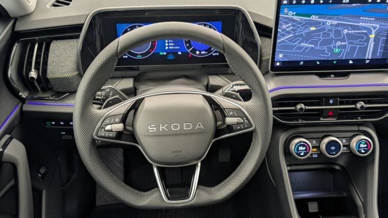 Aumônières au dos des sièges AV / Système téléphone mobile Bluetooth / Système Start & Stop avec récupération d'énergie au freinage / Frein à main électrique / Commande vocale / HHC : Hill Hold Control (aide au démarrage en côte) / Banquette AR rabattable automatiquement depuis le coffre à bagages / Pack d'Ambiance Intérieur à LED incluant le logo d'accueil SKODA projeté sous les portes AV / Rétroviseurs couleur carrosserie / Crew Protect Assist (système de protection proactive des passagers AV et AR) / Sécurité enfant électrique / Rampes de pavillon noires / Side Assist (système de détection des angles morts) / Volant 2 branches multifonctions avec palettes en cuir / Lane Assist + (Travel Assist) : maintien du véhicule au centre de la voie / Digital Cockpit 10,25" : compteurs digitaux personnalisables / Front Assist - système de sécurité anti-collision, avertissement et aide au freinage d'urgence pour véhicules, piétons et cyclistes / 1 ports USB type C de 15kW à l'AV, situé sur le rétroviseur intérieur / Radars de stationnement AV/AR avec assistance à la manoeuvre (stoppe la voiture pour eviter une collision lors d'une manoeuvre) / Airbags frontaux conducteur et passager, déconnectable côté passager / Smartlink sans fil (compatible Android Auto et Apple Carplay) / Pack KODIAQ 7 places / 3 Commandes intelligentes SKODA SMART DIALS boutons-poussoirs rotatifs personnalisables avec affichage numérique / Radio AM / FM / DAB+ / Ecran d'info-divertissement 13'' avec système de navigation et nettoyeur d'écran / Compartiment de rangement central fermé et éclairé sous le système d'info-divertissement incluant la Phonebox / Console centrale AV intégrant un espace de rangement, porte-gobelets et prise 12V / Jeu de filets dans le coffre avec maintiens SigmaQuick / Essuie-glace AV à intermittence incluant des buses de lavage / Feux de jour avec allumage automatique des projecteurs, fonction ''Coming Home'' et ''Leaving Home'' / Rétroviseurs extérieurs avec fonction mémoire, électrochromatique côté conducteur, rabattables et réglables électriquement, dégivrants indépendamment, convexes et avec rappel de clignotants / Kessy Advanced avec alarme système d'accès, de démarrage et arrêt du moteur sans clé avec fonction Walk Away Locking, la voiture se verrouille/déverrouille lorsque vous vous en approchez/éloignez / Ciel de pavillon gris orage / Design intérieur Loft sellerie tissu mélange noir et gris recyclé, surpiqûres vertes et noires / Insert décoratif noir grain brillant sur planche de bord / contreportes, inserts en continuité de la poignée de porte noir glossy, habillage tissu mélange noir et gris sur planche de bord / contreportes, poignée de maintien de porte en plastique moussé noire / Banquette AR rabattable 40/20/40, rabattable et coulissante sur 180 mm / Sièges AV chauffants, réglables séparément / Siège passager réglable en hauteur manuellement, et supports lombaires à réglage manuel / Door Opening Alert (inclus avec le Side Assist) : assistant de descente de véhicule via un signal visuel et sonore / Rear Cross Traffic Alert (inclus avec le Side Assist) assistant de sortie de stationnement et changement de file via un signal visuel et sonore / Traffic Jam Assist avec Travel Assist: assistant de conduite en embouteillage / Turn Assist (inclus avec le Front Assist) assistant de virage permettant de surveiller si un véhicule arrive en sens inverse, en cas de danger le véhicule s'immboilise et déclenche le signal d'alerte / Prise 12 V dans le coffre / Siège conducteur à réglage électrique à mémoire, et supports lombaires à réglage électrique / Feu AR LED avec bandeau décoratif noir entre les feux (incluant clignotants et fonction welcome effect) / Phares AV antibrouillard intégrés "Allweather light" avec fonction Corner lights / Sièges Confort à l'AV / 4 ports USB type C de 45kW (2 dans la console centrale à l'AV et 2 dans la console centrale à l'AR) / Crossroad Assist (inclus avec le Front Assist) - assistant d?intersection lorsque l'on s?engage sur une route où la vue est obstruée par des obstacles (clôtures, voitures stationnées). L'assistant réagit en cas de danger imminent, si des véhicules ou cyclistes arrivent de côté, en déclenchant une alerte sonore et visuelle, et en activant le freinage d?urgence. / Dispositif Phonebox et recharge par induction réfrigérée pour 2 téléphones délivrant une puissance de 15W par téléphone / Emergency Assist (inclus avec le Travel Assist): - réduit le risque d'accident, en cas de malaise du conducteur la voiture le détecte et l'assistant d'urgence s'active en faisant décélérer la voiture jusqu'à son arrêt complet, en la maintenant sur sa voie avec les feux de détresse, le klaxon et l'éclarage intérieur, tout en prévenant les secours avec le système eCall / Fixation ISOFIX aux places extérieures AR pour sièges enfant / Régulateur de vitesse adaptatif/prédictif ACC (actif jusqu'à 210 km/h - incluant la fonction limiteur de vitesse prédictif) / Entourage des vitres Noir et montant AR noir / Vitres électriques AV - AR avec système anti-pincement / Diffuseur AR noir avec insert Unique Dark Chrome (rendu alu mat) / Grille de calandre noire avec contour Unique Dark Chrome (rendu alu mat) / Rétroviseur intérieur électrochromatique / Airbags latéraux (thorax) dans les sièges AV / Kit anti-crevaison / / Véhicules équivalents: Tiguan, X3