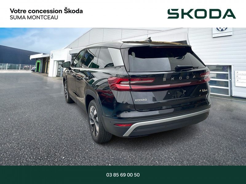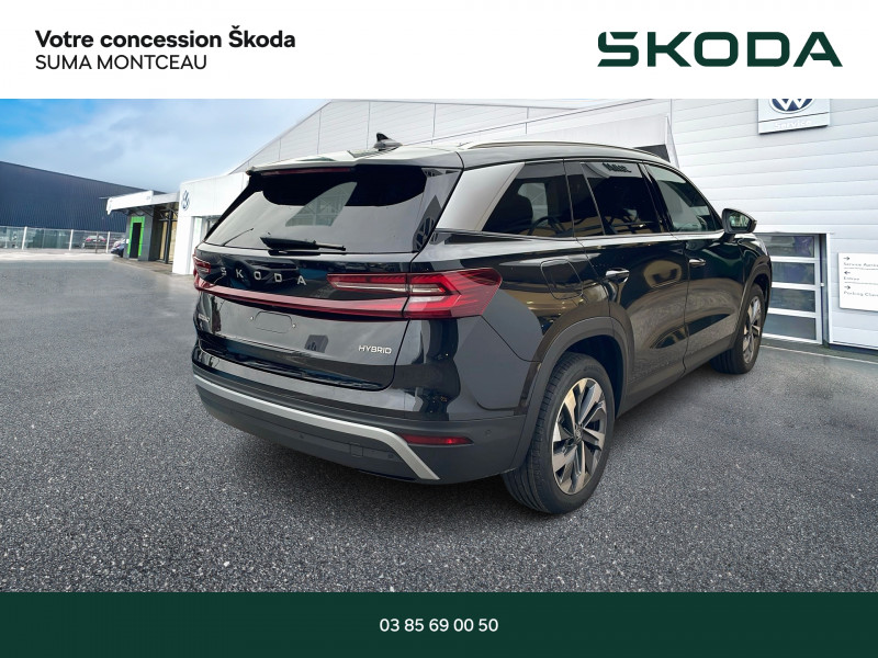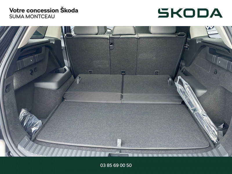 PACK KODIAQ 7 PLACES / NOIR MAGIC NACRE / EXTENSION DE GARANTIE 2 ANS / 60 000 KM / DESIGN SUITE NOIR : SELLERIE CUIR NOIR / Banquette AR rabattable automatiquement depuis le coffre à bagages / Boîte de vitesse automatique à 7 vitesses / Design intérieur Suite Noir - Habillage planche de bord / contreportes / poignée de maintien de porte matériau synthétique noir - Insert décoratif sur la planche de bord / contreportes gris design cygne - Sellerie cuir noir et matériau synthétique noir - Eclairage de l'espace aux pieds AR / Diffuseur AR noir avec insert Unique Dark Chrome (rendu alu mat) / Ecran d'info-divertissement 13'' avec système de navigation et nettoyeur d'écran / Entourage des vitres noir glossy et pillier montant AR en Unique Dark Chrome (rendu alu mat) / Feux de jour avec allumage automatique des projecteurs / fonction ''Coming Home'' et ''Leaving Home'' / Front Assist - système de sécurité anti-collision / avertissement et aide au freinage d'urgence pour véhicules / piétons et cyclistes / Grille de calandre noire avec contour Unique Dark Chrome (rendu alu mat) / HHC : Hill Hold Control (aide au démarrage en côte) / Insert décoratif gris design cygne sur planche de bord / contreportes inserts en continuité de la poignée de porte Unique Dark Chrome (rendu alu mat) / Habillage matériau synthétique noir ou cognac sur planche de bord / contreportes / poignée de maintien de porte / Intelligent Park Assist (assistant aux manoeuvres de stationnement) / Jantes alliage 19'' Halti antracite (235/50 R19) / Lettrage Unique Dark Chrome (rendu alu mat) à l'AR du véhicule / Pack Acoustique - Vitrage acoustique sur les vitres AV - Vitres et lunette AR surteintées / Pack Assistance de Conduite Plus - Caméra 360° - Intelligent Park Assist : assistant aux manoeuvres de stationnement - Trained Parking : mémorisation du stationnement - Remote Park Assist : stationnement à distance via Smartphone / Pack Confort Plus Double plancher de coffre / Roue de secours tôle à encombrement réduit / Sièges AV à réglage électrique avec fonction mémoire / et supports lombaire à réglage électrique / Système son CANTON / Fonction Virtual Pedal sur le hayon de coffre: ouverture mains libres / Pack d'Ambiance Intérieur à LED incluant le logo d'accueil SKODA projeté sous les portes AV / Pack Look - Entourage des vitres noir glossy - Montant AR en Unique Dark Chrome (rendu alu mat) - Rampes de pavillon Unique Dark Chrome (rendu alu mat) - Seuils de porte AV / Pack Simply Clever Family Airbags latéraux AR / Compartiment de rangement sur le tunnel AR / Pare-soleil pour vitres AR intégrés dans les portières / Poubelle de porte / Protection des arêtes de portes / Support pour tablette / Pack Visibilité Plus Calandre avec bandeau horizontal illuminé reliant les deux phares AV / Phares AV Full Matrix LED (Welcome effect effet bienvenu au dévérouillage du véhicule / système d'éclairage auto-adaptatif AFS) / Feux AR full LED avec bandeau décoratif rouge entre les feux (incluant clignotants à défilement et fonction welcome effect) / Poignées de portes intérieures Unique Dark Chrome (rendu alu mat) / Préparation pour dispositif d'attelage / Radars de stationnement AV/AR avec assistance à la manoeuvre (stoppe la voiture pour eviter une collision lors d'une manoeuvre) / Rear Cross Traffic Alert (inclus avec le Side Assist) assistant de sortie de stationnement et changement de file via un signal visuel et sonore / Remote Park Assist : stationnement à distance via Smartphone / Toit panoramique ouvrant électrique en verre / Trained Parking :mémorisation du stationnement / Volant 2 branches multifonctions avec palettes en cuir / 1 ports USB type C de 15kW à l'AV / situé sur le rétroviseur intérieur / 3 Appuie-têtes AR / 3 Commandes intelligentes SKODA SMART DIALS boutons-poussoirs rotatifs personnalisables avec affichage numérique / 4 crochets porte-sacs rabattables situés dans le coffre + 2 compartiments de rangement dans le coffre / 4 ports USB type C de 45kW (2 dans la console centrale à l'AV et 2 dans la console centrale à l'AR) / 8 HP + 1 HP central (également pour Ecall) / déconnectable côté passager / Airbags latéraux (thorax) dans les sièges AV / Assistance 24 /24 H pendant 7 ans / Aumônières au dos des sièges AV / Avertisseur de ceinture de sécurité non-bouclée / rabattable et coulissante sur 180 mm / Boîte à gants côté passager en partie supérieure du tableau de bord avec surpiqûres / Boîte à gants éclairée côté passager en partie inférieure du tableau de bord / Caméra 360° / Cargo-éléments flexible pour compartimenter le coffre / Ceintures de sécurité AR 3 points / Ceintures de sécurité AV à 3 points / avec prétensionneurs / Ciel de pavillon gris orage / Commande vocale / Compartiment de rangement central fermé et éclairé sous le système d'info-divertissement incluant la Phonebox / Console centrale AV intégrant un espace de rangement / porte-gobelets et prise 12V / Crew Protect Assist (système de protection proactive des passagers AV et AR) / Crossroad Assist (inclus avec le Front Assist) assistant d'intersection lorsque l'on s'engage sur une route où la vue est obstruée par des obstacles (clôtures / voitures stationnées). L'assistant réagit en cas de danger imminent / si des véhicules ou cyclistes arrivent de côté / en déclenchant une alerte sonore et visuelle / Digital Cockpit 10 / 25 : compteurs digitaux personnalisables / Direction assistée asservie à la vitesse / Dispositif Phonebox et recharge par induction réfrigérée pour 2 téléphones délivrant une puissance de 15W par téléphone / Door Opening Alert (inclus avec le Side Assist) : assistant de descente de véhicule via un signal visuel et sonore / Détecteur de fatigue / Détecteur de pluie et de lumière / Eclairage dans le coffre (2 lampes) / Eclairage de l'espace aux pieds AR / Eclairage de l'espace aux pieds AV / Eclairages dans
