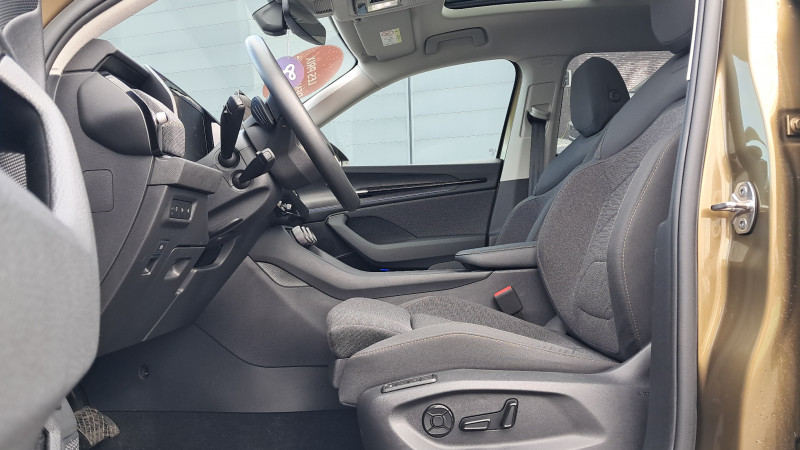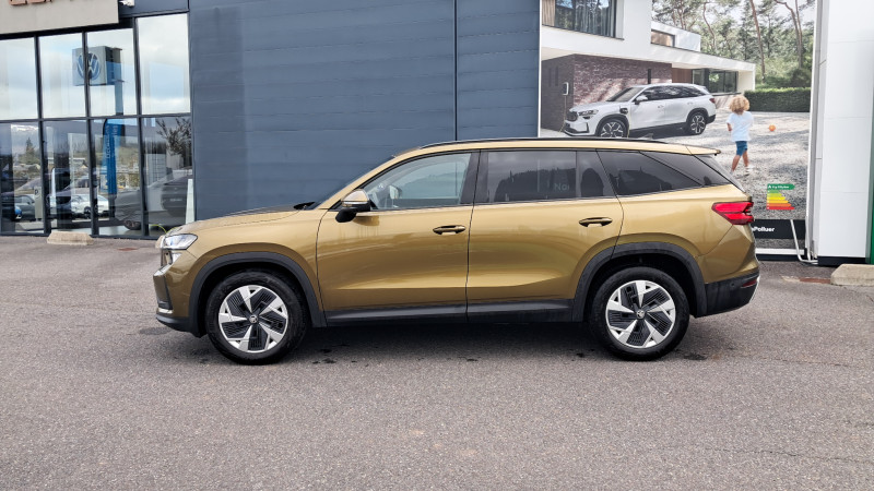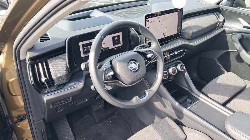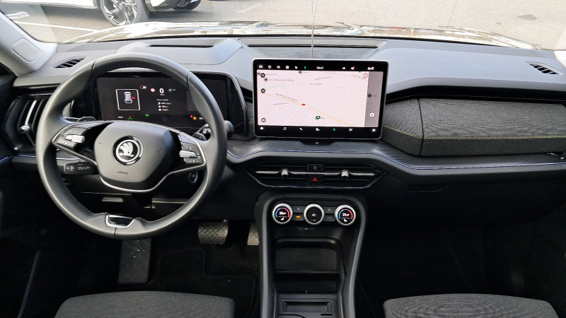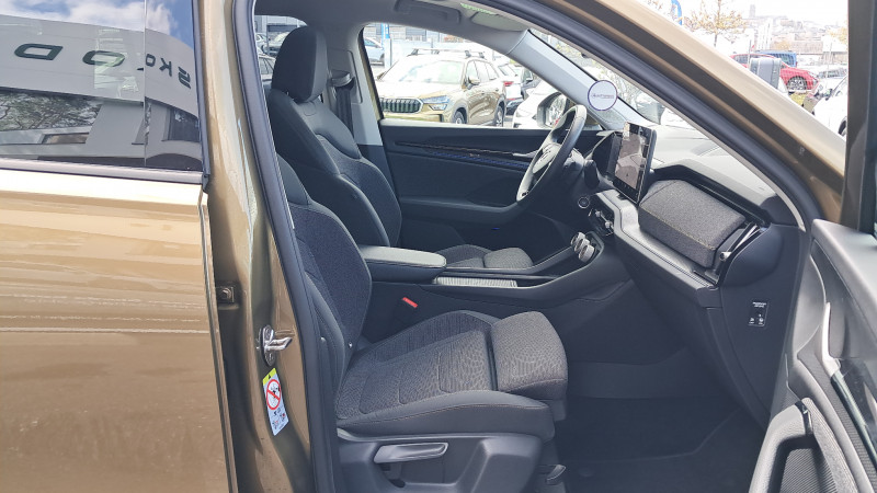 Banquette AR rabattable automatiquement depuis le coffre à bagages / Boîte de vitesse automatique à 7 vitesses / Diffuseur AR noir avec insert Unique Dark Chrome (rendu alu mat) / Ecran d'info-divertissement 13'' avec système de navigation et nettoyeur d'écran / Feux AR LED avec bandeau décoratif noir entre les feux (incluant clignotants et fonction welcome effect) / Feux de jour avec allumage automatique des projecteurs, fonction ''Coming Home'' et ''Leaving Home'' / Front Assist - système de sécurité anti-collision, avertissement et aide au freinage d'urgence pour véhicules, piétons et cyclistes / Grille de calandre noire avec contour Unique Dark Chrome (rendu alu mat) / HHC : Hill Hold Control (aide au démarrage en côte) / Jantes alliage 17" Paget (ET40 215/65 R17) / Lettrage Unique Dark Chrome (rendu alu mat) à l'AR du véhicule / Pack d'Ambiance Intérieur à LED incluant le logo d'accueil SKODA projeté sous les portes AV / Pack KODIAQ 7 places / Phares AV LED (Feux de route, de croisement, de position et clignotant à LED, système d'éclairage auto-adaptatif AFS / Poignées de portes intérieures Unique Dark Chrome (rendu alu mat) / Préparation pour dispositif d'attelage / Radars de stationnement AV/AR avec assistance à la manoeuvre (stoppe la voiture pour eviter une collision lors d'une manoeuvre) / Rear Cross Traffic Alert (inclus avec le Side Assist) assistant de sortie de stationnement et changement de file via un signal visuel et sonore / Volant 2 branches multifonctions avec palettes en cuir / 1 ports USB type C de 15kW à l'AV, situé sur le rétroviseur intérieur / 3 Commandes intelligentes SKODA SMART DIALS boutons-poussoirs rotatifs personnalisables avec affichage numérique / 4 crochets porte-sacs rabattables situés dans le coffre + 2 compartiments de rangement dans le coffre / 4 ports USB type C de 45kW (2 dans la console centrale à l'AV et 2 dans la console centrale à l'AR) / 8 HP + 1 HP central (également pour Ecall) / Airbags frontaux conducteur et passager, déconnectable côté passager / Airbags latéraux (thorax) dans les sièges AV / Assistance 24 /24 H pendant 7 ans / Aumônières au dos des sièges AV / Avertisseur de ceinture de sécurité non-bouclée / Banquette AR rabattable 40/20/40, rabattable et coulissante sur 180 mm / Boîte à gants côté passager en partie supérieure du tableau de bord avec surpiqûres / Boîte à gants éclairée côté passager en partie inférieure du tableau de bord / Cargo-éléments flexible pour compartimenter le coffre / Ciel de pavillon gris orage / Commande vocale / Compartiment de rangement central fermé et éclairé sous le système d'info-divertissement incluant la Phonebox / Console centrale AV intégrant un espace de rangement, porte-gobelets et prise 12V / Crew Protect Assist (système de protection proactive des passagers AV et AR) / Crossroad Assist (inclus avec le Front Assist) assistant d'intersection lorsque l'on s'engage sur une route où la vue est obstruée par des obstacles (clôtures, voitures stationnées). L'assistant réagit en cas de danger imminent, si des véhicules ou cyclistes arrivent de côté, en déclenchant une alerte sonore et visuelle, et en activant le freinage d'urgence / Digital Cockpit 10,25" : compteurs digitaux personnalisables / Direction assistée asservie à la vitesse / Dispositif Phonebox et recharge par induction réfrigérée pour 2 téléphones délivrant une puissance de 15W par téléphone / Door Opening Alert (inclus avec le Side Assist) : assistant de descente de véhicule via un signal visuel et sonore / Eclairage dans le coffre (2 lampes) / Eclairage de l'espace aux pieds AV / Eclairages dans le ciel de toit à AV / Emergency Assist: réduit le risque d'accident, en cas de malaise du conducteur la voiture le détecte et l'assistant d'urgence s'active en faisant décélérer la voiture jusqu'à son arrêt complet, en la maintenant sur sa voie avec les feux de détresse, le klaxon et l'éclarage intérieur, tout en prévenant les secours avec le système eCall / Entourage des vitres noir et pilier montant AR noir / ESC (incl. ABS+MSR+ASR+EDS+HBA+DSR+RBS+MKB) / Essuie-glace AR incluant des buses de lavage / Essuie-glace AV à intermittence incluant des buses de lavage / Fixation ISOFIX aux places extérieures AR pour sièges enfant / Frein à main électrique / Garantie 2 ans / kilométrage illimité / Gratte-givre dans la trappe à essence / Hayon de coffre électrique avec 2 lampes dans le hayon / Infotainment Online 3 ans + Care Connect 3 ans / Insert décoratif noir grain brillant sur planche de bord / contreportes, inserts en continuité de la poignée de porte noir glossy, habillage tissu mélange noir et gris sur planche de bord / contreportes, poignée de maintien de porte en plastique moussé noire / Jeu de filets dans le coffre avec maintiens SigmaQuick / Jupe AV avec sabot noir / Kessy Advanced avec alarme système d'accès, de démarrage et arrêt du moteur sans clé avec fonction Walk Away Locking, la voiture se verrouille/déverrouille lorsque vous vous en approchez/éloignez / Kit anti-crevaison / Klaxon bi-ton / Lane Assist + (Travel Assist) : maintien du véhicule au centre de la voie / Pare-chocs couleur carrosserie / Pare-soleil AV intégrant miroirs de courtoisie (avec éclairage) / Phares AV antibrouillard intégrés "Allweather light" avec fonction Corner lights / Poignées de maintien AV et AR / Poignées de porte couleur carrosserie / Porte-bouteilles dans les portes AV et AR / Prise 12 V dans le coffre / Protection des passages de roue AV/AR noir mat (plastique) / Radio AM / FM / DAB+ / Rampes de pavillon noires / Range-parapluie dans la porte conducteur (incluant un parapluie côté conducteur) / Régulateur de vitesse adaptatif/prédictif ACC (actif jusqu'à 210 km/h - incluant la fonction limiteur de vitesse prédictif) / Rétroviseur intérieur électrochromatique / Rétroviseurs couleur carrosserie / Rétroviseurs extér