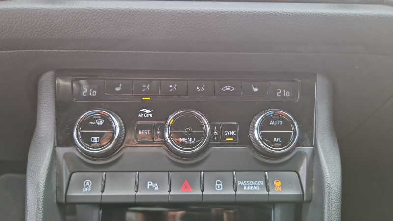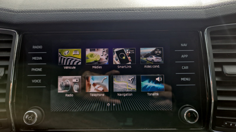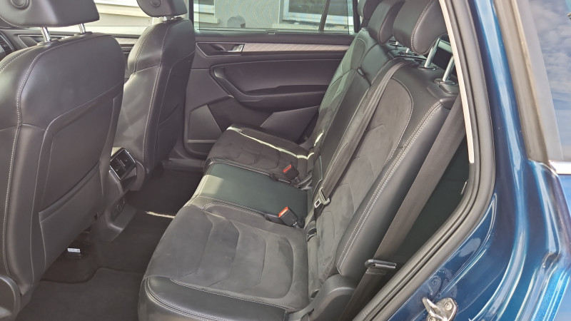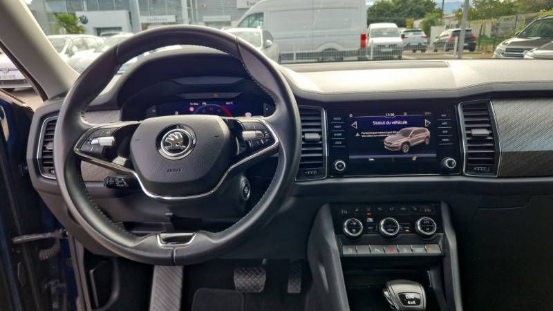 Déblocage automatique des portes et activation des feux de détresse en cas d'accident / Feux AR full LED et éclairage de la plaque minéralogique à LED (incluant clignotants à défilement et fonction Welcome effect) / HHC : Hill Hold Control (aide au démarrage en côte) / Jantes allliage 18" "ELBRUS" (pneus 235/55 R18) / Pack d'Ambiance Intérieur à LED / Pack KODIAQ 7 places / Phares AV Full Matrix LED avec système d'éclairage auto-adaptatif AFS, feux antibrouillard avec fonction Corner lights, welcome effect / Préparation pour crochet d'attelage / Rétroviseurs extérieurs électrique, électrochrome côté conducteur, à mémoire dégivrants rabattables, automatiques avec rappel de clignotants et éclairage du sol / Système de navigation AMUNDSEN 8" couleur tactile. Affichage 2,5D. Cartographie Europe de l'Ouest Smartlink (compatible Android AutoTM et Carplay) sans fil pour Apple, et Web Radio. / Traffic Sign Recognition - Système de reconnaissance automatiques des panneaux de signalisation / Volant cuir multifonctions (radio/téléphone) 2 branches chauffant avec palettes au volant / 2 liseuses AV / 2 éclairages à l'AV, 1 central à AR / 3ème feu de stop intégré dans le spoiler AR / 8 HP / Accoudoir central AV avec ''Jumbobox'', porte-gobelets et prise 12V / Airbags frontaux conducteur et passager AV (dont passager déconnectable) / Airbags latéraux (thorax) dans les sièges AV / Assistance 24 /24 H pendant 7 ans / Automatic Light Assist: Gestion intelligente des feux de route / Avertisseur de ceinture de sécurité non-bouclée / Banquette AR 60/40, rabattable et coulissante sur 180 mm + Fonction easy-entry / Blocage de l'arrivée de carburant en cas d'accident / Cargo éléments dans le coffre / Commutateur de phares chromé / Compartiment de rangement côté conducteur fermé / Compartiments latéraux droite et gauche derrière les passages de roues / Couvre-coffre à enrouleur avec position intermédiaire / Digital Cockpit / Direction assistée asservie à la vitesse / Echappement invisible / Eclairage de l'espace aux pieds AV / Eclairage du sol intégré aux rétroviseurs extérieurs / Enjoliveurs de vitres chromés / ESC (incl. ABS+MSR+ASR+EDS+HBA+DSR+RBS+MKB) / Essuie-glace AR incluant des buses de lavage / Essuie-glace AV AERO à intermittence incluant des buses de lavage / Filtre à pollen / Frein à main électrique avec fonction autohold / Grille de calandre noire et chromé avec entourage chromé / Hayon de coffre à ouverture et fermeture électriques avec Virtual Pedal / Indicateur de température extérieure / Infotainment Online 1 an + Care Connect 1 an / Insert décoratif diamant / Jeu de 3 filets dans le coffre (1 filet horizontal et 2 filets verticaux) / Jupes AV/AR argentées / KESSY FULL : système d'autorisation d'accès, de démarrage et arrêt du moteur main-libre / Kit anti-crevaison / Klaxon bi-ton / Lane Assistant: Assistant de maintien dans la voie / Pare-chocs couleur carrosserie / Pare-soleil AV éclairés / Poignées de portes intérieures chromées / Pommeau de levier de vitesses noir glossy, contour chromé / Porte-bouteilles dans les portes AV (1,5l) et AR (1l) / Prise 12 V dans le coffre / Protection contre les erreurs de carburant / Protection des passages de roue AV/AR noir mat (plastique) / Rampes de pavillon Argent / Range-parapluie dans la porte conducteur (incluant un parapluie côté conducteur) / Régulateur de vitesse adaptatif (actif jusqu'à 210 km/h - incluant la fonction limiteur) / Rétroviseurs et poignées de porte couleur carrosserie / Sans identification moteur / Seuils de portes AV / Siège conducteur à réglage électrique et à mémoire avec réglage lombaire électrique / Sièges passager réglable en hauteur manuellement / Stores pare-soleil manuels pour les vitres AR / Support de gilet de sécurité dans le panneau de porte / Support de tablette au dos des sièges AV / Support-ticket sur le montant A / Système Coming Home et Leaving Home (temporisation de l'éclairage extérieur) / Système Smartlink (compatible Android Auto, Carplay) (sans fil) / Système Start & Stop avec récupération d'énergie au freinage / Système téléphone mobile Bluetooth / Tapis de sol textile / Vitres AV/AR électriques avec fonction confort et sécurité enfants