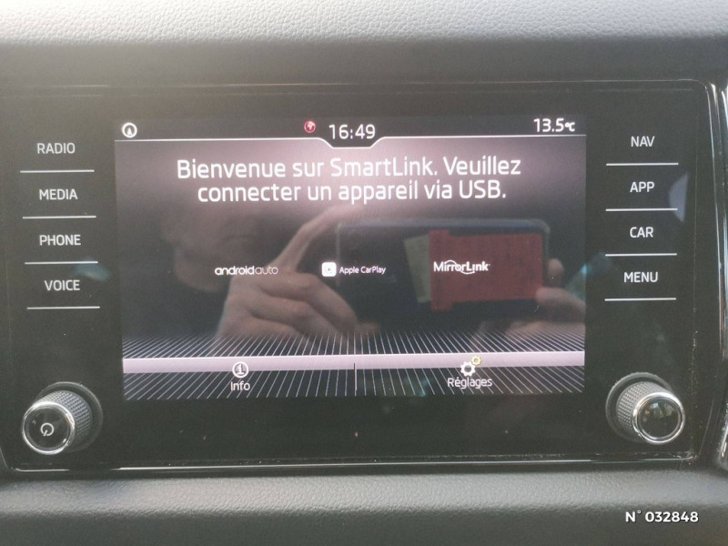 Système Smartlink+ : Mirrorlink, Android Auto, Carplay, fonction Smartgate / Système Start & Stop avec récupération d'énergie au freinage / Range-parapluie dans les portes AV (incluant un parapluie pour chaque rangement) / Supports lombaires à réglage manuel pour les sièges AV / Sellerie Tissu "Ambition" / Rétroviseur intérieur électrochromatique + Light Assist + Détecteur de pluie / Support de gilet de sécurité dans le panneau de porte / Tapis de sol textile AV, AR / Pochettes sur le bord intérieur des sièges AV / Support-ticket sur le montant A / Système de navigation AMUNDSEN 8" couleur tactile 2,5D (SD, USB, AUX in, Bluetooth, SmartLink, WLAN hotspot). Cartographie Europe de l'Ouest s/carte SD. Commande vocale, Amplificateur électronique de voix. Infotainment Online 1 an. / Traffic Sign Recognition - Système de reconnaissance automatiques des panneaux de signalisation / Rétroviseurs extérieurs couleur carrosserie / Filet de rangement sur la console centrale côté passager / Rétroviseur intérieur électrochromatique + Light Assist + Détecteur de pluie / Rampes de pavillon noires mat / Système téléphone mobile Bluetooth / Frein à main en cuir / Levier de vitesses en cuir / Rétroviseurs extérieurs électriques électrochromes dégivrants rabattables avec rappel de clignotants et éclairage du sol / Régulateur de vitesse + Limiteur de vitesse / Système "Coming Home" et "Leaving Home" (temporisation de l'éclairage extérieur) / Vitres AV/AR électriques avec fonction confort et sécurité enfants / Protection des passages de roue AV/AR noir mat (plastique) / Prise 12 V dans le coffre / Protection contre les erreurs de carburant / Préparation attelage / Phares AV halogène avec feux du jour à LED / Protection des arêtes de portes rétractables automatiquement / Pare-chocs couleur carrosserie / Pommeau de levier de vitesses noir glossy, contour chromé / Porte-bouteilles dans les portes AV (1,5l) et AR (1l) / Poignées de portes intérieures chromées / Poignées de porte couleur carrosserie / Kit anti-crevaison / Klaxon 2 tons / Peinture opaque Bleu Energie / Inserts décoratifs gris veiné / Jeu de filets dans le coffre (1x horizontal / 2x vertical) / Grille de calandre noire avec contour chromé / Indicateur de température extérieure / Jantes alliage 17" " RATIKON" 215/65 R17 / Garantie 2 ans / kilométrage illimité / Infotainment Online 1 an + Care Connect 1 an / Filtre à pollen / Interface multimédia USB compatible Apple connectivity / Frein à main électrique avec fonction autohold / Essuie-glace AR incluant des buses de lavage / Feux de jour à LED intégrés dans optiques inférieurs / Feux AR low LED 2 pièces / Essuie-glace AV AERO à intermittence incluant des buses de lavage / Eclairage de l'espace aux pieds AV / ESC incluant ABS, EBV, XDS+, MSR, ASR, EDS, HBA, DSR et MKB / Commutateur de phares noir glossy / Eclairage du sol intégré aux rétroviseurs extérieurs / Echappement invisible / Déblocage automatique des portes et activation des feux de détresse en cas d'accident / Compartiments latéraux droite et gauche derrière les passages de roues / Couvre-coffre à enrouleur avec position intermédiaire / Climatisation automatique Climatronic bi-zone incl. le détecteur de pluie / Direction assistée asservie à la vitesse / Ciel de pavillon Gris Perle / Banquette AR 60/40, rabattable et coulissante sur 180 mm / Avertisseur de ceinture de sécurité non-bouclée / Blocage de l'arrivée de carburant en cas d'accident / Assistance 24 /24 H pendant 7 ans / Accoudoir central AV avec rangement JUMBO BOX, porte-gobelets et prise 12V / Airbags frontaux conducteur et passager AV (dont passager déconnectable) / 2 spots de lecture conducteur et passager AV + 1 lumière AR / 3ème feu de stop intégré dans le spoiler AR / 8 HP