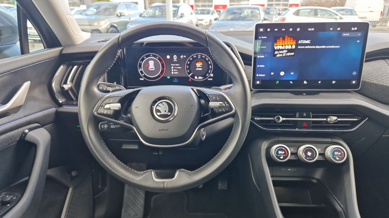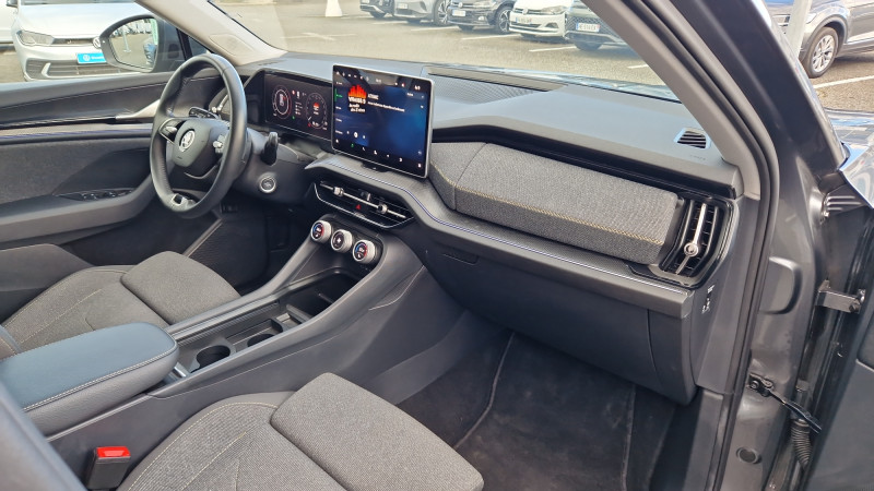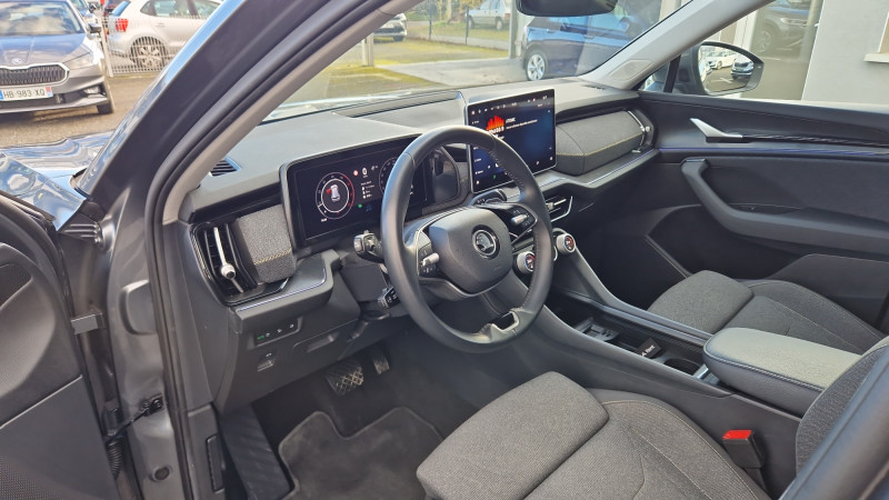 Banquette AR rabattable automatiquement depuis le coffre à bagages / Boîte de vitesse automatique à 7 vitesses / Diffuseur AR noir avec insert Unique Dark Chrome (rendu alu mat) / Ecran d'info-divertissement 13'' avec système de navigation et nettoyeur d'écran / Feux AR LED avec bandeau décoratif noir entre les feux (incluant clignotants et fonction welcome effect) / Feux de jour avec allumage automatique des projecteurs, fonction ''Coming Home'' et ''Leaving Home'' / Front Assist - système de sécurité anti-collision, avertissement et aide au freinage d'urgence pour véhicules, piétons et cyclistes / Grille de calandre noire avec contour Unique Dark Chrome (rendu alu mat) / HHC : Hill Hold Control (aide au démarrage en côte) / Jantes alliage 17" Paget (215/65 R17) / Lettrage Unique Dark Chrome (rendu alu mat) à l'AR du véhicule / Pack d'ambiance Intérieur à LED incluant le logo d'accueil SKODA projeté sous les portes AV / Pack KODIAQ 7 places / Phares AV LED (Feux de route, de croisement, de position et clignotant à LED, système d'éclairage auto-adaptatif AFS / Poignées de portes intérieures Unique Dark Chrome (rendu alu mat) / Préparation pour dispositif d'attelage / Radars de stationnement AV/AR avec assistance à la manoeuvre (stoppe la voiture pour eviter une collision lors d'une manoeuvre) / Rear Cross Traffic Alert (inclus avec le Side Assist) assistant de sortie de stationnement et changement de file via un signal visuel et sonore / Volant 2 branches en cuir multifonctions chauffant avec palettes au volant / 1 ports USB type C de 15kW à l'AV, situé sur le rétroviseur intérieur / 3 Commandes intelligentes SKODA SMART DIALS boutons-poussoirs rotatifs personnalisables avec affichage numérique / 4 crochets porte-sacs rabattables situés dans le coffre + 2 compartiments de rangement dans le coffre / 4 ports USB type C de 45kW (2 dans la console centrale à l'AV et 2 dans la console centrale à l'AR) / 8 HP + 1 HP central (également pour Ecall) / Airbags frontaux conducteur et passager, déconnectable côté passager / Airbags latéraux (thorax) dans les sièges AV / Appel d'urgence - Private Ecall (renseigne des données précises de votre véhicule lors du contact avec les urgences) / Assistance 24 /24 H pendant 7 ans / Aumônières au dos des sièges AV / Avertisseur de ceinture de sécurité non-bouclée / Banquette AR rabattable 40/20/40, rabattable et coulissante sur 180 mm / Boîte à gants côté passager en partie supérieure du tableau de bord avec surpiqûres / Boîte à gants éclairée côté passager en partie inférieure du tableau de bord / Cargo-éléments flexible pour compartimenter le coffre / Ciel de pavillon gris orage / Commande vocale / Compartiment de rangement central fermé et éclairé sous le système d'info-divertissement incluant la Phonebox / Console centrale AV intégrant un espace de rangement, porte-gobelets et prise 12V / Crew protect Assist - système pro-actif de protection des passagers AV et AR, pré-tend les ceintures de sécurité en cas de danger et ferme presque complètement les vitres latérales pour éviter que des objets extérieurs n'entrent dans l'habitacle / Crossroad Assist (inclus avec le Front Assist) assistant d'intersection lorsque l'on s'engage sur une route où la vue est obstruée par des obstacles (clôtures, voitures stationnées). L'assistant réagit en cas de danger imminent, si des véhicules ou cyclistes arrivent de côté, en déclenchant une alerte sonore et visuelle, et en activant le freinage d'urgence / Digital Cockpit 10,25": compteurs digitaux personnalisables / Direction assistée asservie à la vitesse / Dispositif Phonebox et recharge par induction réfrigérée pour 2 téléphones délivrant une puissance de 15W par téléphone / Door Opening Alert (inclus avec le Side Assist) : assistant de descente de véhicule via un signal visuel et sonore / Eclairage dans le coffre (2 lampes) / Eclairage de l'espace aux pieds AV / Eclairages dans le ciel de toit à AV / Emergency Assist: réduit le risque d'accident, en cas de malaise du conducteur la voiture le détecte et l'assistant d'urgence s'active en faisant décélérer la voiture jusqu'à son arrêt complet, en la maintenant sur sa voie avec les feux de détresse, le klaxon et l'éclarage intérieur, tout en prévenant les secours avec le système eCall / Entourage des vitres noir et pilier montant AR noir / ESC (incl. ABS+MSR+ASR+EDS+HBA+DSR+RBS+MKB) / Essuie-glace AR incluant des buses de lavage / Essuie-glace AV à intermittence incluant des buses de lavage / Fixation ISOFIX aux places extérieures AR pour sièges enfant / Frein à main électrique / Gratte-givre dans la trappe à essence / Hayon de coffre électrique avec 2 lampes dans le hayon / Infotainment Online 3 ans + Care Connect 3 ans / Insert décoratif noir grain brillant sur planche de bord / contreportes, inserts en continuité de la poignée de porte noir glossy, habillage tissu mélange noir et gris sur planche de bord / contreportes, poignée de maintien de porte en plastique moussé noire / Jeu de filets dans le coffre avec maintiens SigmaQuick / Jupe AV avec sabot noir / Kessy Advanced avec alarme système d'accès, de démarrage et arrêt du moteur sans clé avec fonction Walk Away Locking, la voiture se verrouille/déverrouille lorsque vous vous en approchez/éloignez / Kit anti-crevaison / Klaxon bi-ton / Lane Assist + (Travel Assist) : maintien du véhicule au centre de la voie / Pare-chocs couleur carrosserie / Pare-soleil AV intégrant miroirs de courtoisie (avec éclairage) / Phares AV antibrouillard intégrés "Allweather light" avec fonction Corner lights / Poignées de maintien AV et AR / Poignées de porte couleur carrosserie / Porte-bouteilles dans les portes AV et AR / Prise 12 V dans le coffre / Protection des passages de roue AV/AR noir mat (plastique) / Radio AM / FM / DAB+ / Rampes de pavillon noires / Range-parapluie dans la porte conducteur (inclu