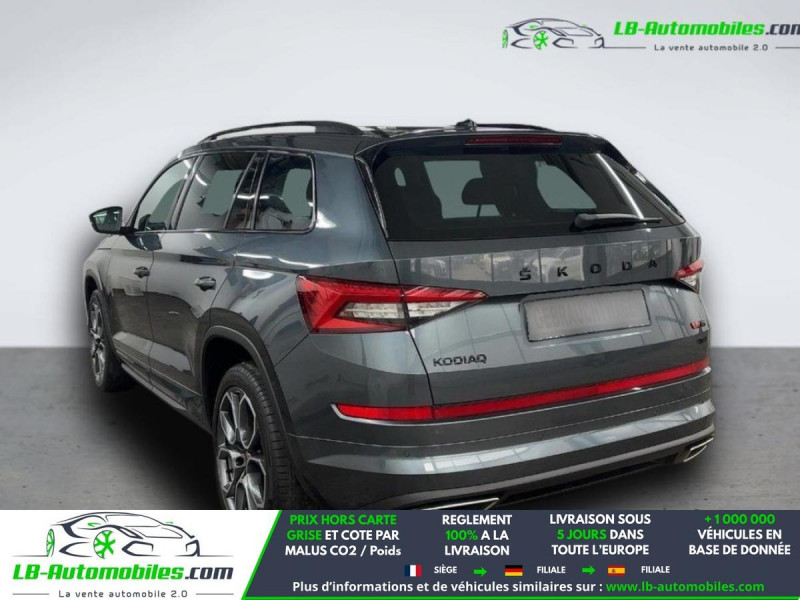 Référence : 1170187 Vos Avantages chez LB-AUTOMOBILES.com / Prix affiché TTC Livré hors carte grise / Livraison sous 10 jours dans toute la France hors 31 / Pas d?avance de frais paiement du véhicule 100% à la livraison par virement. Skoda Kodiaq Neuf remisée, Skoda Kodiaq Occasion Toulouse Beaupuy 31850, Skoda Kodiaq Véhicule sorti de réseau collaborateur, Skoda Kodiaq import, Skoda Kodiaq importateur, Skoda Kodiaq Livraison possible dans toute la France sous 5 jours, Skoda Kodiaq, Skoda Kodiaq Location Option Achat, Skoda Kodiaq LLD, Skoda Kodiaq Longue Durée, Skoda Kodiaq TVA récupérable. Possibilité d'extension de garantie 12, 24,36 mois, Pour tout autres voitures import neufs ou occasions collaborateur fortement remisée, Mandataire Audi, Mandataire BMW, Mandataire Volkswagen, Mandataire Mercedes, Mandataire Peugeot Espagne, Mandataire Renault Espagne, Porsche import, Mandataire Citroën Espagne, Mandataire Seat Espagne, n'hésitez pas à nous contacter. « Sous réserve de vente préalable et erreur de saisie » Principaux équipements : - 4x4 - ABS - Accoudoir - Android Auto - Antidémarrage - Apple CarPlay - Assistance au freinage d'urgence - Assistance de démarrage en côte - Assistant d'angle mort - Assistant de sortie de stationnement - Assistant feux de route - Attache remorque pivotante - Avertisseur de franchissement de ligne - Bluetooth - Capteur de lumière - Capteur de pluie - Chargement par induction pour smartphones - Cockpit numérique - Commande vocale - Contrôle de la pression des pneus - Diesel avec filtre à particules - Direction assistée - Éclairage adaptatif de virage - Éclairage d'ambiance - ESP - Fermeture centralisée - Feux de jour - Galerie de toit - Garantie - GPS - Grille de protection pour coffre - Hayon électrique - Isofix - Jantes alliage - Kit de préparation pour système de navigation - Kit mains libres - Ordinateur de bord - Package hiver - Pack sport - Phare antibrouillard - Phares LED - Pneus été - Port USB - Radio DAB - Réglage électrique des sièges - Réglage électrique des sièges avec fonction mémoire - Régulateur de vitesse adaptatif - Rétroviseur extérieur électrique - Rétroviseur intérieur anti-éblouissement automatique - Sièges chauffants - Sièges sport - Streaming musical intégré - Support lombaire - Suspension sport - Système antipatinage - Système d'appel d'urgence - Système d'avertissement de la distance - Système de détection de la fatigue - Système de limitation de la vitesse - Système de nettoyage des phares - Système de reconnaissance des panneaux de signalisation - Système Stop & Start - Tuner/radio - Véhicule non-fumeur - Verrouillage centralisé sans clé - Vitre chauffante - Vitres teintées - Volant en cuir - Volant multifonction - WLAN / point d'accès Wi-Fi