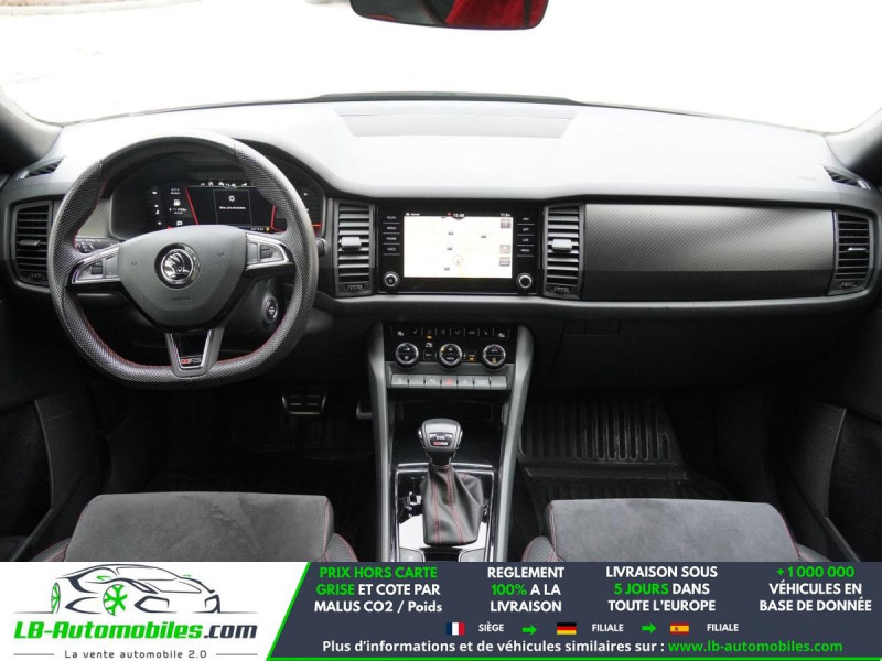 Référence : 1179225 Vos Avantages chez LB-AUTOMOBILES.com / Prix affiché TTC Livré hors carte grise / Livraison sous 10 jours dans toute la France hors 31 / Pas d?avance de frais paiement du véhicule 100% à la livraison par virement. Skoda Kodiaq Neuf remisée, Skoda Kodiaq Occasion Toulouse Beaupuy 31850, Skoda Kodiaq Véhicule sorti de réseau collaborateur, Skoda Kodiaq import, Skoda Kodiaq importateur, Skoda Kodiaq Livraison possible dans toute la France sous 5 jours, Skoda Kodiaq, Skoda Kodiaq Location Option Achat, Skoda Kodiaq LLD, Skoda Kodiaq Longue Durée, Skoda Kodiaq TVA récupérable. Possibilité d'extension de garantie 12, 24,36 mois, Pour tout autres voitures import neufs ou occasions collaborateur fortement remisée, Mandataire Audi, Mandataire BMW, Mandataire Volkswagen, Mandataire Mercedes, Mandataire Peugeot Espagne, Mandataire Renault Espagne, Porsche import, Mandataire Citroën Espagne, Mandataire Seat Espagne, n'hésitez pas à nous contacter. « Sous réserve de vente préalable et erreur de saisie » Principaux équipements : - 4x4 - ABS - Accoudoir - Android Auto - Antidémarrage - Apple CarPlay - Bluetooth - Boîte de vitesses robotisée - Capteur de lumière - Capteur de pluie - Chargement par induction pour smartphones - Cockpit numérique - Commande vocale - Contrôle de la pression des pneus - Diesel avec filtre à particules - Direction assistée - Éclairage adaptatif - Éclairage d'ambiance - Écran tactile - ESP - Fermeture centralisée - Feux de jour LED - Galerie de toit - Garantie - GPS - Isofix - Jantes alliage - Kit mains libres - Ordinateur de bord - Pack sport - Phares LED - Point Isofix siège passager - Port USB - Radio DAB - Réglage électrique des sièges avec fonction mémoire - Régulateur de vitesse - Rétroviseur extérieur électrique - Rétroviseur intérieur anti-éblouissement automatique - Sièges chauffants - Sièges sport - Support lombaire - Suspension adaptative - Système antipatinage - Système d'alarme - Système d'appel d'urgence - Système d'avertissement de la distance - Système de détection de la fatigue - Système de limitation de la vitesse - Système de reconnaissance des panneaux de signalisation - Système Stop & Start - Tuner/radio - Véhicule non-fumeur - Vitre chauffante - Vitres électriques - Vitres teintées - Volant en cuir - Volant multifonction