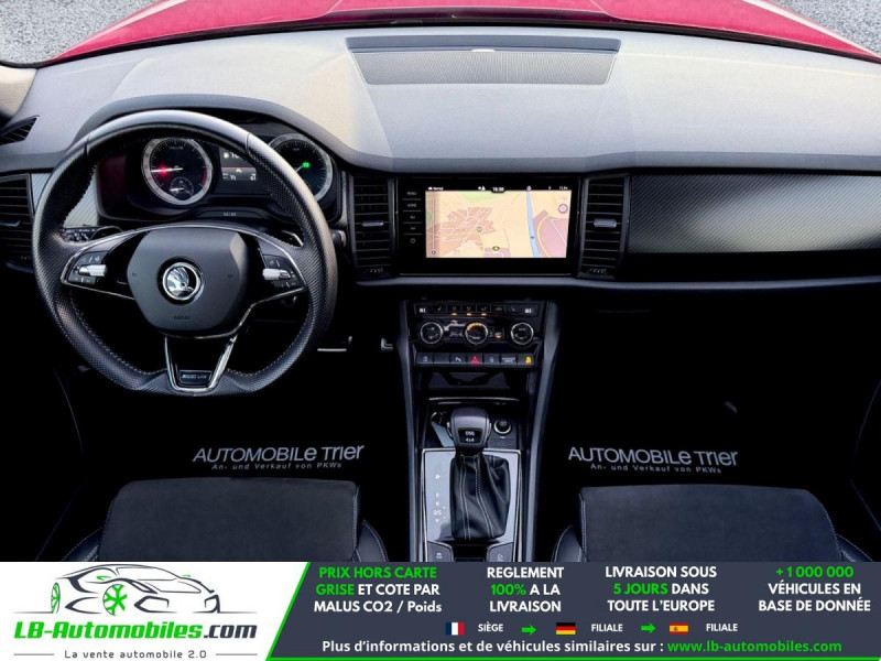 Référence : 1179253 Vos Avantages chez LB-AUTOMOBILES.com / Prix affiché TTC Livré hors carte grise / Livraison sous 10 jours dans toute la France hors 31 / Pas d?avance de frais paiement du véhicule 100% à la livraison par virement. Skoda Kodiaq Neuf remisée, Skoda Kodiaq Occasion Toulouse Beaupuy 31850, Skoda Kodiaq Véhicule sorti de réseau collaborateur, Skoda Kodiaq import, Skoda Kodiaq importateur, Skoda Kodiaq Livraison possible dans toute la France sous 5 jours, Skoda Kodiaq, Skoda Kodiaq Location Option Achat, Skoda Kodiaq LLD, Skoda Kodiaq Longue Durée, Skoda Kodiaq TVA récupérable. Possibilité d'extension de garantie 12, 24,36 mois, Pour tout autres voitures import neufs ou occasions collaborateur fortement remisée, Mandataire Audi, Mandataire BMW, Mandataire Volkswagen, Mandataire Mercedes, Mandataire Peugeot Espagne, Mandataire Renault Espagne, Porsche import, Mandataire Citroën Espagne, Mandataire Seat Espagne, n'hésitez pas à nous contacter. « Sous réserve de vente préalable et erreur de saisie » Principaux équipements : - 4x4 - ABS - Accoudoir - Android Auto - Antidémarrage - Apple CarPlay - Assistance au freinage d'urgence - Assistance de démarrage en côte - Assistant feux de route - Bluetooth - Boîte de vitesses robotisée - Capteur de lumière - Capteur de pluie - Carnet d'entretien - Commande vocale - Contrôle de la pression des pneus - Diesel avec filtre à particules - Direction assistée - Éclairage adaptatif de virage - Éclairage d'ambiance - Éclairage route non éblouissant - Écran tactile - ESP - Fermeture centralisée - Feux de jour LED - Galerie de toit - Garantie - GPS - Hayon électrique - Isofix - Jantes alliage - Kit mains libres - Ordinateur de bord - Pack sport - Phare antibrouillard - Phares LED - Port USB - Radio DAB - Réglage électrique des sièges - Réglage électrique des sièges avec fonction mémoire - Régulateur de vitesse - Rétroviseur extérieur électrique - Rétroviseur intérieur anti-éblouissement automatique - Rétroviseurs extérieurs rabattables électriquement - Révision complète - Sièges arrières chauffants électriques - Sièges chauffants - Sièges sport - Support lombaire - Suspension adaptative - Suspension sport - Système antipatinage - Système d'alarme - Système d'appel d'urgence - Système d'avertissement de la distance - Système de nettoyage des phares - Système de sonorisation - Système Stop & Start - Toit ouvrant - Toit panoramique - Tuner/radio - Véhicule non-fumeur - Verrouillage centralisé sans clé - Vitres électriques - Vitres teintées - Volant chauffant - Volant en cuir - Volant multifonction