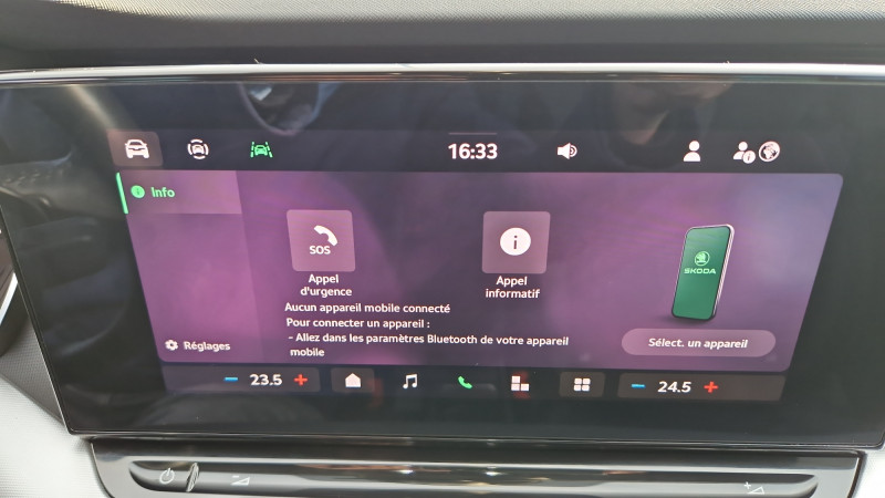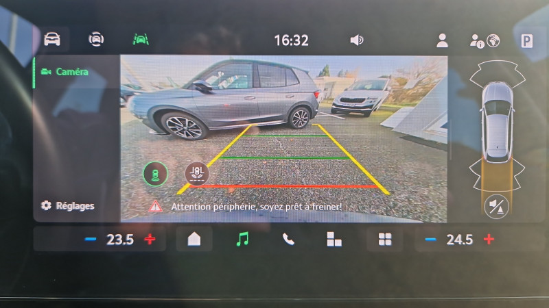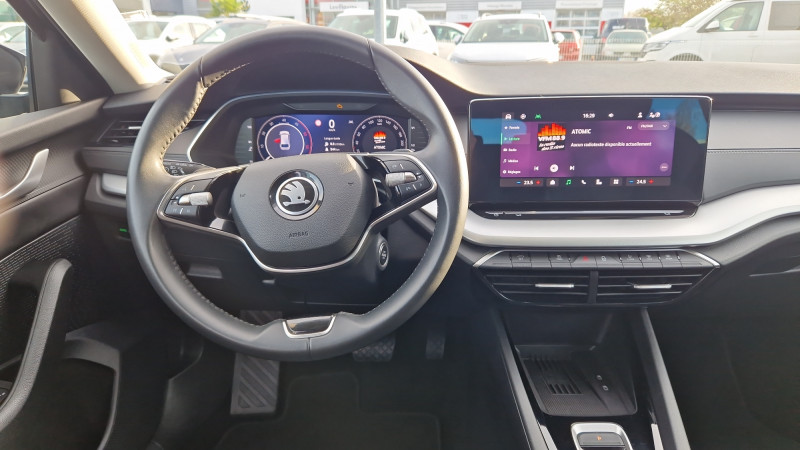 Essuie-glace AV automatique avec détécteur de pluie / Feux de position, de stop et de recul, antibrouillard, Full LED avec clignotants AR à défilement / Front Assistant : freinage automatique d'urgence incluant la protection des piétons et des cyclistes / Jantes alliage 17" Mensa Argent Dimensions 7J X17'' ET46 pneumatiques 205/55 R17 / Pack Famille Tapis de coffre réversible, parapluie dans la portière passager, support de tablette, poubelle de porte et 3ème clé / Phares AV et feux de jour à LED (sans feu antibrouillard intégrés) / Préparation attelage / Rétroviseur intérieur électrochromatique (jour/nuit automatique) avec contour / Virtual Cockpit : tableau de bord numérique personnalisable 10,2" / Volant en cuir multifonctions 2 branches avec palettes / 1 port USB sur le rétroviseur intérieur / 2 ports USB Type-C AR / 2 ports USB Type-C à l'AV (données et recharge) / 4 crochets de fixations dans le coffre / 8 HP / Airbag central AV entre les 2 sièges / Airbags frontaux (conducteur et passager AV) et latéraux (dans les sièges AV) avec désactivation de l'airbag passager / Appel d'urgence e-Call et service pro-actif / Assistance 24 /24 H pendant 7 ans / Aumônières au dos des sièges AV avec emplacement pour smartphone / Avertisseur sonore 2 tons / Bacs de rangement dans les portes AV et AR (pour une bouteille de 1,5l) / Ciel de toit gris tempête / Compartiment de rangement dans le coffre (chaque côtés) / Compartiment de rangement sous l'accoudoir central AV ou Jumbobox / Console centrale avec buses d'aération et avec compartiment de rangement pour passagers AR / Contour de calandre chromé / Coques de rétroviseurs extérieurs couleur carrosserie / Direction assistée électronique (Servotronic) / Eclairage dans le coffre (2 lumières) / Entourage des buses de ventilation Noir / Entourage des vitres Noir / ESC incluant ABS, EBD, MSR, ASR, EDL, HBA, DSR, RBS, ESBS, TSA, MKB et XDS+ / Frein à main électrique / Garantie 2 ans / kilométrage illimité / Gratte-givre dans la trappe à carburant / Insert décoratif de planche de bord pixels croisées / Kit anti-crevaison / Lane Assist (assistant de maintien dans la voie) / Pare-chocs AV avec insert chromé / Poignées de porte couleur carrosserie / Poignées de portes intérieures chromées / Porte-boissons dans la console centrale / Radio numérique DAB (Digital Audio Broadcasting) / Rampes de pavillon noires / Range-parapluie dans les portes AV (incluant un parapluie côté conducteur et passager) / Rangement porte-lunettes / Réglage lombaire manuel des sièges AV / Rétroviseurs extérieurs réglables électriquement, dégivrants, rabattables électriquement, électrochromatique côté conducteur / Signal acoustique et visuel d'oubli de ceinture de sécurité / Signal sonore d'oubli d'extinction des feux / SKODA Connect : Remote Access 3 ans / Spots de lecture à l'AV et à l'AR / Système de sécurité ISOFIX pour 2 sièges enfants sur les places AR extérieures et siège passager AV / Système Infotainment 10" (MIB3 Evo) / Système Smartlink (Android Auto, Apple Carplay) avec et sans fil / Système Start & Stop déconnectable / Sécurité enfants aux portes AR (manuelle) / Tapis de sol AV/AR / Téléphonie mobile Bluetooth avec dispositif Phonebox refrigérée et recharge par induction / Vide poche sous la console centrale