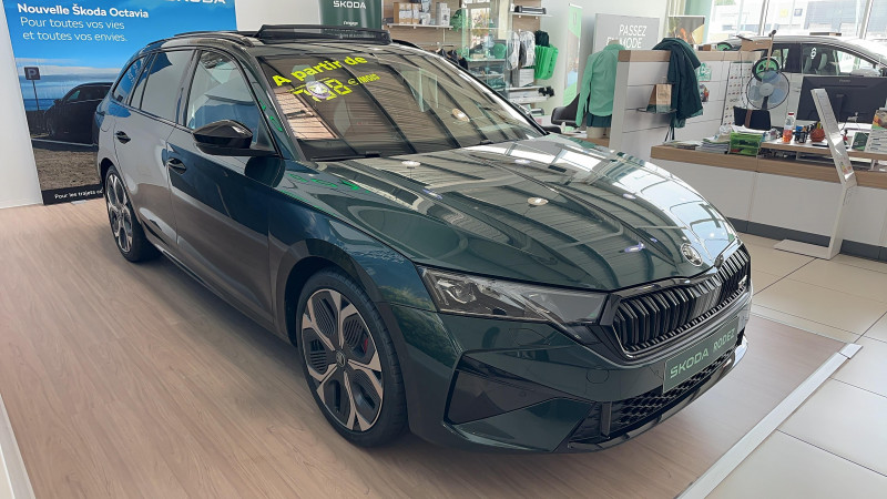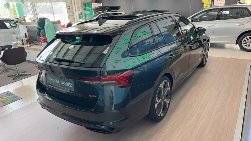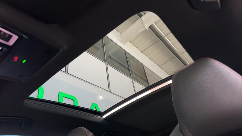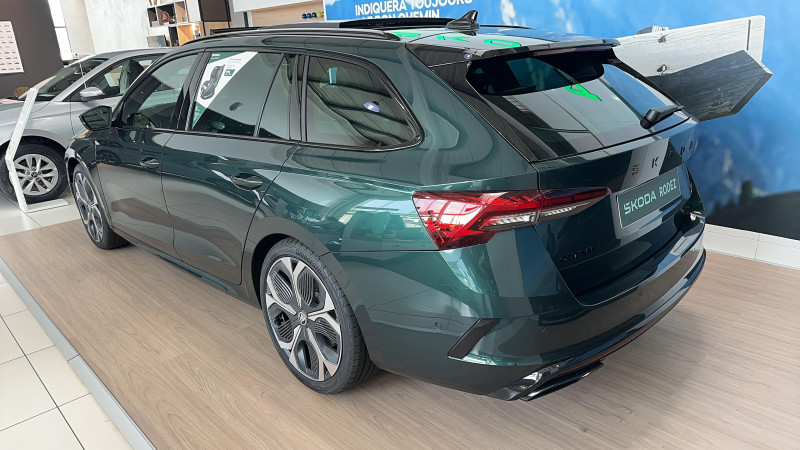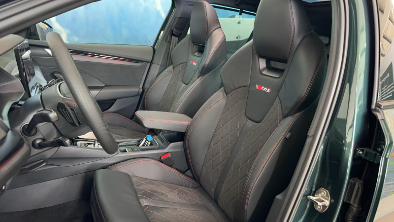 Auto Light Assist - gestion automatique des pleins phares avec caméra multifonctions / Eclairage intérieur Full LED avec éclairage d'ambiance personnalisable (projection logo, éclairage aux pieds) / Essuie-glace AV automatique avec détécteur de pluie / Feux de position, de stop et de recul, Full LED avec clignotants AR à défilement / Front Assistant : freinage automatique d'urgence incluant la protection des piétons et des cyclistes / Jantes alliage 18" Comet Noir brillant Dimensions 225/45 R18 / Pack Assistance de conduite Travel Assist: Régulateur de vitesse adaptatif et prédictif et maintien du véhicule au centre de la voie, Radars de stationnement AV/AR / Pack Confort - Kessy Advanced avec fonction Safelock - Hayon de coffre électrique avec Virtual Pedal - Feu AR full LED - Sécurité enfant électrique avec fonction Safe - Alarm antivol / Pack Famille Tapis de coffre réversible, parapluie dans la portière passager, support de tablette, poubelle de porte et 3ème clé / Pack Hiver Plus Sièges AV chauffants, Pare-brise chauffant / Pack Navigation Système de navigation 13 (MIB3 Evo), WEB radio, Commande vocale, Radars de stationnement AV/AR / Pack Visibilité Plus - Feux AV Full LED avec technologie Matrix - Feux AR Full LED avec clignotants a défilement - Contrôle dynamique des feux de route avec fonction Cornering Lights - Feux tout temps avec fonction antibrouillard - Lave phare haute pression avec indicateur du niveau de lave-glace - Radars de stationnement AV / AR / Petit Pack Cuir Volant et pommeau du levier de vitesses / Phares AV Full Matrix LED avec effet de bienvenue (système d'allumage et réglage dynamique des feux de route à LED) et éclairage auto-adaptatif AFS incluant feu antibrouillard / Préparation attelage / Pédalier aluminium / Rétroviseur intérieur électrochromatique (jour/nuit automatique) avec contour / Volant sport en cuir 3 branches avec palettes / 2 ports USB Type-C à l'AV (données et recharge) et 2 ports USB Type-C à l'AR et 1 port USB sur le rétroviseur intérieur / 8 HP / Airbag central AV entre les 2 sièges / Airbags frontaux (conducteur et passager AV) et latéraux (dans les sièges AV) avec désactivation de l'airbag passager / Appel d'urgence e-Call et service pro-actif / Assistance 24 /24 H pendant 7 ans / Aumônières au dos des sièges AV avec emplacement pour smartphone / Avertisseur sonore 2 tons / Bacs de rangement dans les portes AV et AR (pour une bouteille de 1,5l) / Badges RS dans la calandre AV, et sur le hayon du véhicule / Buses de lave-glace chauffantes / Catadioptre dans les portes AV / Ciel de toit noir / Compartiment de rangement dans le coffre (chaque côtés) / Compartiment de rangement sous l'accoudoir central AV ou Jumbobox / Console centrale avec buses d'aération, et support de tablette avec compartiment de rangement pour passagers AR / Coques de rétroviseurs extérieurs noires / Couvre coffre planche / Crochets de fixation dans le coffre (2 doubles de chaque côté) / DAB (digital audio broadcasting) - Radio numerique / Diffuseur spécifique en finition noir glossy : double sortie d'échappement avec habillage en alliage et finition noir glossy / Digital Cockpit : tableau de bord numérique personnalisable 10,2" / Direction assistée électronique (Servotronic) / Driving Mode Select: Selection du mode de conduite / Eclairage dans le coffre (2 lumières) / Entourage des buses de ventilation Noir / Entourage des vitres Noir glossy / ESC incluant ABS, EBD, MSR, ASR, EDL, HBA, DSR, RBS, ESBS, TSA, MKB et XDS+ / Frein à main électrique / Garantie 2 ans / kilométrage illimité / Gratte-givre dans la trappe à carburant / Insert décoratif de planche de bord imitation carbone / Jeu de filet dans le coffre avec cargo-éléments / Kit anti-crevaison / Lane Assist Plus Maintien du véhicule au centre de la voie et Traffic Jam Assist: système d'assistance en embouteillage avec Emergency Assist / Modifier par poignées de portes extérieures couleur carrosserie / Pare-chocs AV sans insert chromé / Pare-soleil AV intégrant miroirs de courtoisie, éclairés et avec porte ticket / Poignées de portes intérieures chromées / Porte-boissons dans la console centrale / Rampes de pavillon noires glossy / Range-parapluie dans les portes AV (incluant un parapluie côté conducteur et passager) / Rangement porte-lunettes / Réglage lombaire manuel des sièges AV / Régulateur de vitesse adaptatif (actif jusqu'à 210 km/h - incluant la fonction limiteur) / Rétroviseurs extérieurs réglables électriquement, dégivrants, rabattables électriquement, électrochromatique côté conducteur / Seuils de portes AV / Side Assist (détecteur d'angles mort jusqu'à 70m) / Signal acoustique et visuel d'oubli de ceinture de sécurité / Signal sonore d'oubli d'extinction des feux / SKODA Connect : Remote Access + Infotainment Online 3 ans / Spoiler AR noir Glossy / Spots de lecture à l'AV et à l'AR / Suspensions sport (-15 mm) - spécifiques / Système de sécurité ISOFIX pour 2 sièges enfants sur les places AR extérieures et siège passager AV / Système Start & Stop déconnectable / Tapis de sol AV/AR / Trappe à skis / Turn Assist / Téléphonie mobile Bluetooth avec dispositif Phonebox refrigérée et recharge par induction / Vide poche sous la console centrale