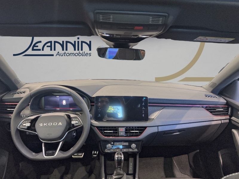 Allumage automatique des feux avec fonctions Coming Home / Leaving Home / Boîte de vitesse automatique à 7 vitesses / Climatronic : climatisation automatique bi-zones + fonction Air Care / Commandes de climatisation chromées / Déblocage automatique des portes et activation des feux de détresse en cas d'accident / Eclairage d'ambiance à LED (blanc/rouge) / Eclairage de plaque AR à LED / Feux AR Full LED avec clignotants à défilement / Feux AV antibrouillard à LED avec fonction corner light / éclairage des angles dans les virages / Front Assist : aide au freinage d'urgence incluant détection des piétons / Jantes alliage 17 Kajam Aero noires / Lane Assist : système d'aide au maintien dans la voie / Pack Assistance de conduite Plus - Pack Assistance de conduite - Side Assist: détecteurs d'angle mort / Pack Assistance de conduite Travel Assist: assistant de maintien au centre de la voie / Régulateur de vitesse adaptatif ACC (jusqu'à 210km/h) + limiteur de vitesse / Side Assist : détecteur d'angle-mort / Pack Assistance de conduite Travel Assist: assistant de maintien au centre de la voie / Régulateur de vitesse adaptatif ACC (jusqu'à 210km/h) + limiteur de vitesse / ACC: régulateur de vitesse adaptatif (actif jusqu'à 210 km/h) incluant limiteur de vitesse / Travel Assist : assistant de maintien au centre de la voie / Pack Confort Caméra de recul / Kessy Full : ouverture et démarrage sans clé / Driving Mode Selct : sélection du mode de conduite / Kessy Full : système d'ouverture des portes et de démarrage sans clé / Driving Mode Select: Selection du profil de conduite / Pack Emotion - Ciel de toit noir - Prolongement de la vitre AR - Toit vitré panoramique fixe avec store électrique - Vitres et lunette AR surteintées / Ciel de toit noir / Toit vitré panoramique fixe avec store électrique / Vitres et lunette AR surteintées / Prolongement de la vitre AR en verre / Pack Look Prolongement de la vitre AR en verre / Vitres et lunette AR surteintées / Vitres et lunette AR surteintées / Prolongement de la vitre AR en verre / Pack Navigation Ecran d'info-divertissement 9 / DAB / Commande Vocale / Digital Cockpit 10 / 25 / Commande vocale + assistant Laura / Digital Cockpit 10 / 25 : compteurs digitaux personnalisables / Ecran d'info-divertissement 9 / DAB / 2 ports USB-C 45W AV) / Pack Technologie 2 prises USB-C à l'AR (recharge uniquement) / Augmentation puissance délivrée des 2 prises USB-C à AV à 45W / 8 HP / Smartlink sans fil / 8 HP / Smartlink sans fil pour Apple incluant Android Auto / 2 prises USB-C 45W AR (recharge uniquement) / Augmentation puissance délivrée des 2 prises USB-C à AV à 45W / Pack Visibilité Plus Phares AV Full Matrix LED incluant clignotants à défilement / Phares AV Full Matrix LED incluant clignotants à défilement / système d'éclairage auto-adaptatif AFS / Pommeau de levier de vitesse et poignée de frein de parking en cuir / Préparation pour dispositif d'attelage / Pédalier look aluminium / Rappels de clignotants à LED intégrés dans les rétroviseurs extérieurs / Volant multifonctions 3 branches sport en cuir avec palettes / 3ème appuie-tête AR à la place centrale / Accoudoir AV Jumbobox avec surpiqûres / déconnectable côté passager / Airbags latéraux AV avec airbags rideau / Assistance 24 /24 H pendant 7 ans / Aumônières au dos des sièges AV incluant des rangements pour téléphone / Avertisseur de ceinture de sécurité non-bouclée / Bacs de rangement dans les portes AV et AR / Blocage de l'arrivée de carburant en cas d'accident / Boîte à gants éclairée / Cache-bagages / Care connect + Infotainment Online 3 ans / Console centrale avec porte-bouteille et prise 12 V / Contrôle de la traction (TCS) / incl. ABS / MSR / ASR / XDS+ / HBA / DSR / MKB / EBV / EDL / RBS / ESBS / TSA / Crochets dans le coffre à bagage / Diffuseur AR noir glossy / Disques de frein AV/AR / Détecteur de fatigue / Eclairage du coffre à bagages / Entourage de calandre AV noire / Essuie-glace AV aéro à intermittence / Fixations ISOFIX sur banquette AR incluant 2 Top-Tether / Gratte-givre intégré dans la trappe à carburant / Infotainment Online 3 ans / Insert de bas de caisse noir glossy / Insert décoratif sur la planche de bord effet carbone avec liseré rouge et inserts de porte matériau synthétique effet carbone / Klaxon mono-ton / Lampes de lecture supplémentaires pour conducteur et passager / Lettrage noir à l'AR du véhicule / Parapluie intégré dans la portière conducteur / Pare-chocs AV couleur carrosserie / Pare-soleil AV conducteur et passager avec miroirs de courtoisie / Planche de bord en plastique moussé / Poignées de porte couleur carrosserie / Poignées de portes intérieures chromées / Poignées intérieures de maintien à l'AV et à l'AR avec crochet à l'AR / Porte bouteilles (0 / 5L) dans les portières AR / Porte bouteilles (1 / 5L) dans les portières AV / Porte gilet de sécurité / Porte-ticket sur côté gauche du pare-brise / Radio numérique DAB (Digital Audio Broadcasting) / Rangement dans le coffre derrière les passages de roues / Réglage lombaire manuel des sièges AV / Rétroviseur intérieur électrochromatique / Rétroviseurs extérieurs noirs glossy / Rétroviseurs extérieurs rabattables électriquement et électrochromatique côté conducteur / Seuils de portes SCALA à l'AV / Système de téléphonie Bluetooth / Tapis de sol textile / Verrouillage centralisé incluant 2 clés pliantes